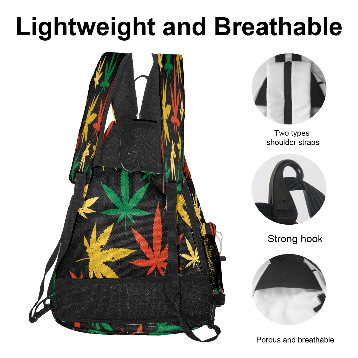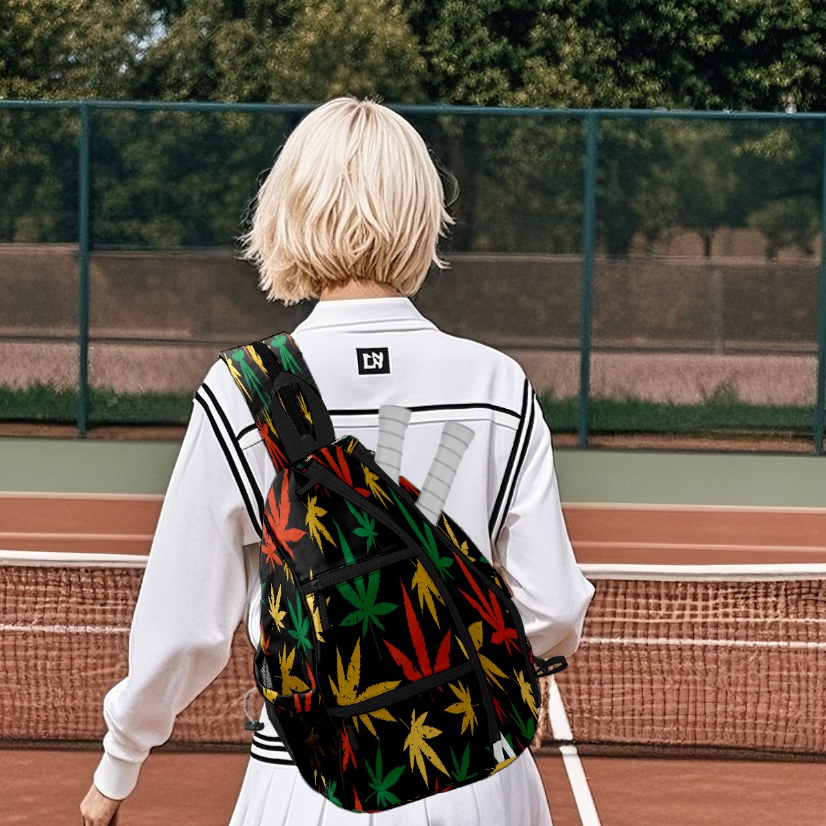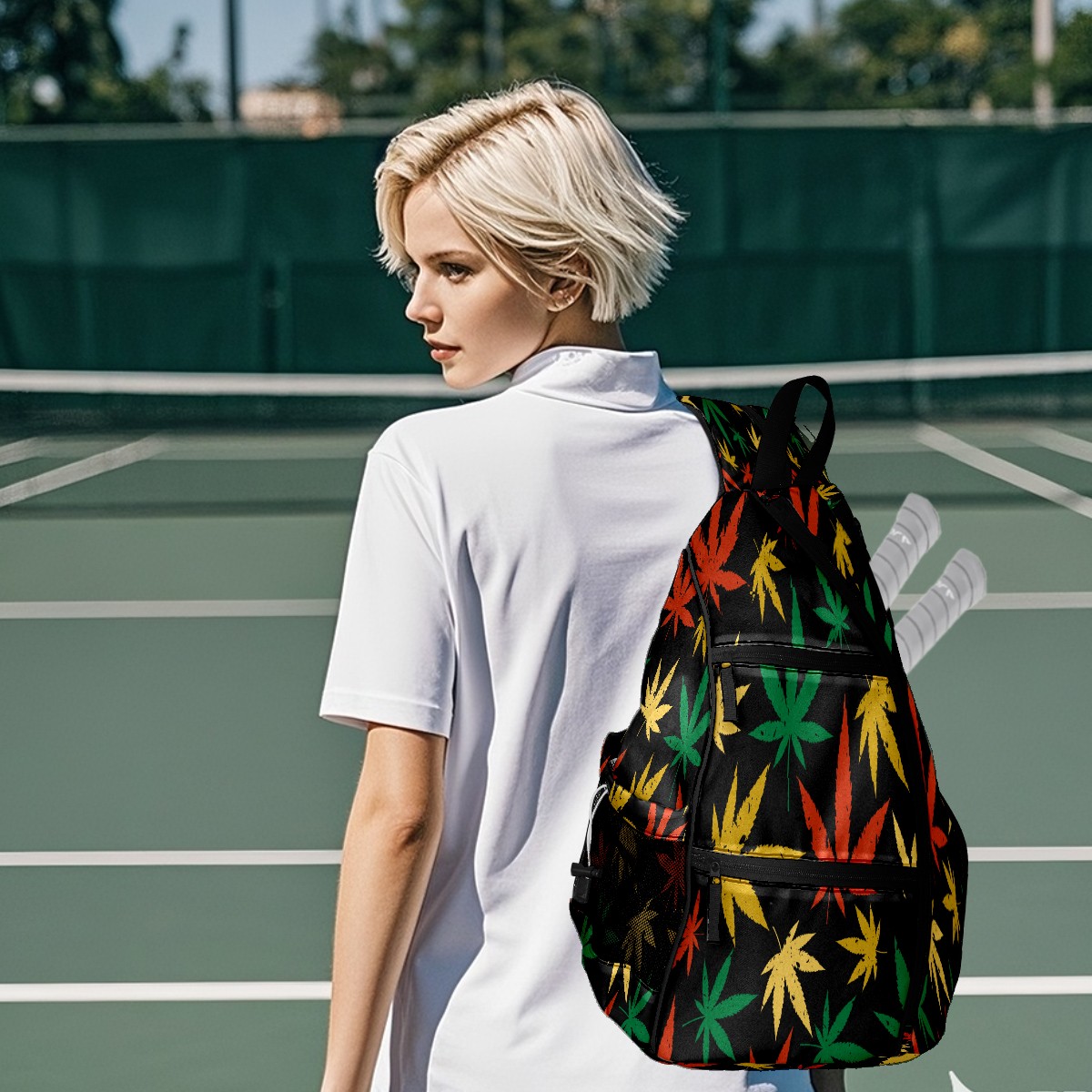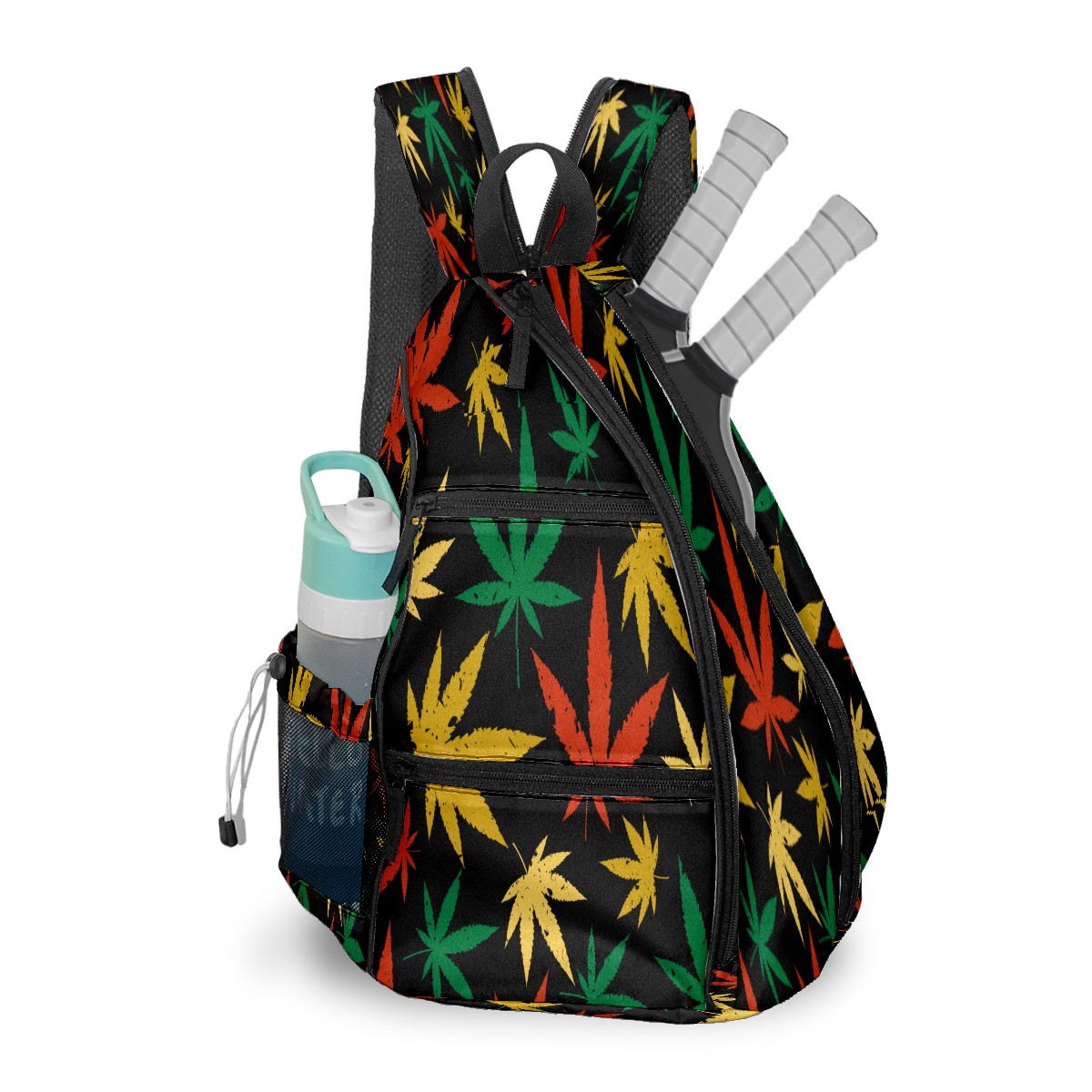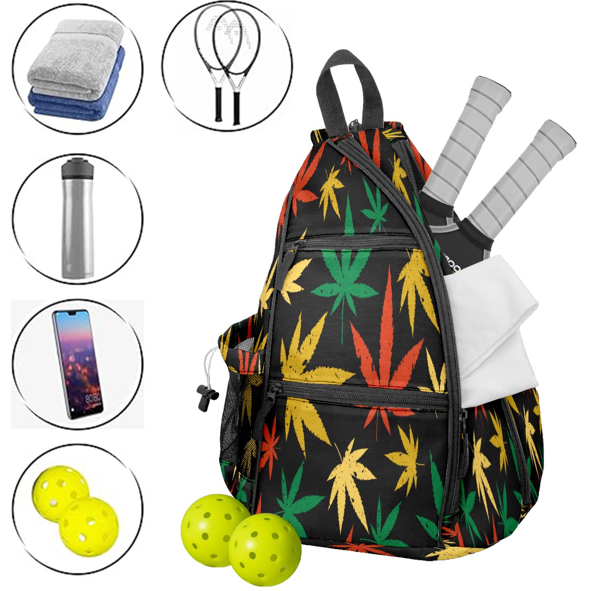 Multifunctional Pickleball Bag,Large Capacity Sports Pickleball Racket Bag, Water Bottle Holder and Fence Hook,Suitable for Both Men Women -Red Green Yellow Maple Leaf