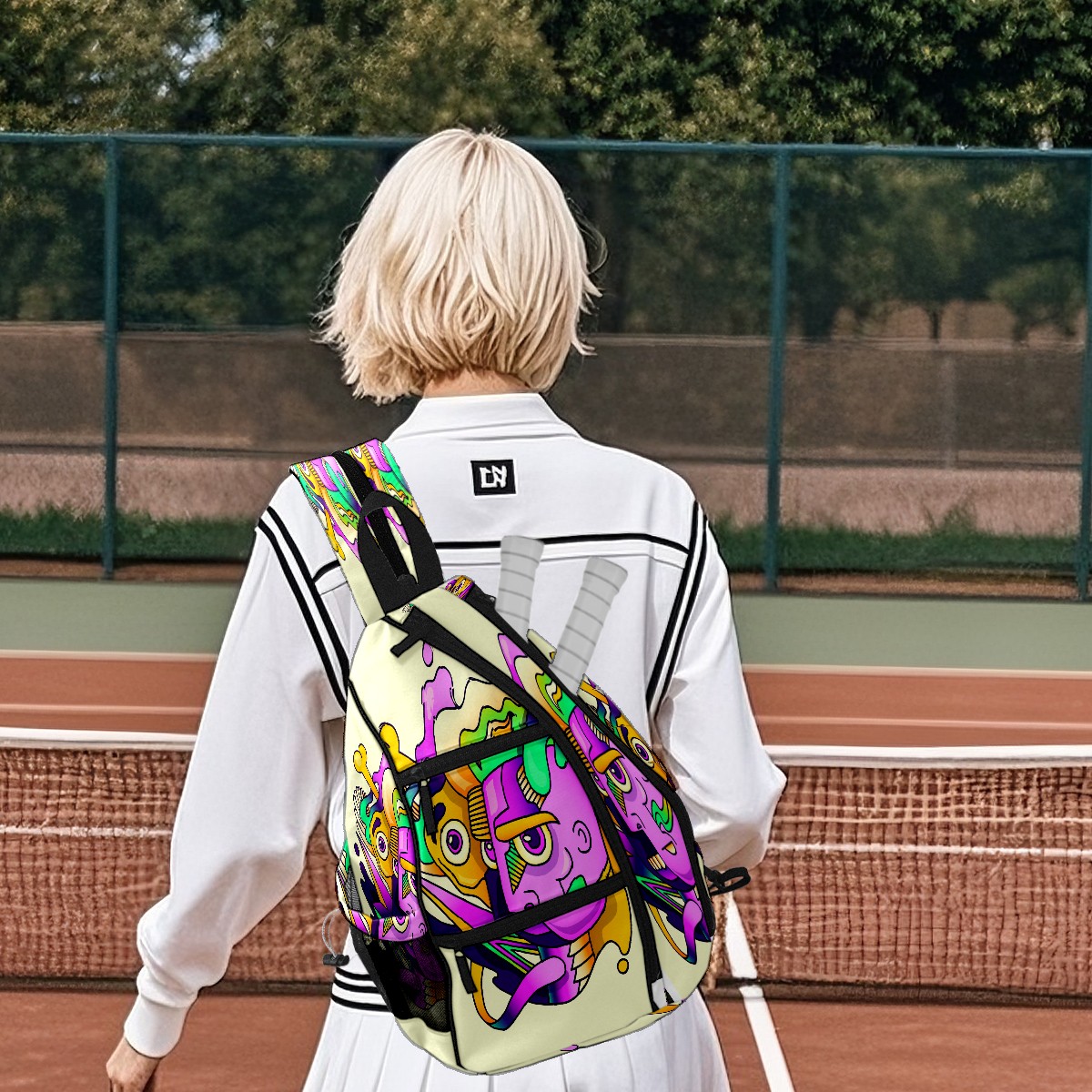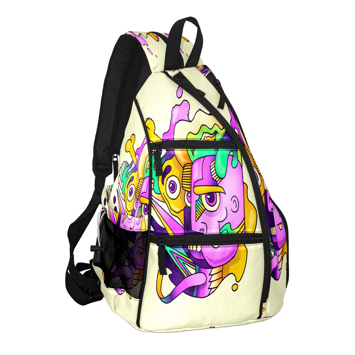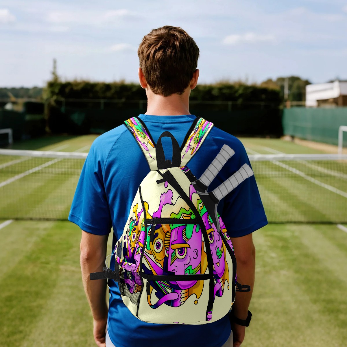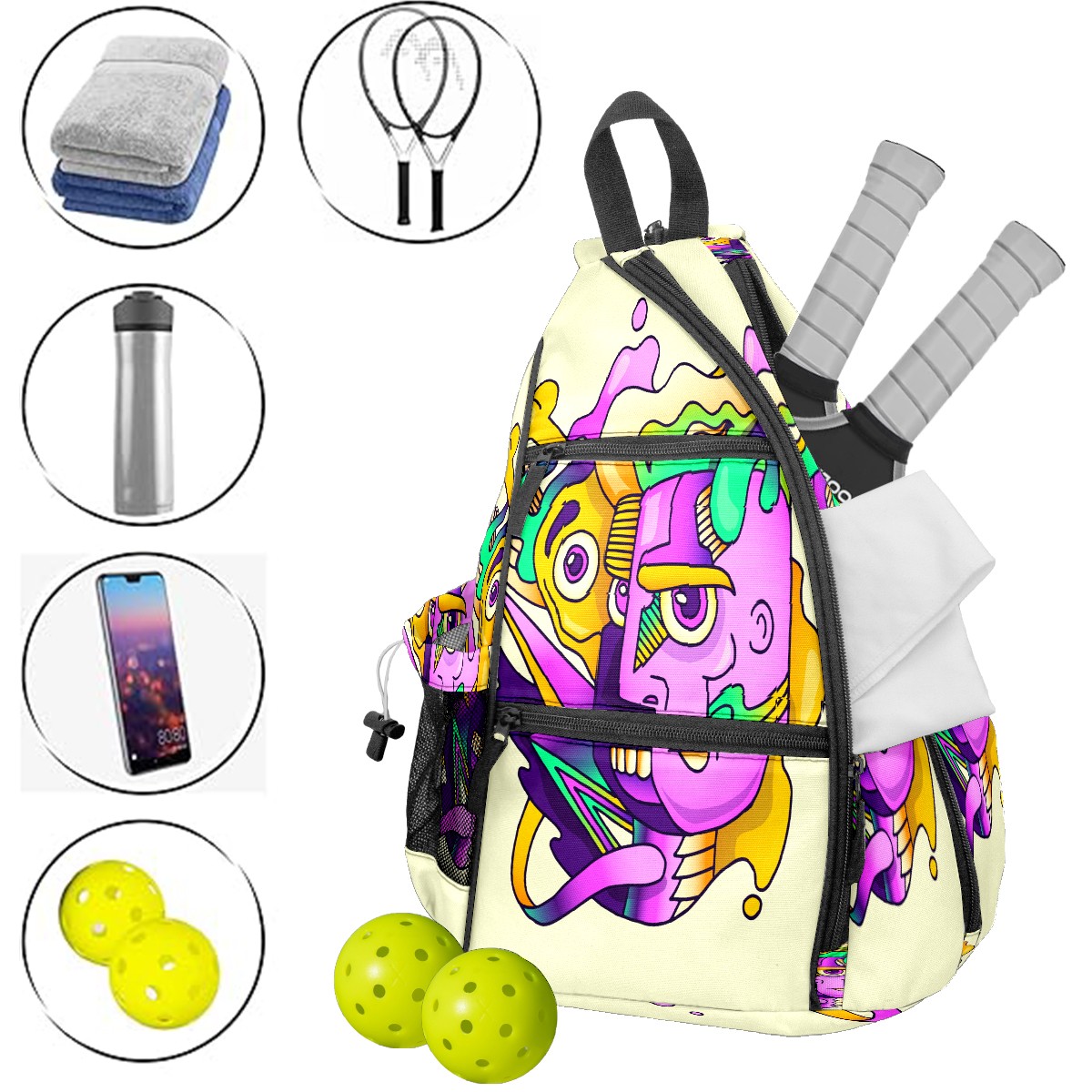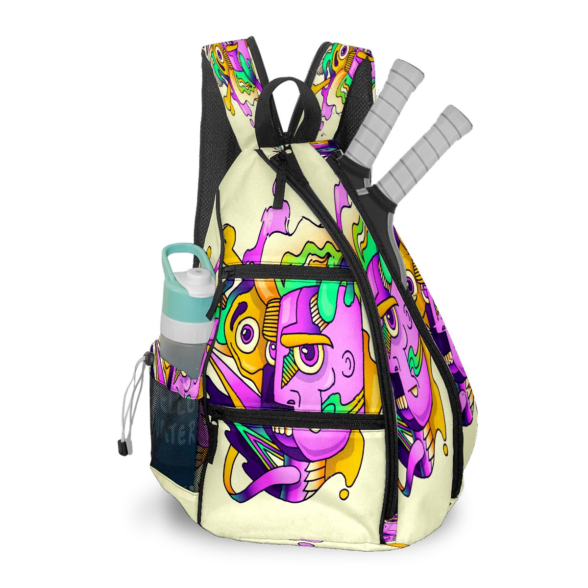 Multifunctional Pickleball Bag,Large Capacity Sports Pickleball Racket Bag, Water Bottle Holder and Fence Hook,Suitable for Both Men Women -Abstract Face