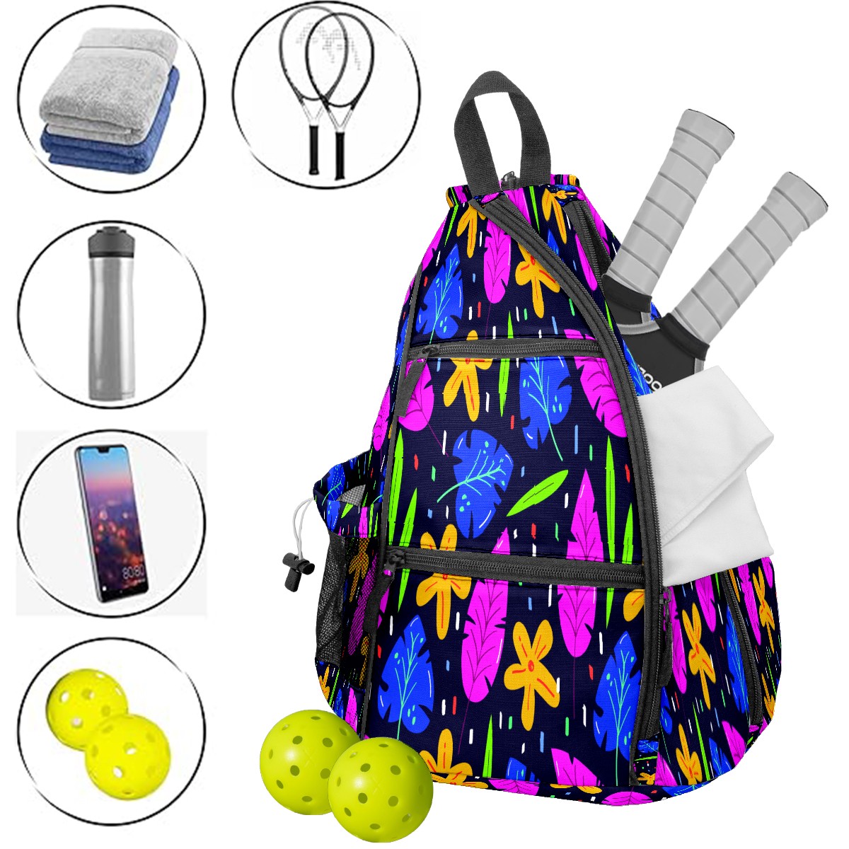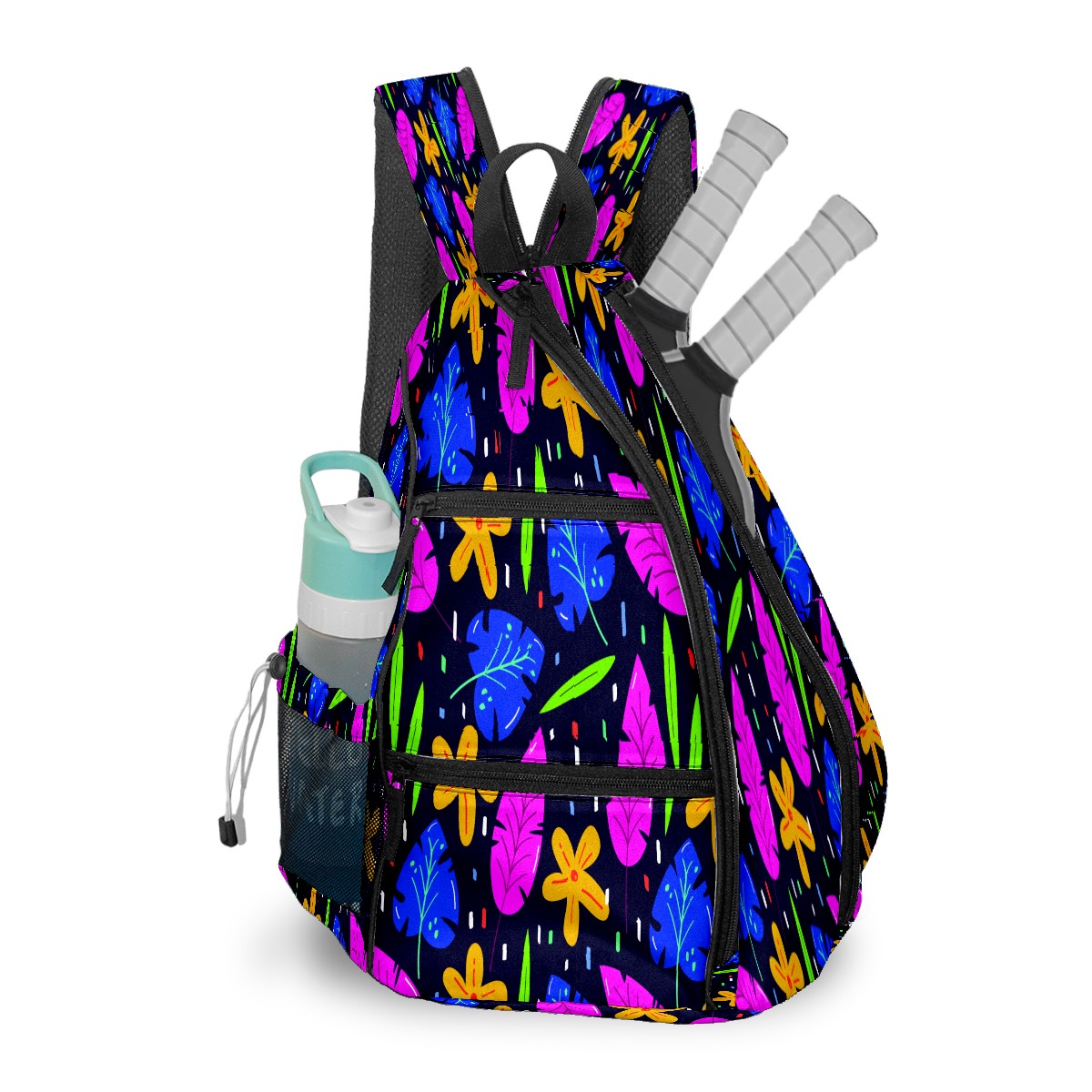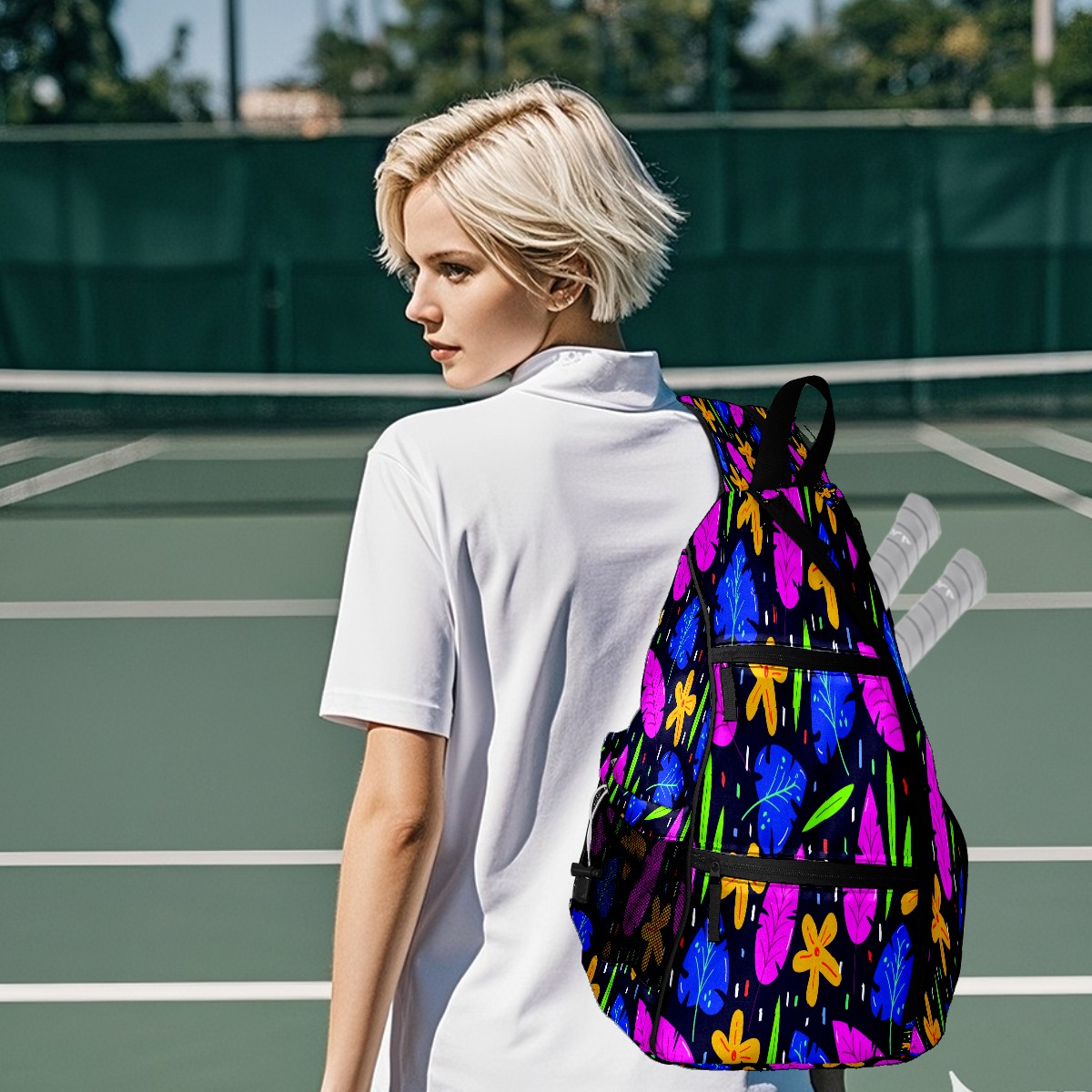Multifunctional Pickleball Bag,Large Capacity Sports Pickleball Racket Bag, Water Bottle Holder and Fence Hook,Suitable for Both Men Women -Floral Summer Pattern