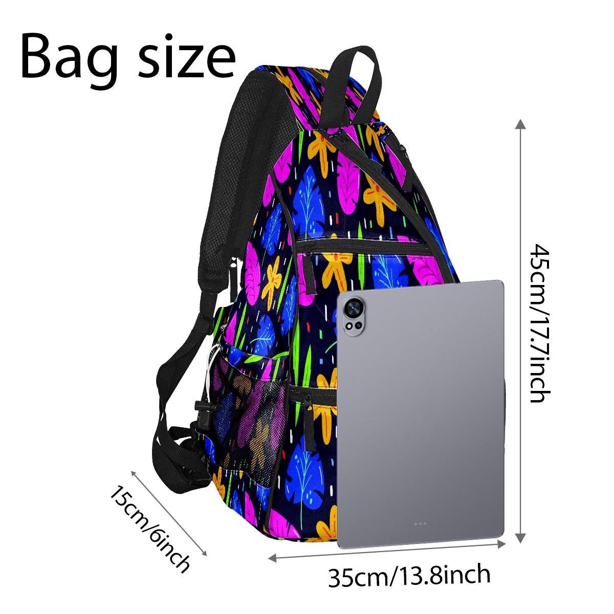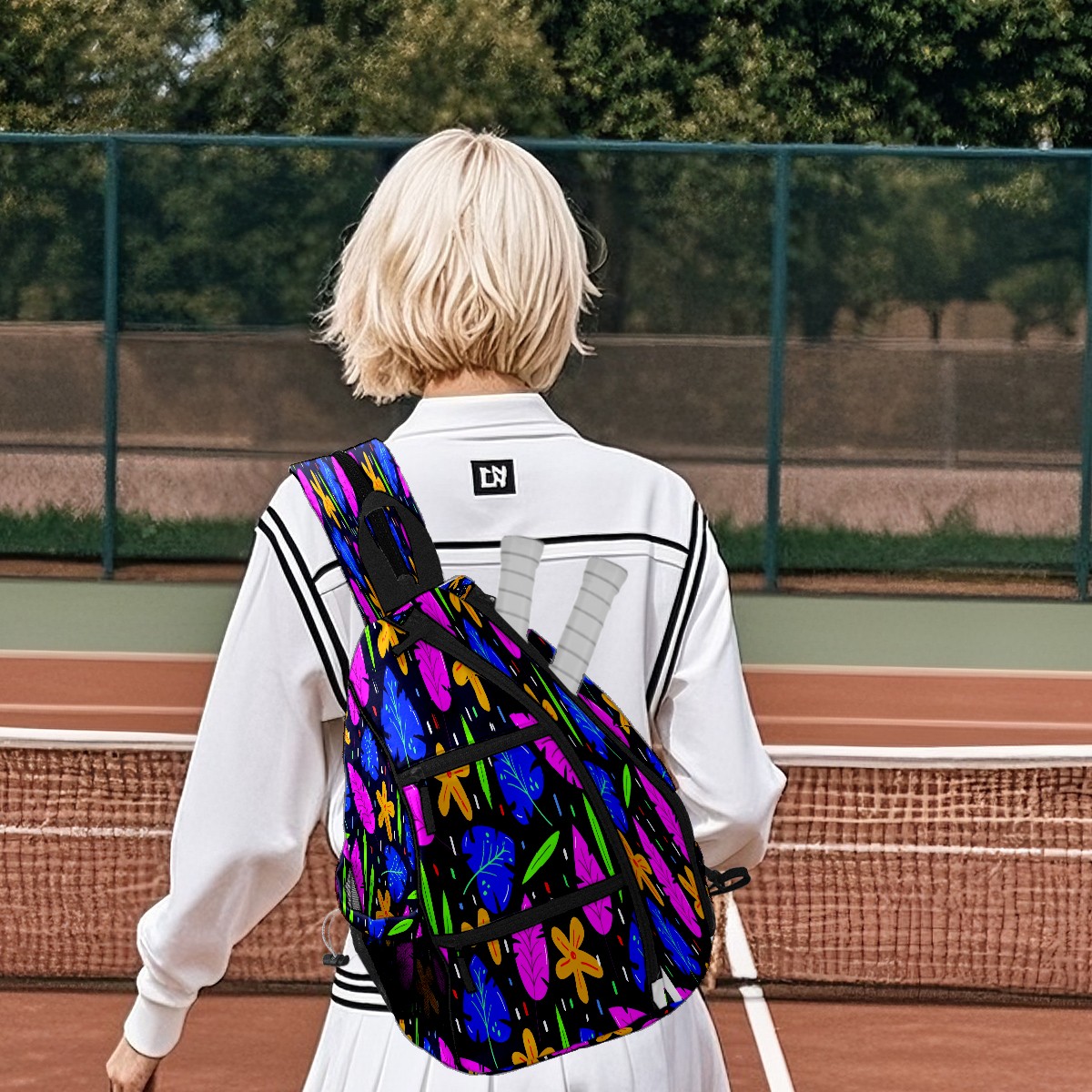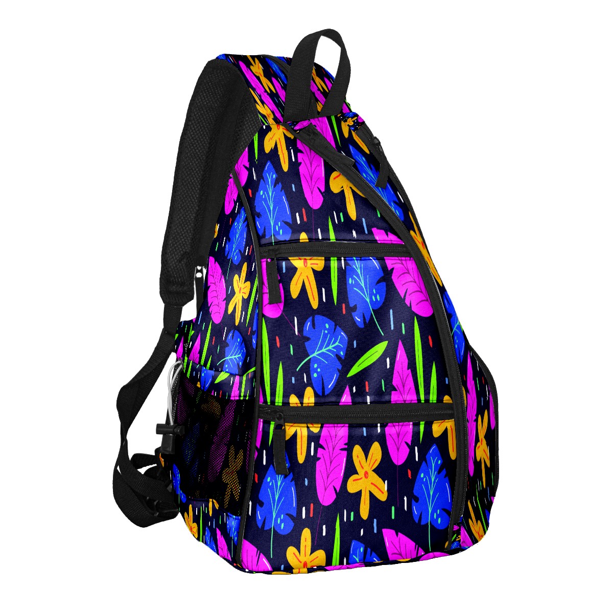 Multifunctional Pickleball Bag,Large Capacity Sports Pickleball Racket Bag, Water Bottle Holder and Fence Hook,Suitable for Both Men Women -Floral Summer Pattern
