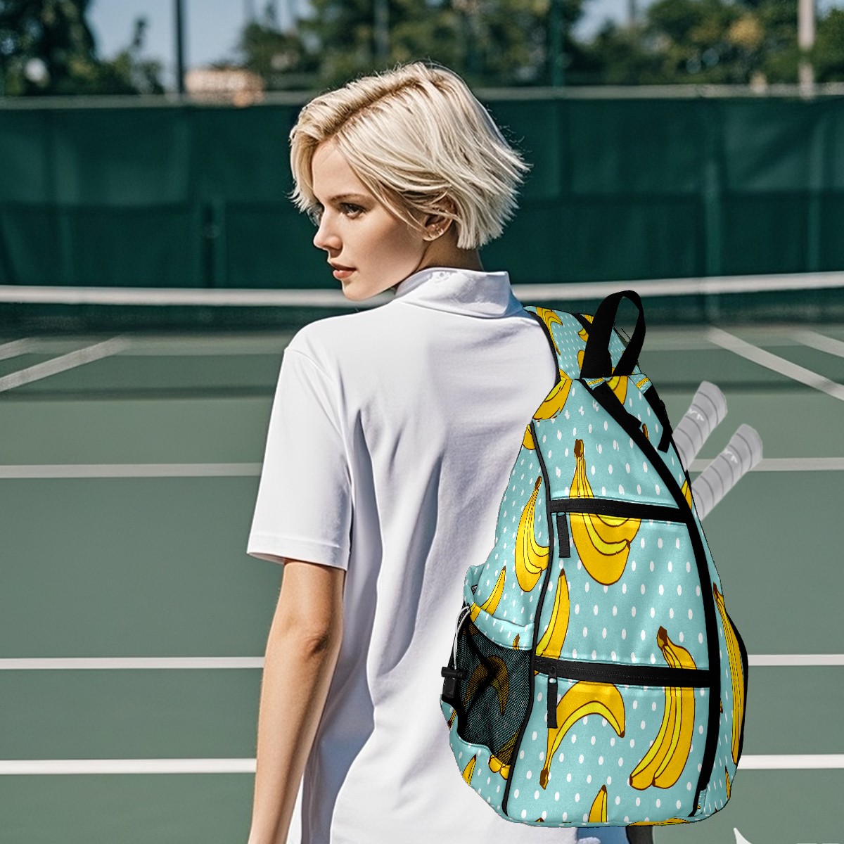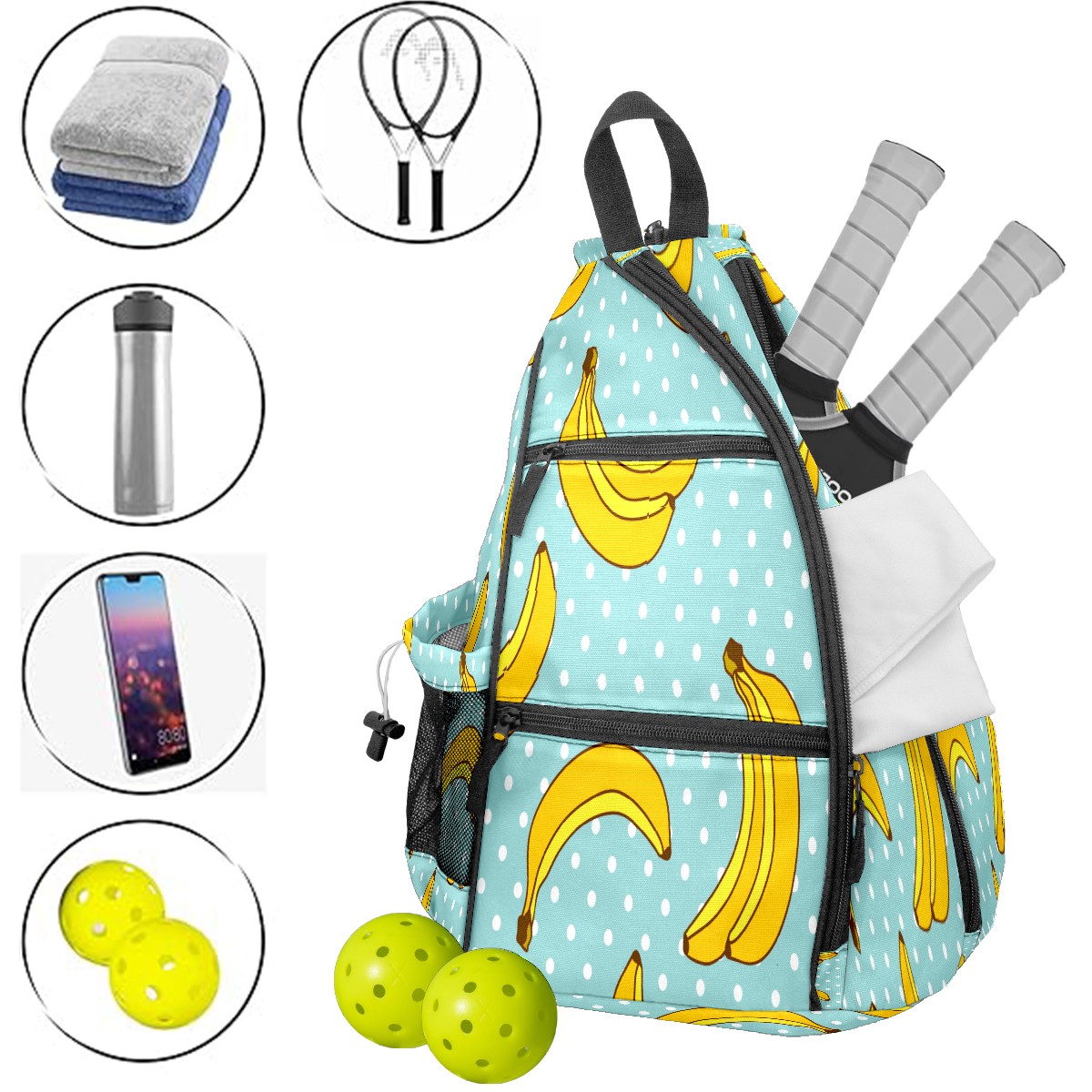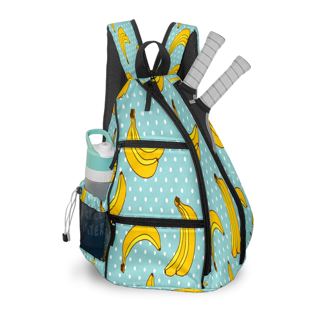 Multifunctional Pickleball Bag,Large Capacity Sports Pickleball Racket Bag, Water Bottle Holder and Fence Hook,Suitable for Both Men Women -Cute Banana Dots