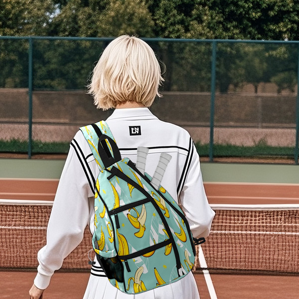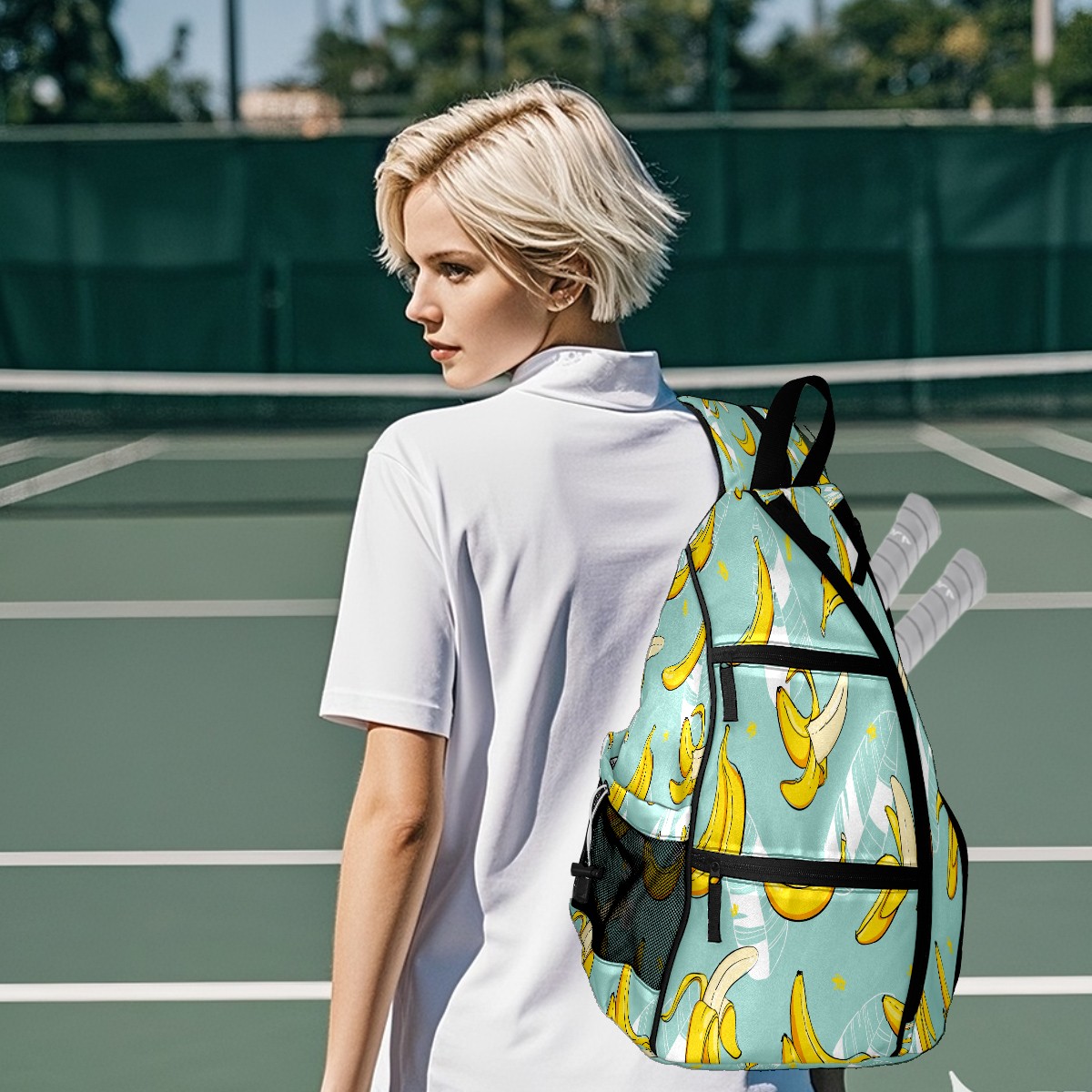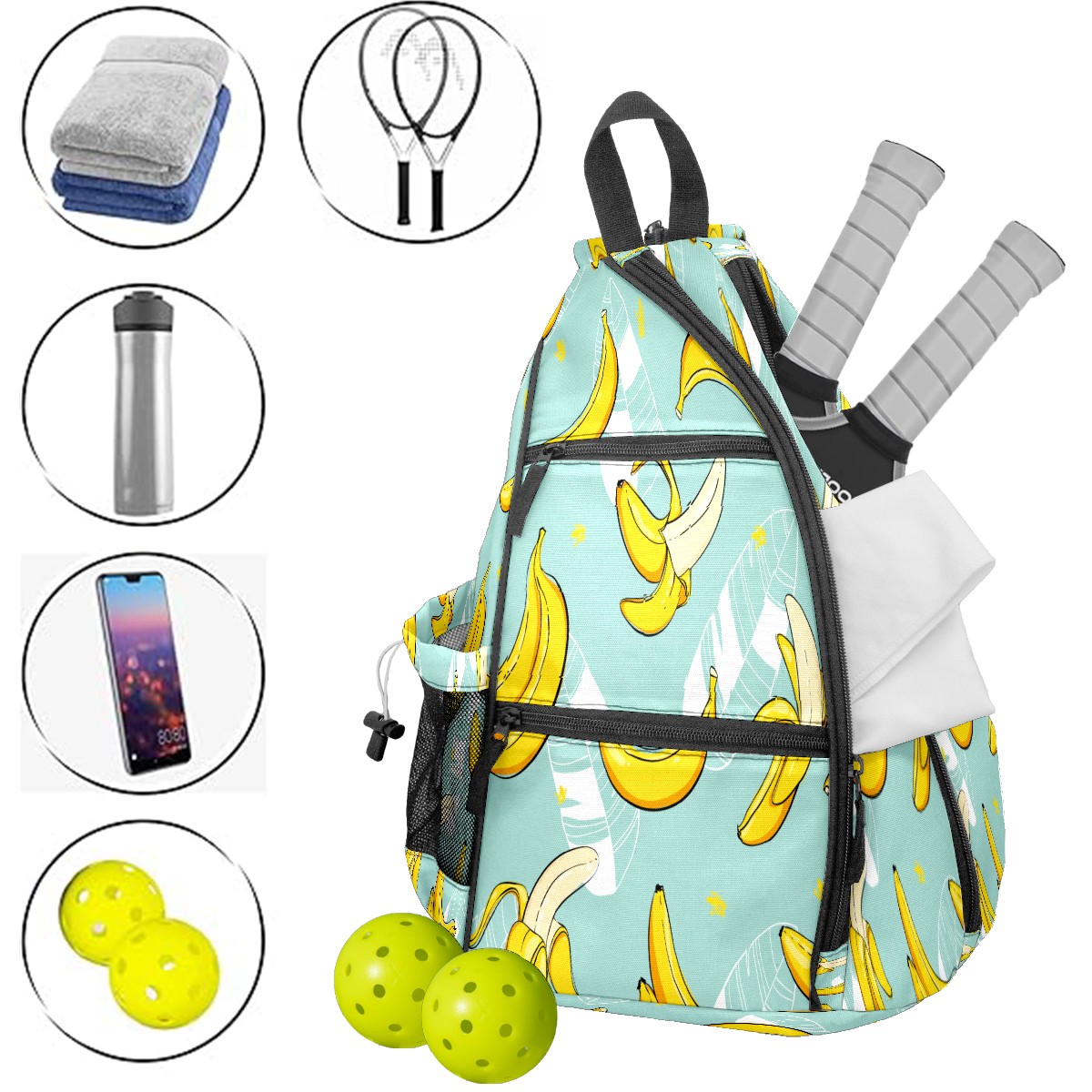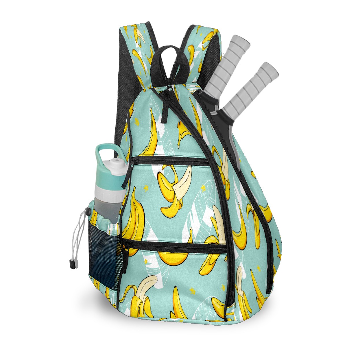 Multifunctional Pickleball Bag,Large Capacity Sports Pickleball Racket Bag, Water Bottle Holder and Fence Hook,Suitable for Both Men Women -Fruit Banana Leaves Pattern