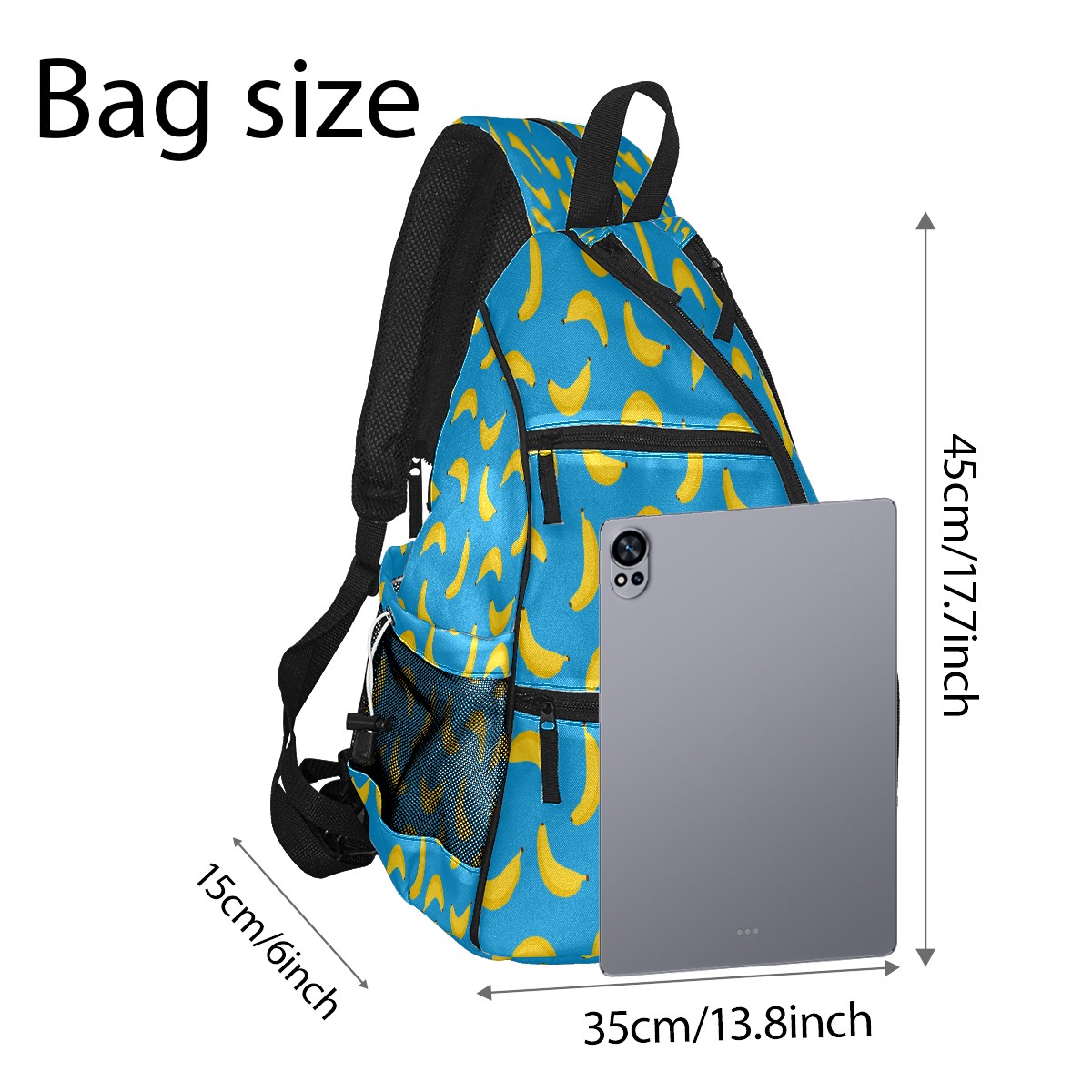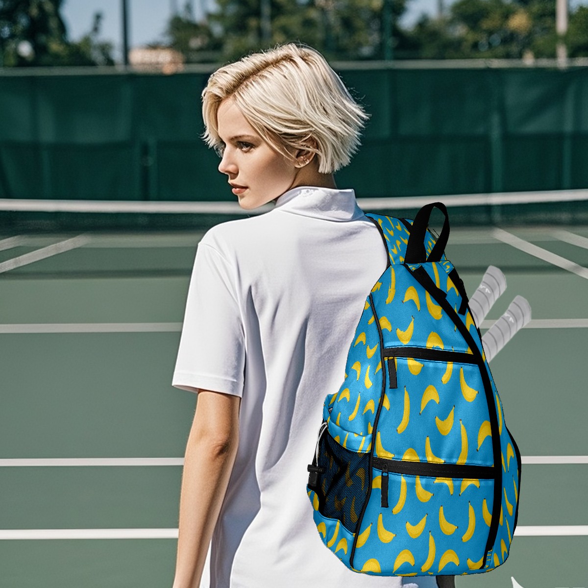 Multifunctional Pickleball Bag,Large Capacity Sports Pickleball Racket Bag, Water Bottle Holder and Fence Hook,Suitable for Both Men Women -Fruit Yellow Banana Pattern Blue