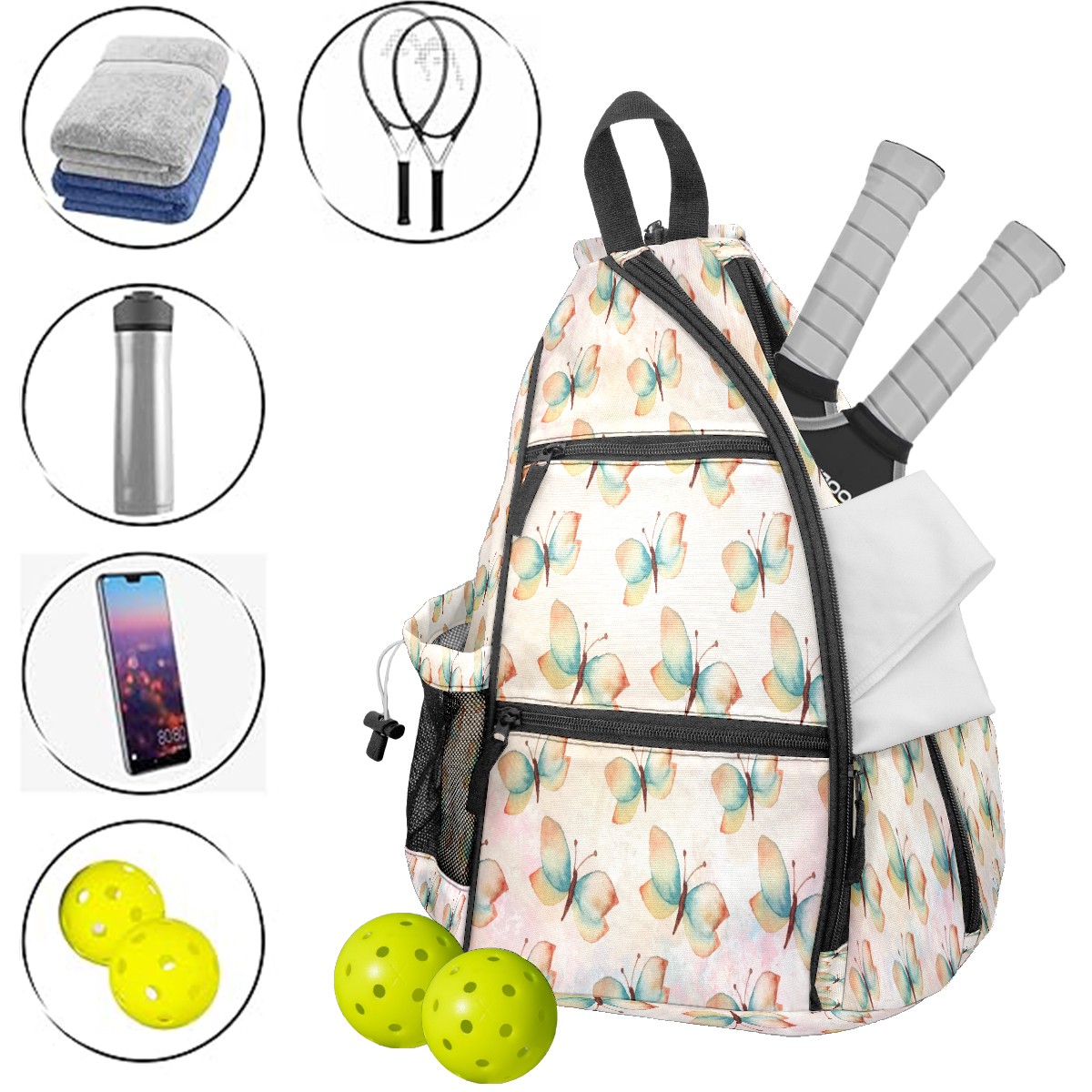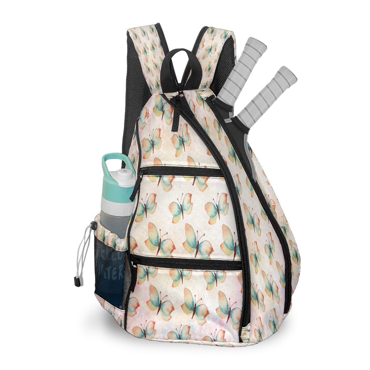 Multifunctional Pickleball Bag,Large Capacity Sports Pickleball Racket Bag, Water Bottle Holder and Fence Hook,Suitable for Both Men Women -Watercolor Butterflies