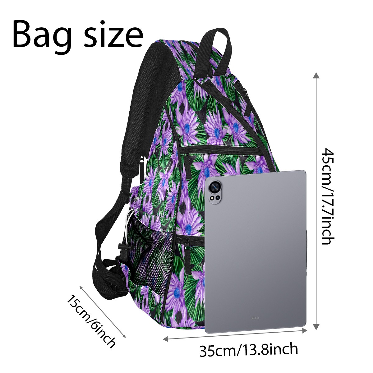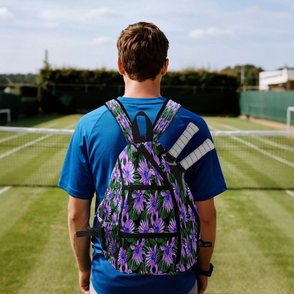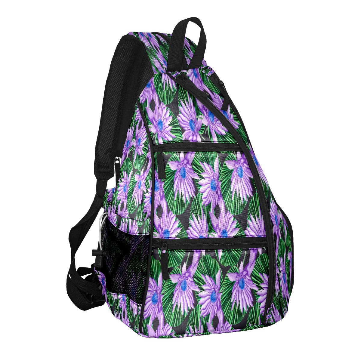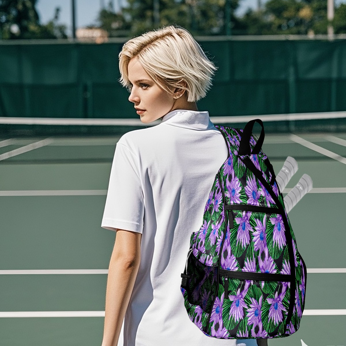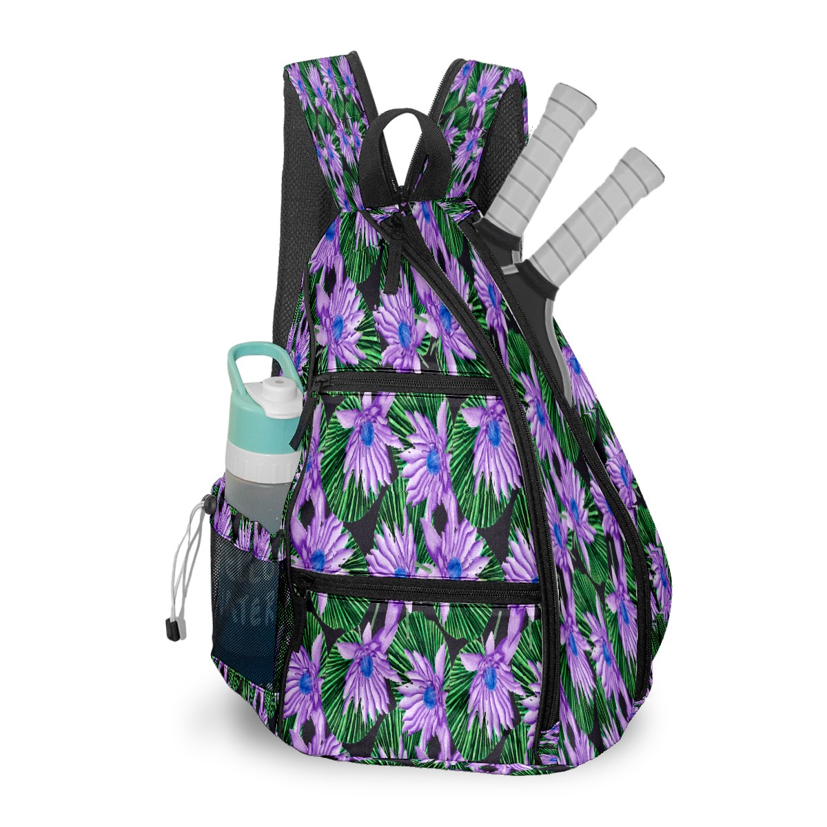 Multifunctional Pickleball Bag,Large Capacity Sports Pickleball Racket Bag, Water Bottle Holder and Fence Hook,Suitable for Both Men Women -Purple Flowers