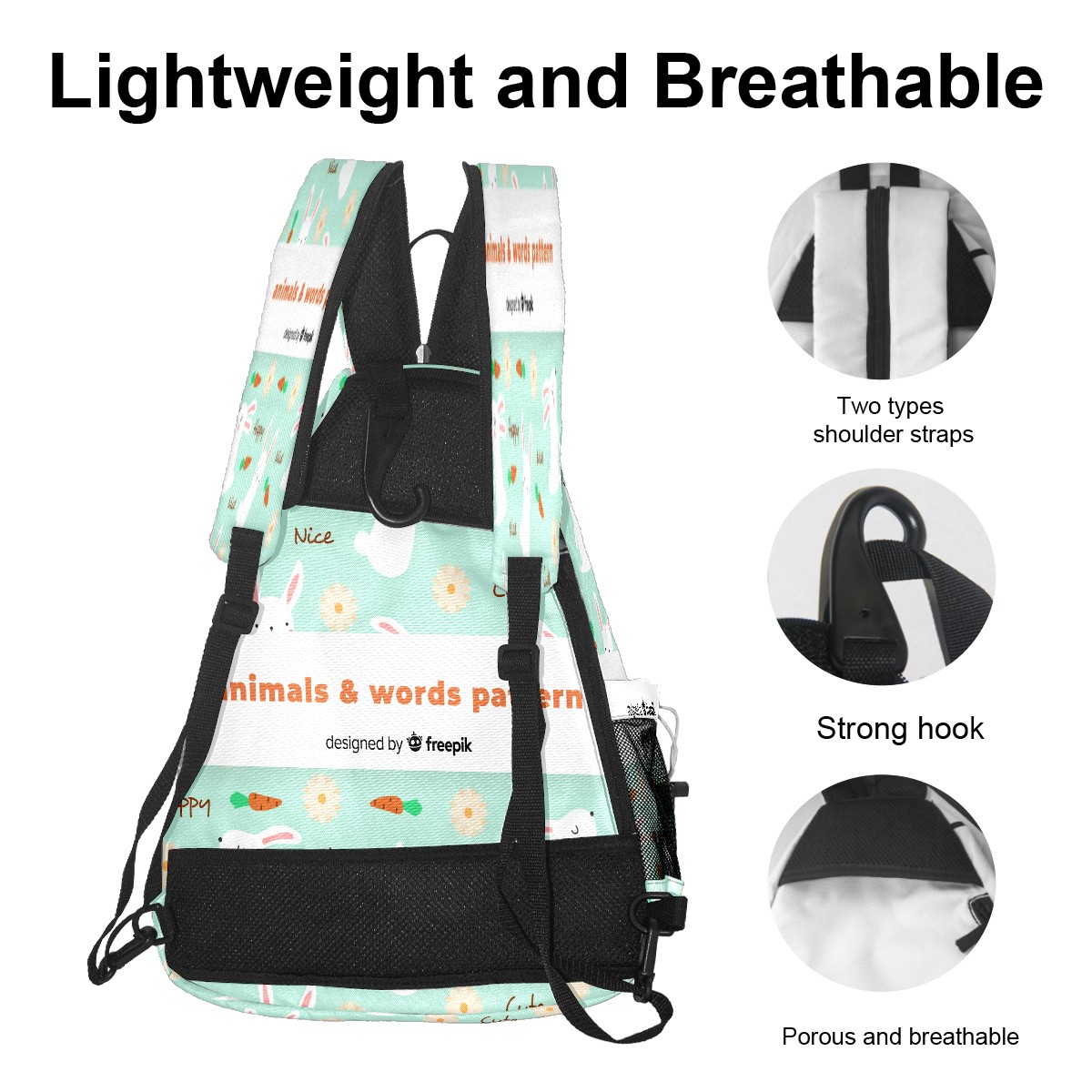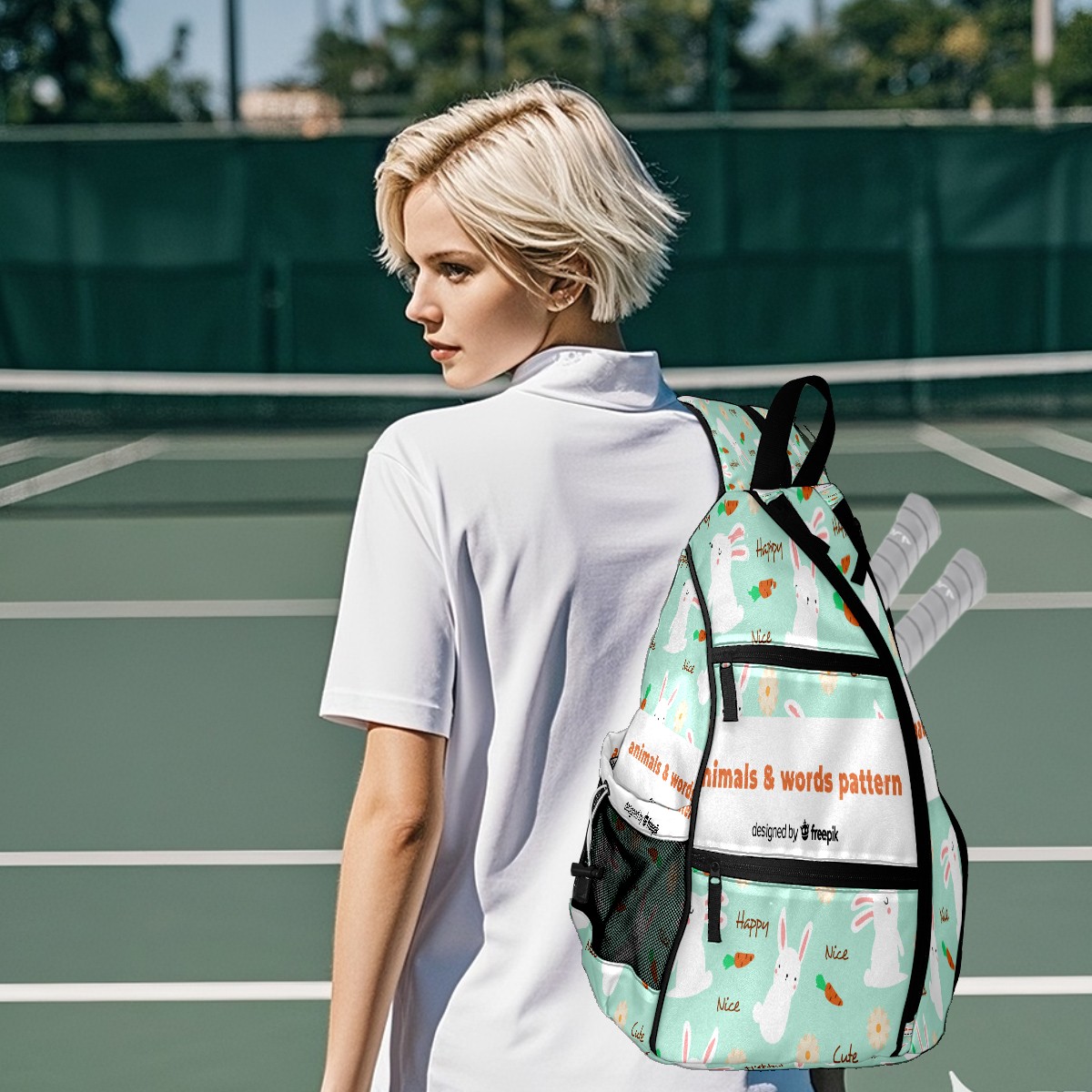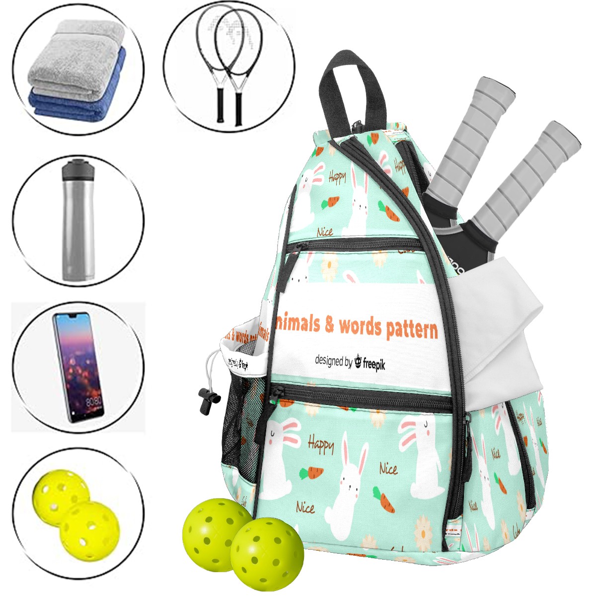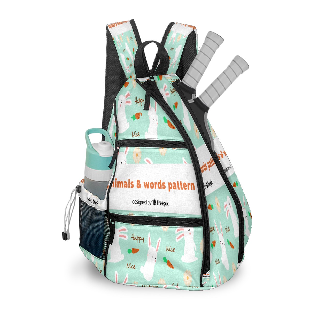 Multifunctional Pickleball Bag,Large Capacity Sports Pickleball Racket Bag, Water Bottle Holder and Fence Hook,Suitable for Both Men Women -Painted Rabbit Words