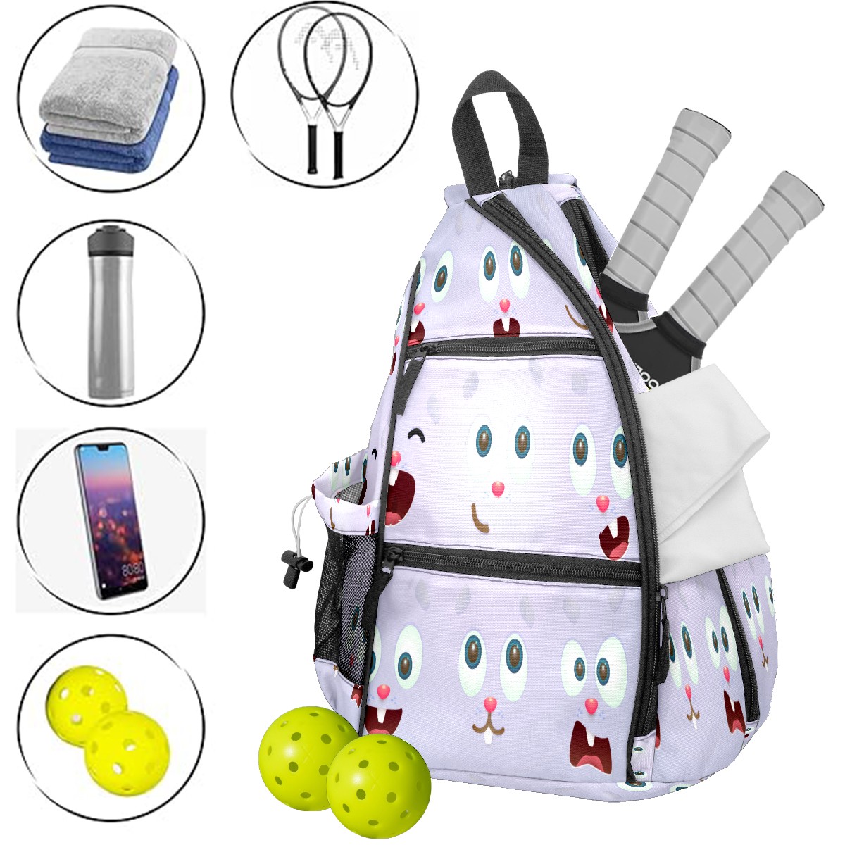 Multifunctional Pickleball Bag,Large Capacity Sports Pickleball Racket Bag, Water Bottle Holder and Fence Hook,Suitable for Both Men Women -Expressions Of Easter Rabbit