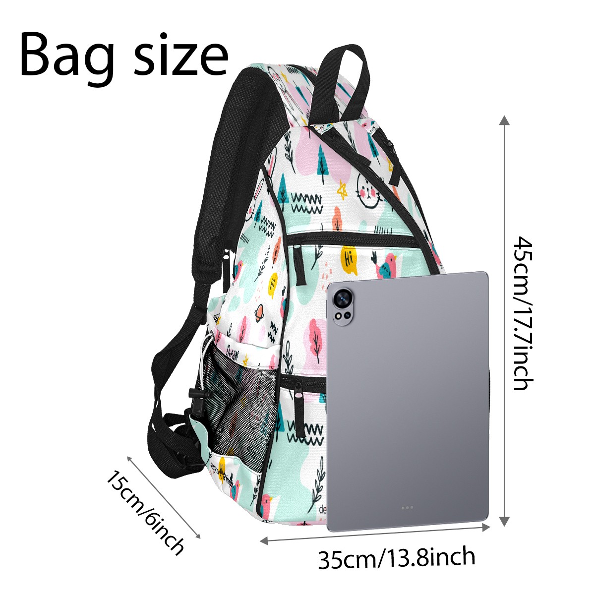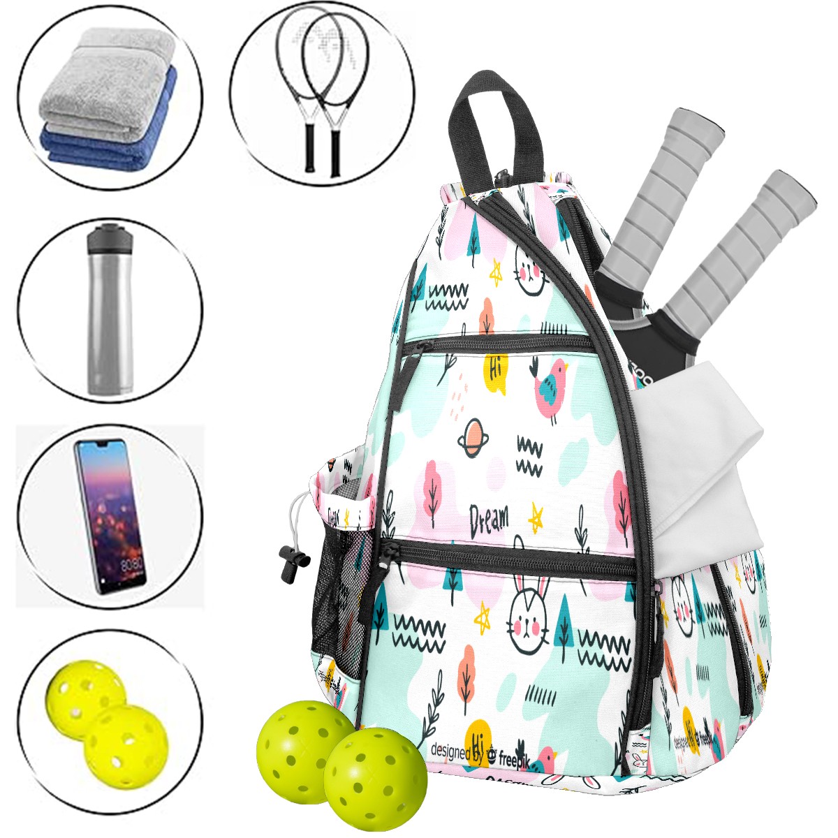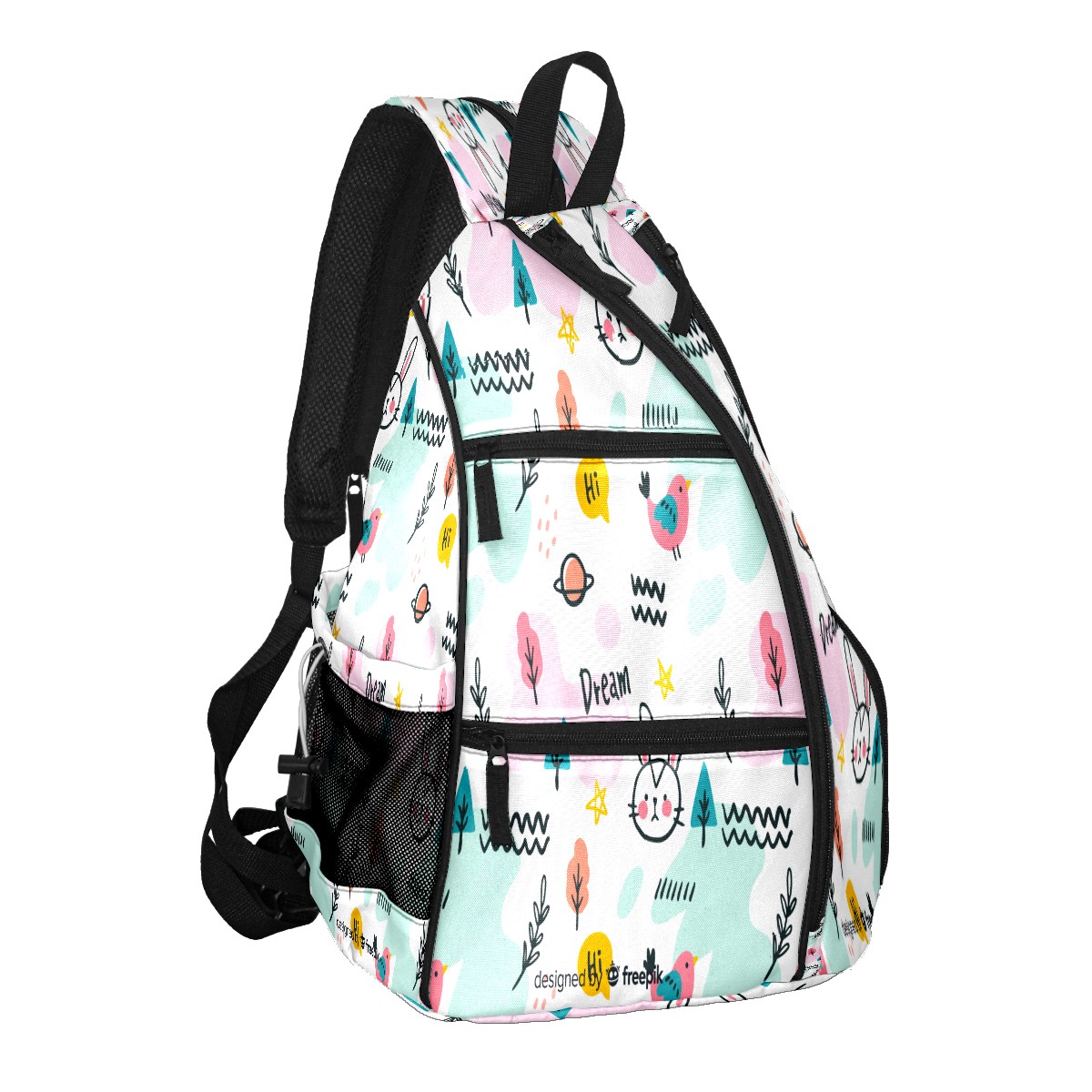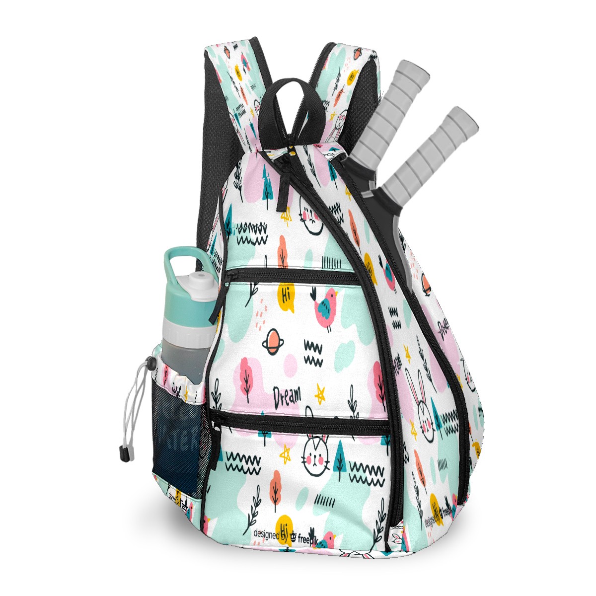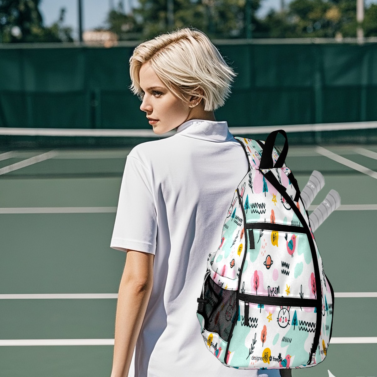 Multifunctional Pickleball Bag,Large Capacity Sports Pickleball Racket Bag, Water Bottle Holder and Fence Hook,Suitable for Both Men Women -Doodle Animals Words