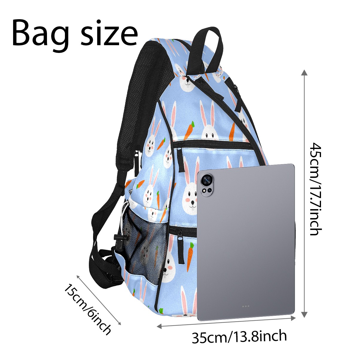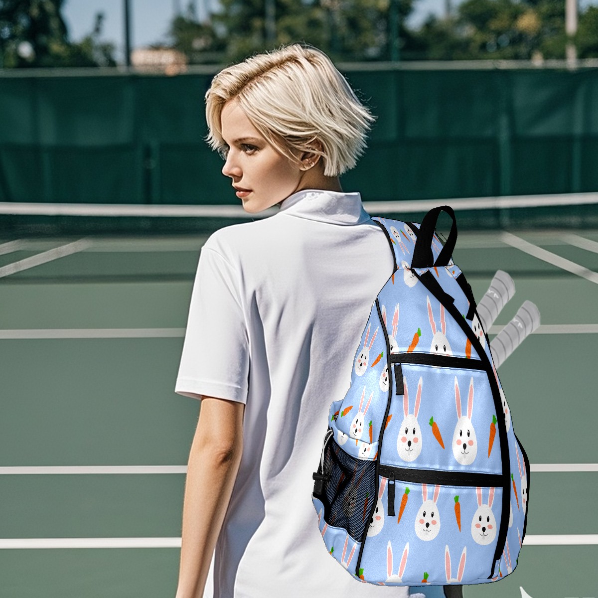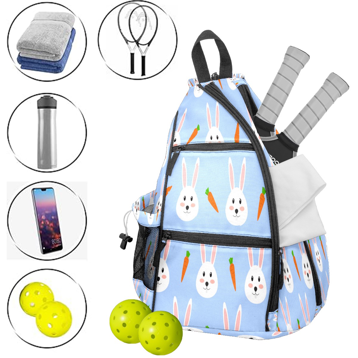 Multifunctional Pickleball Bag,Large Capacity Sports Pickleball Racket Bag, Water Bottle Holder and Fence Hook,Suitable for Both Men Women -Cute White Rabbit Carrot