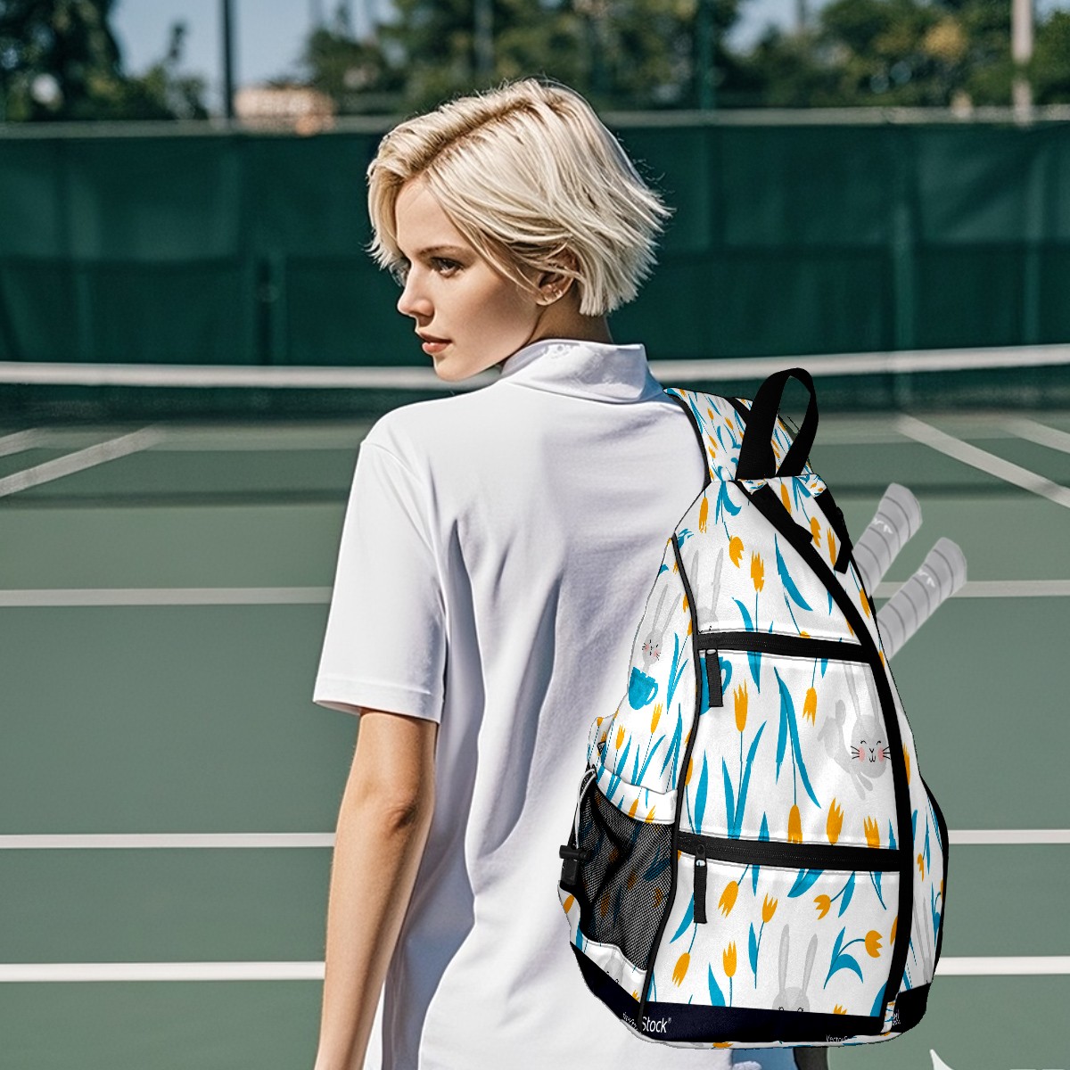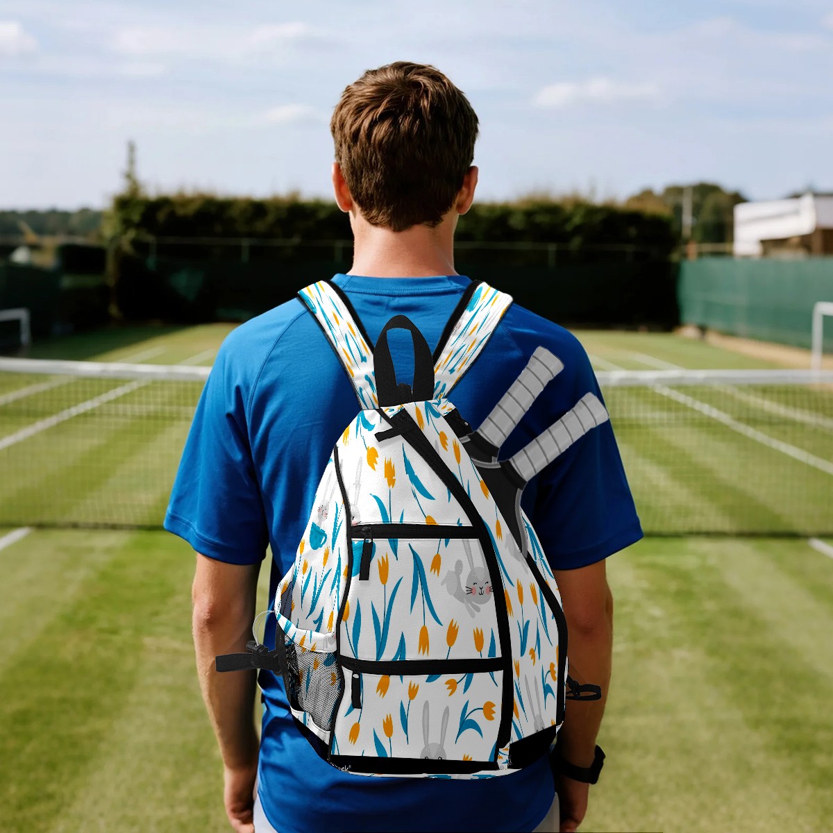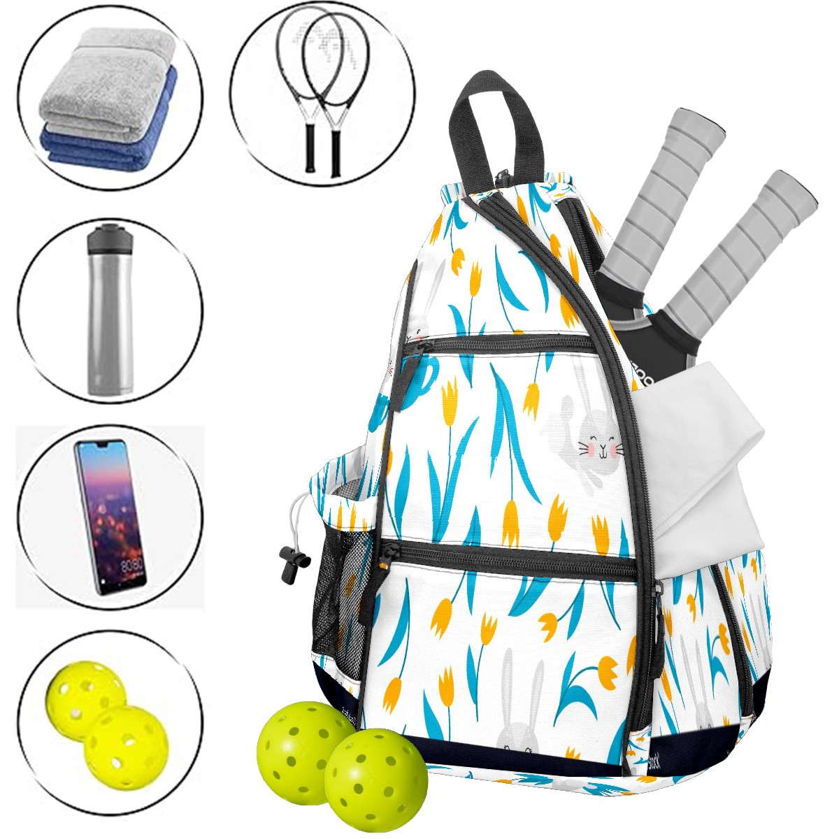 Multifunctional Pickleball Bag,Large Capacity Sports Pickleball Racket Bag, Water Bottle Holder and Fence Hook,Suitable for Both Men Women -Rabbits Tulips