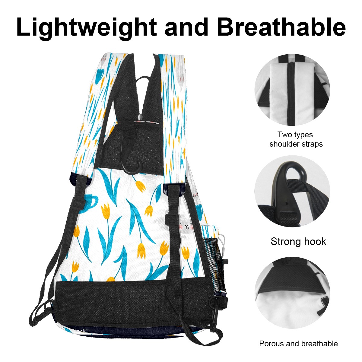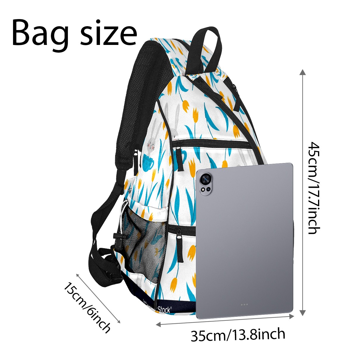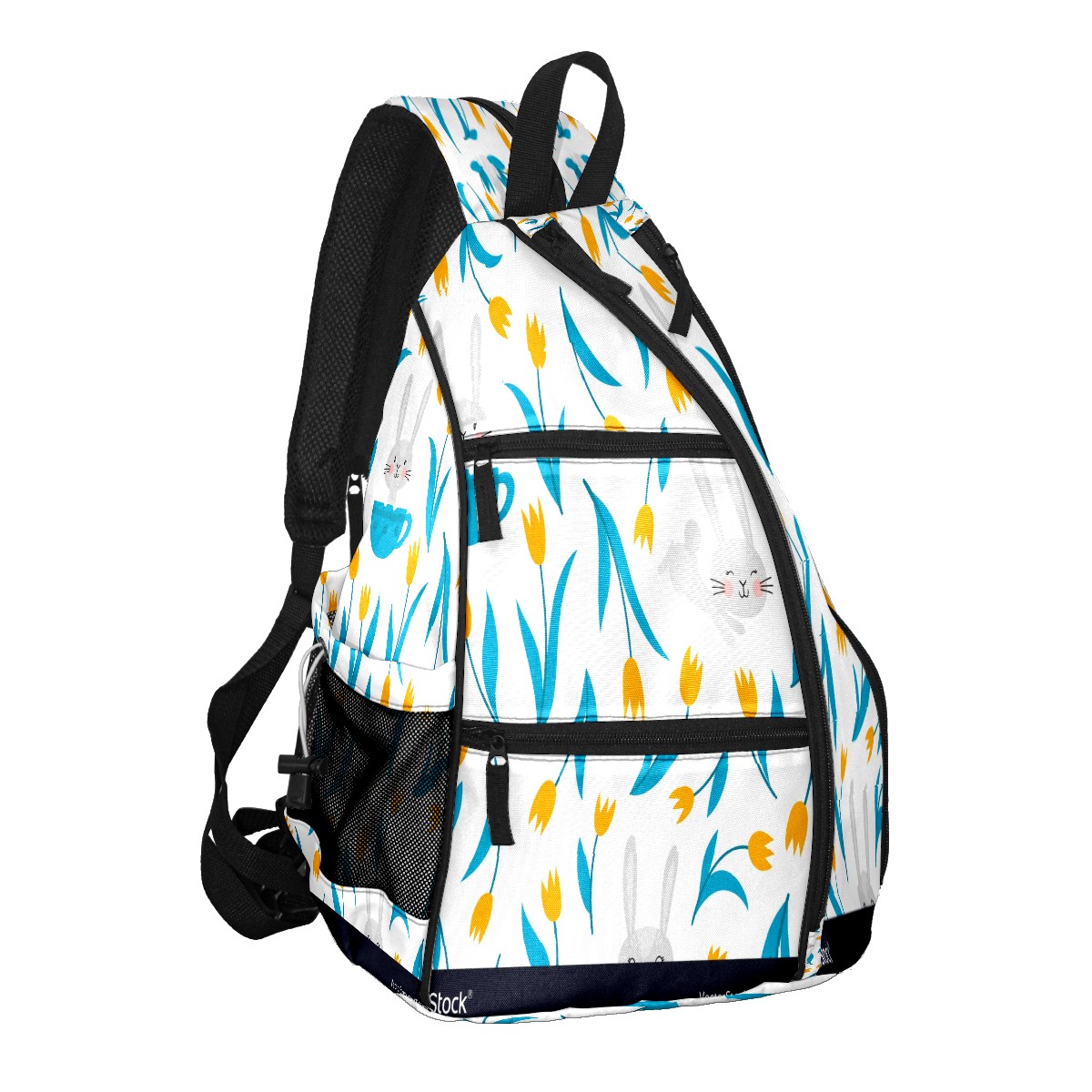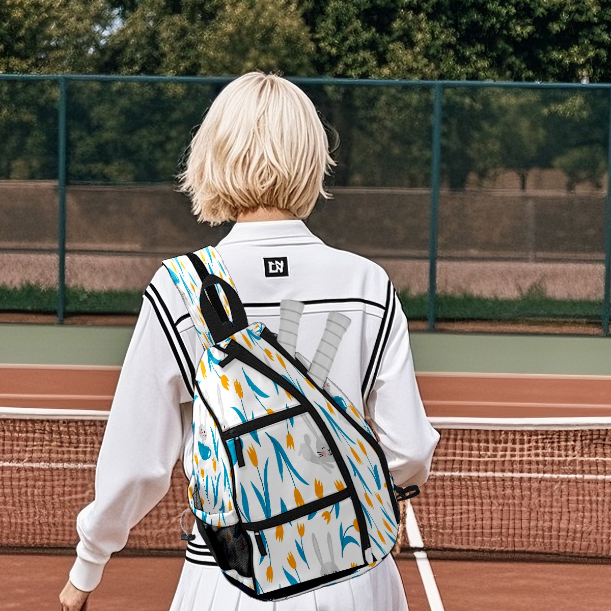 Multifunctional Pickleball Bag,Large Capacity Sports Pickleball Racket Bag, Water Bottle Holder and Fence Hook,Suitable for Both Men Women -Rabbits Tulips