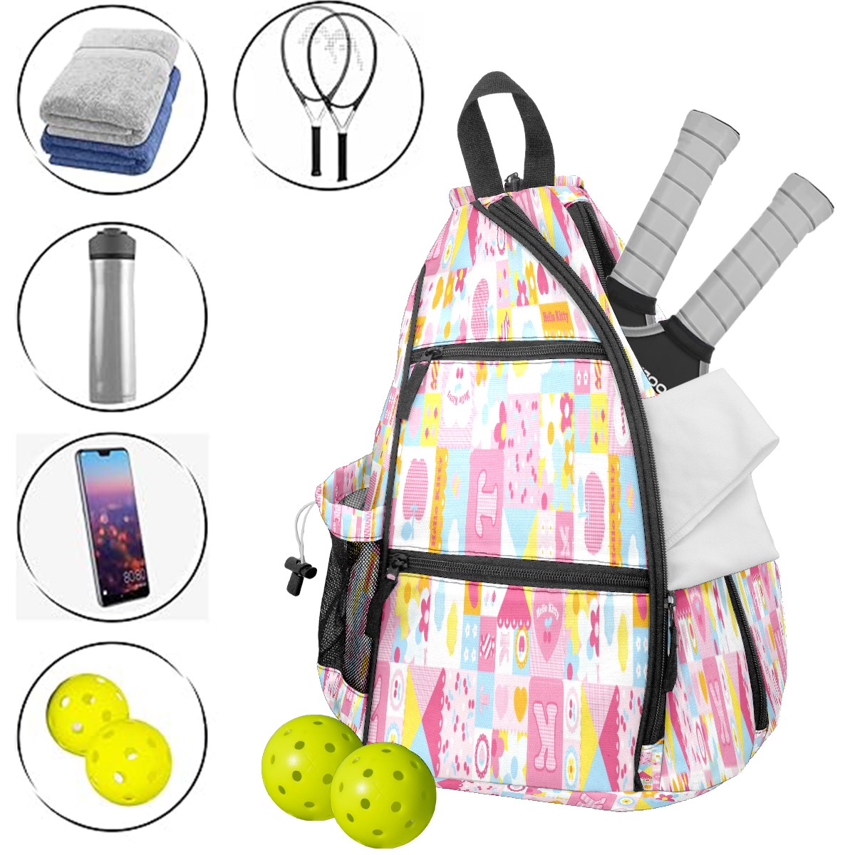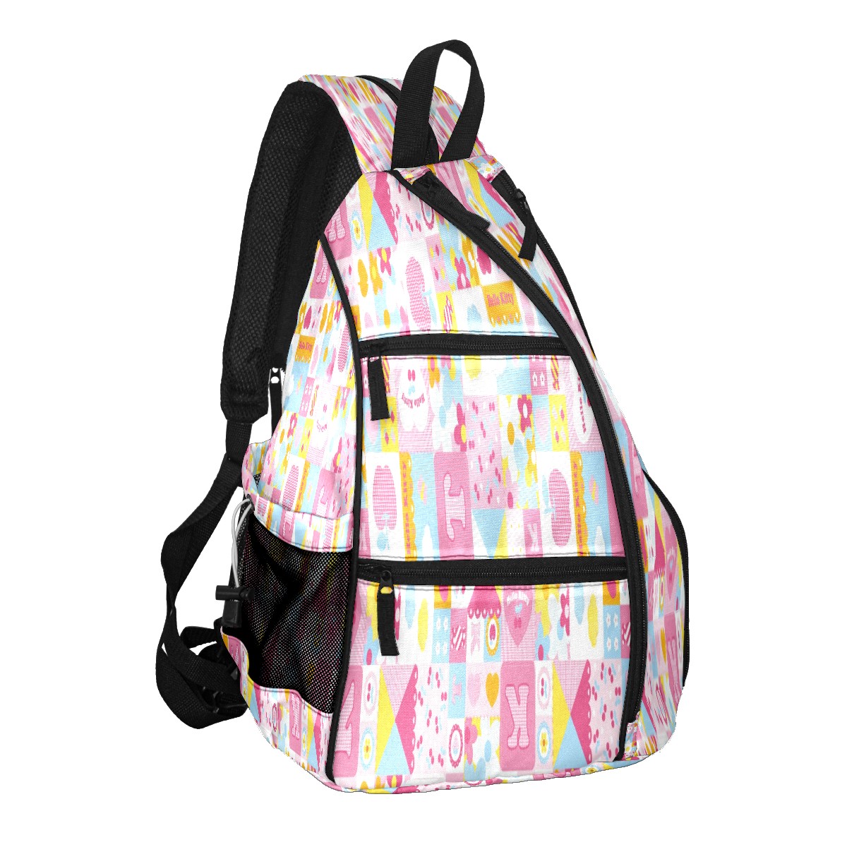 Multifunctional Pickleball Bag,Large Capacity Sports Pickleball Racket Bag, Water Bottle Holder and Fence Hook,Suitable for Both Men Women -Hello Kitty Words