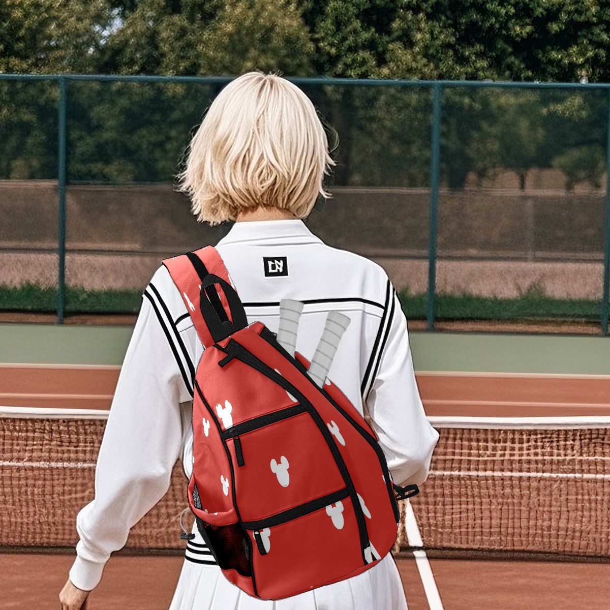 Multifunctional Pickleball Bag,Large Capacity Sports Pickleball Racket Bag, Water Bottle Holder and Fence Hook,Suitable for Both Men Women -Red&White Mouse Pattern