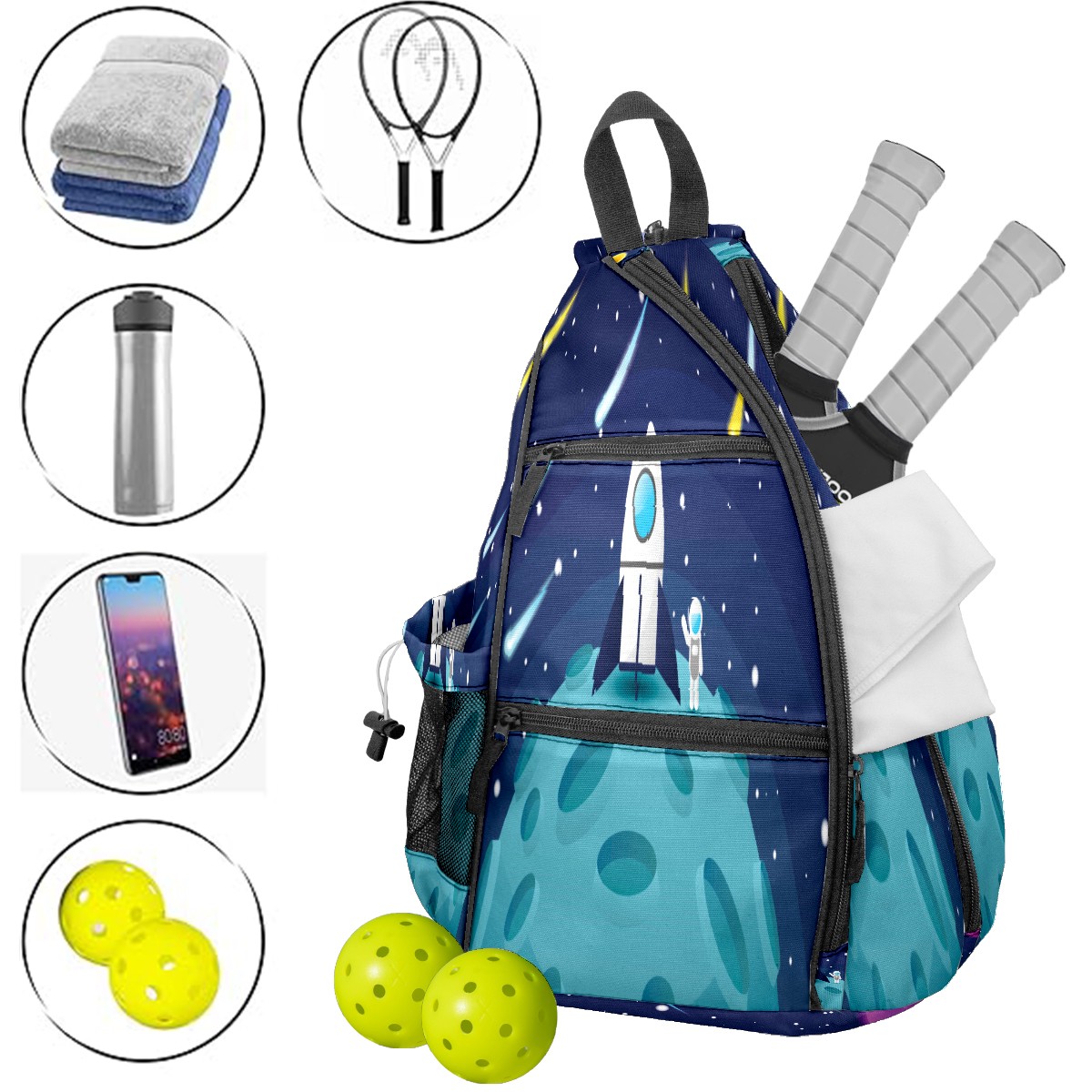 Multifunctional Pickleball Bag,Large Capacity Sports Pickleball Racket Bag, Water Bottle Holder and Fence Hook,Suitable for Both Men Women -Starry Sky Space