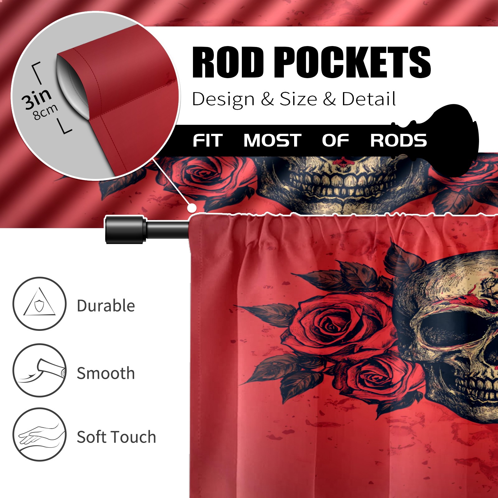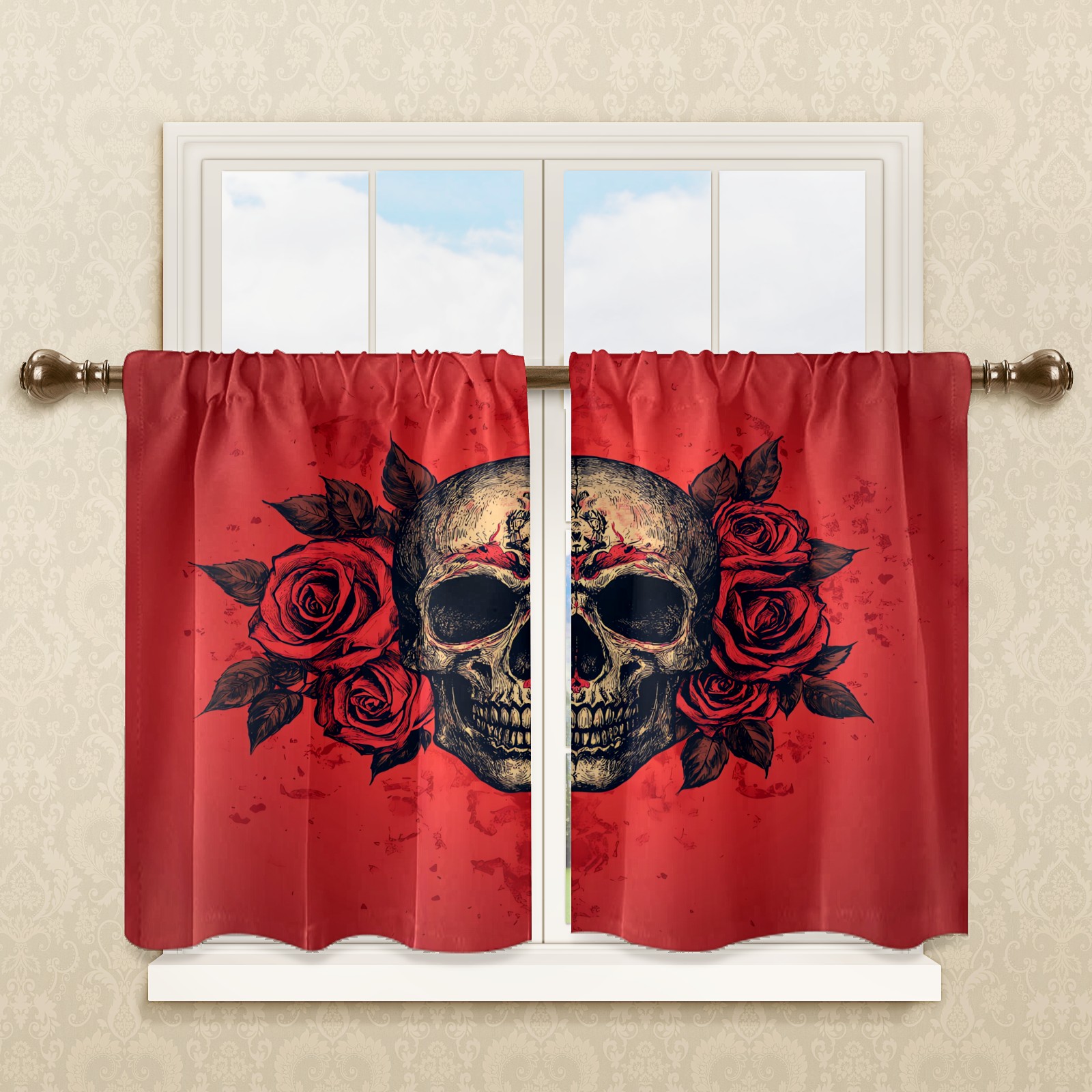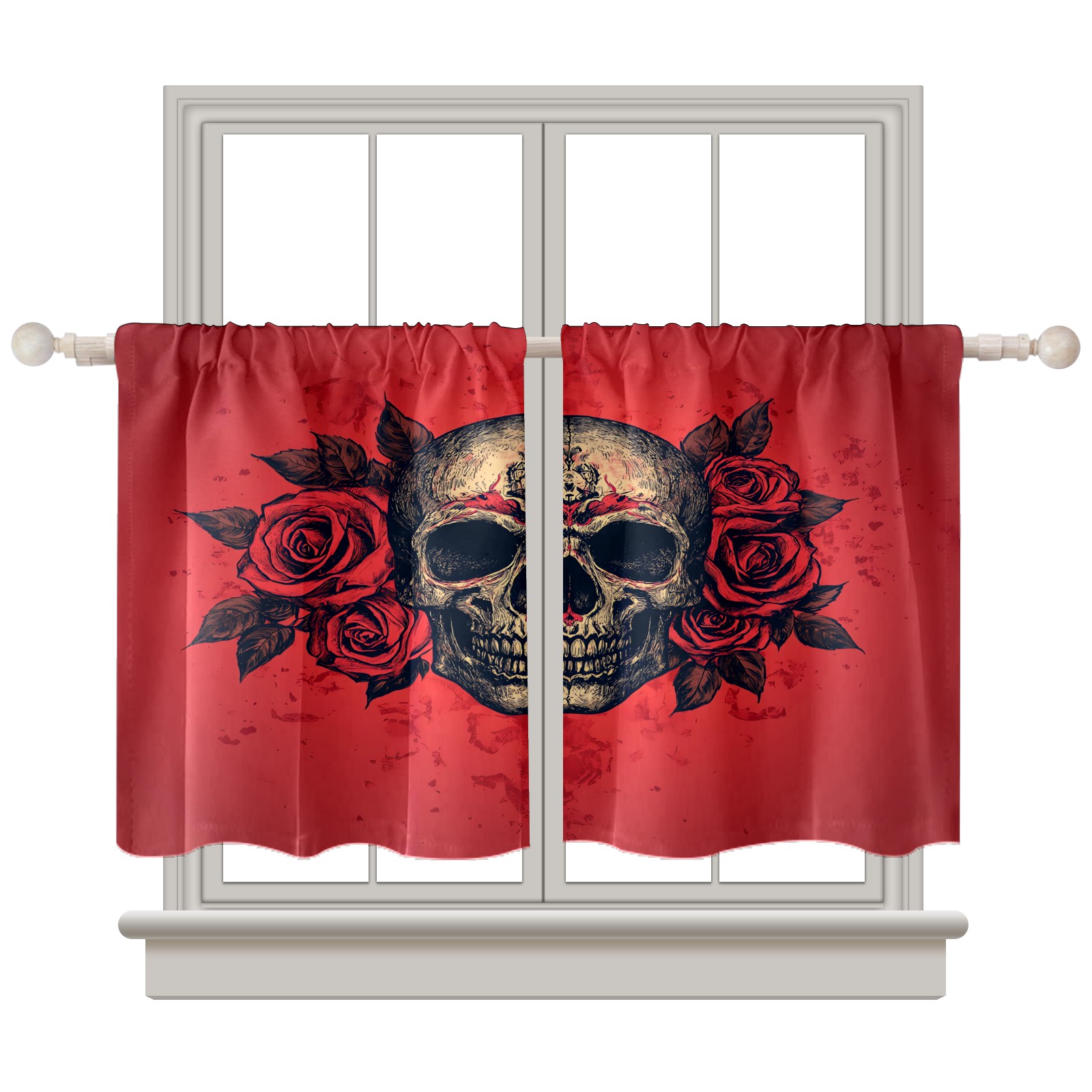 Шторы-панно для дома, декоративные драпировки для гостиной и спальни, легкие и прочные, Skull Roses Red (1)