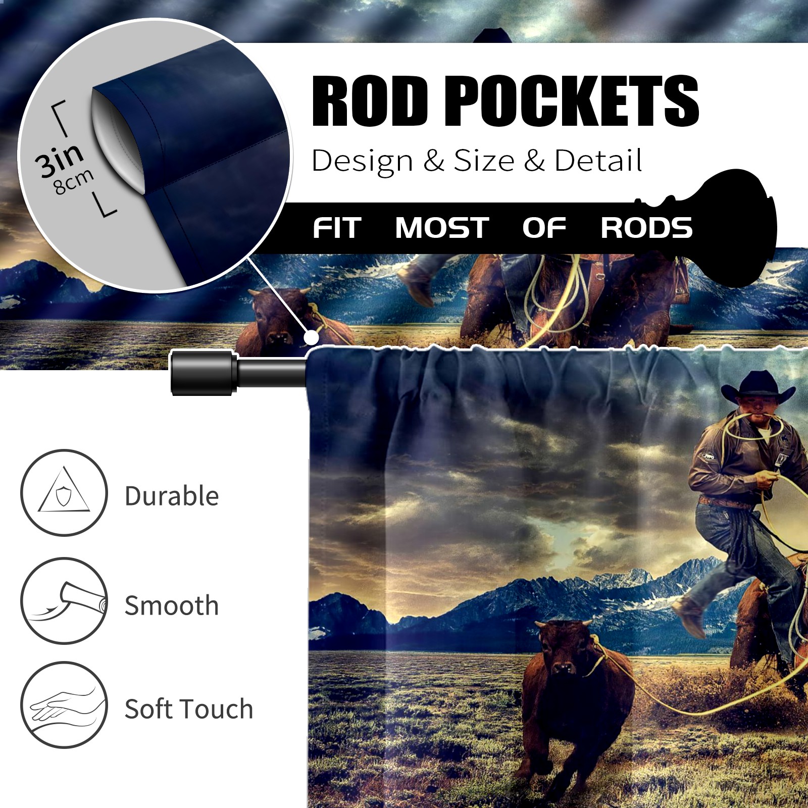 Шторы-панно для дома, декоративные драпировки для гостиной и спальни, легкие и прочные, Cowboy And American Western Landscape
