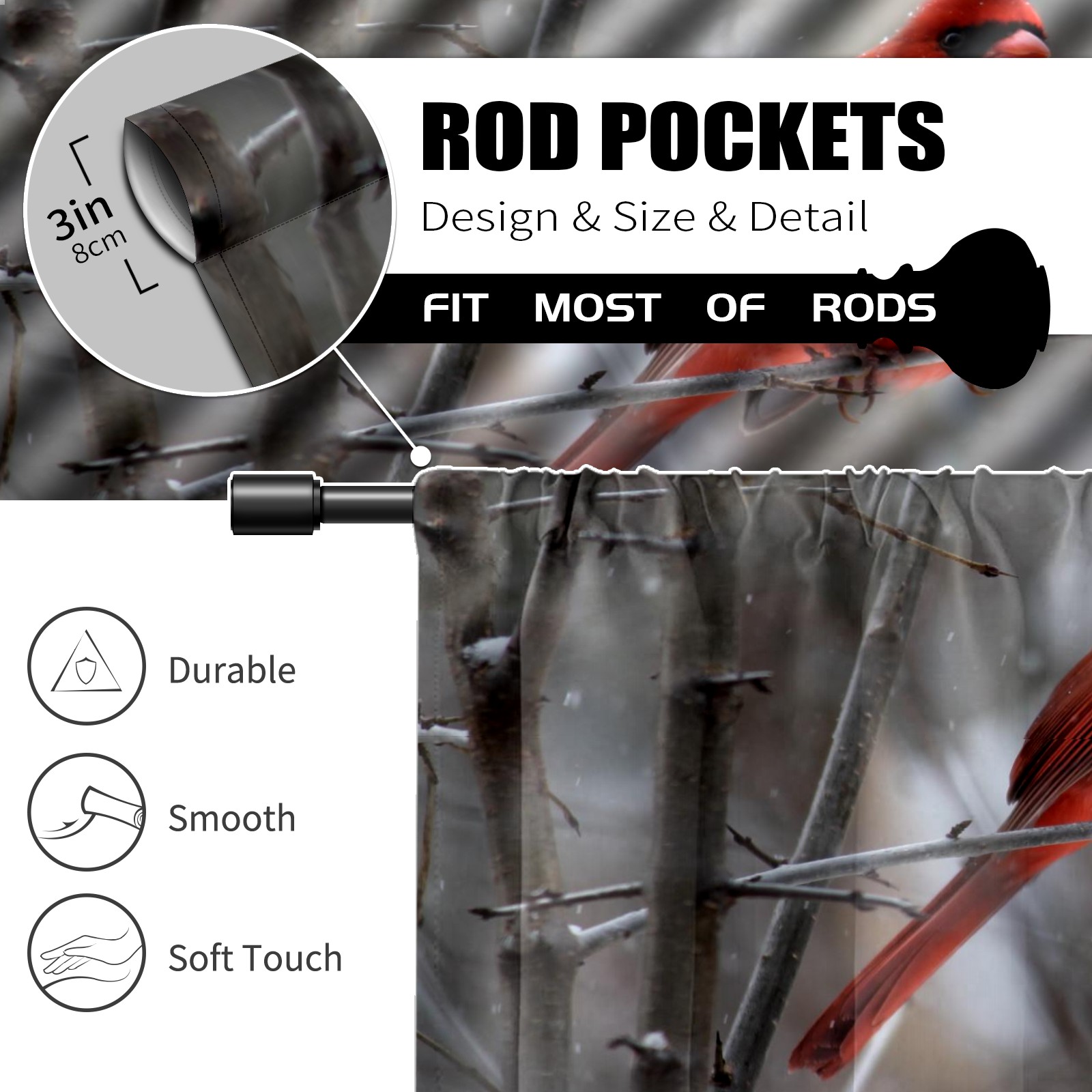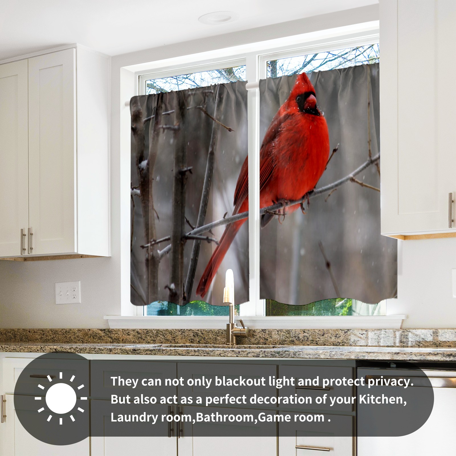 Шторы-панно для дома, декоративные драпировки для гостиной и спальни, легкие и прочные, Snow Cardinal Red Bird