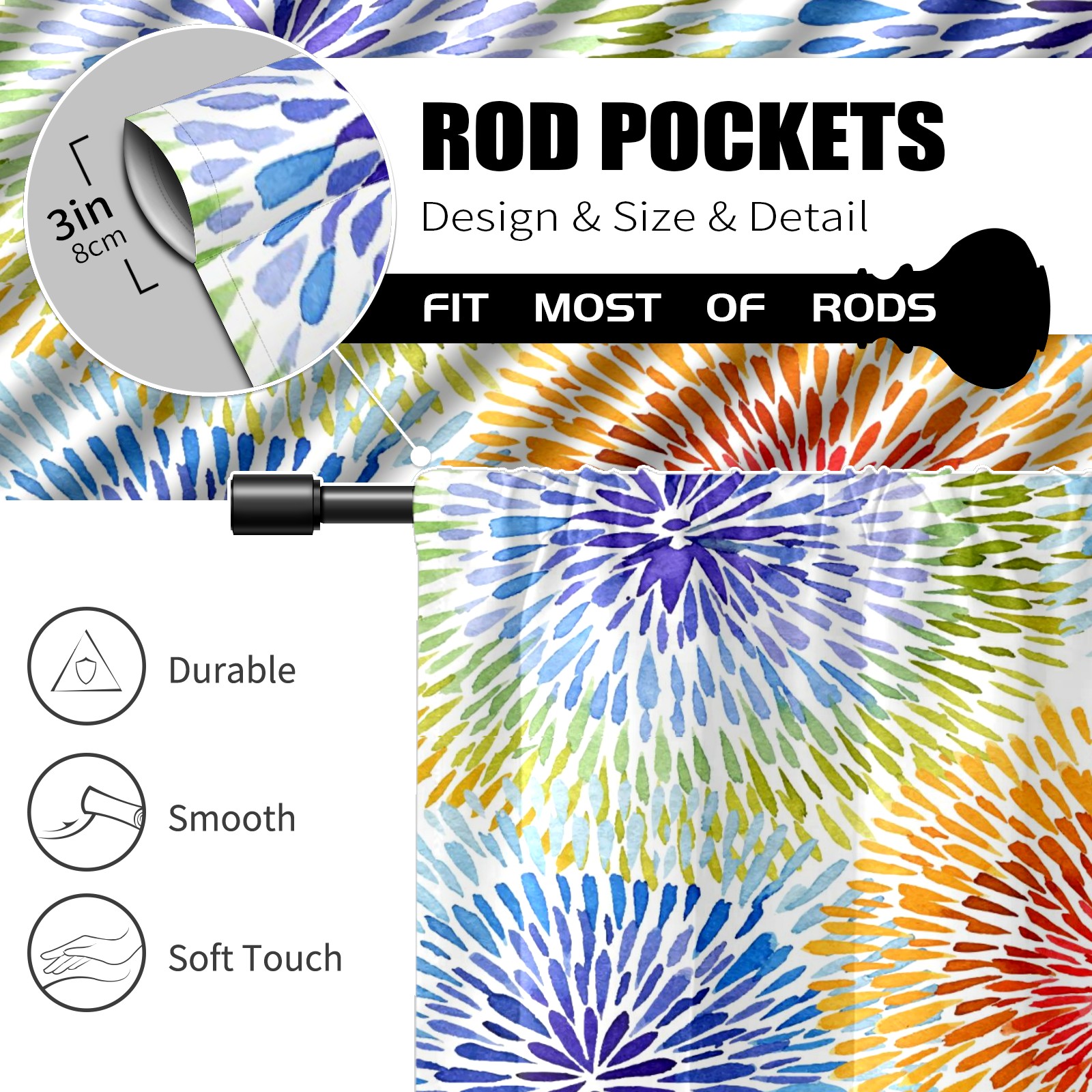 Шторы-панно для дома, декоративные драпировки для гостиной и спальни, легкие и прочные, Rainbow Tie Dye Style