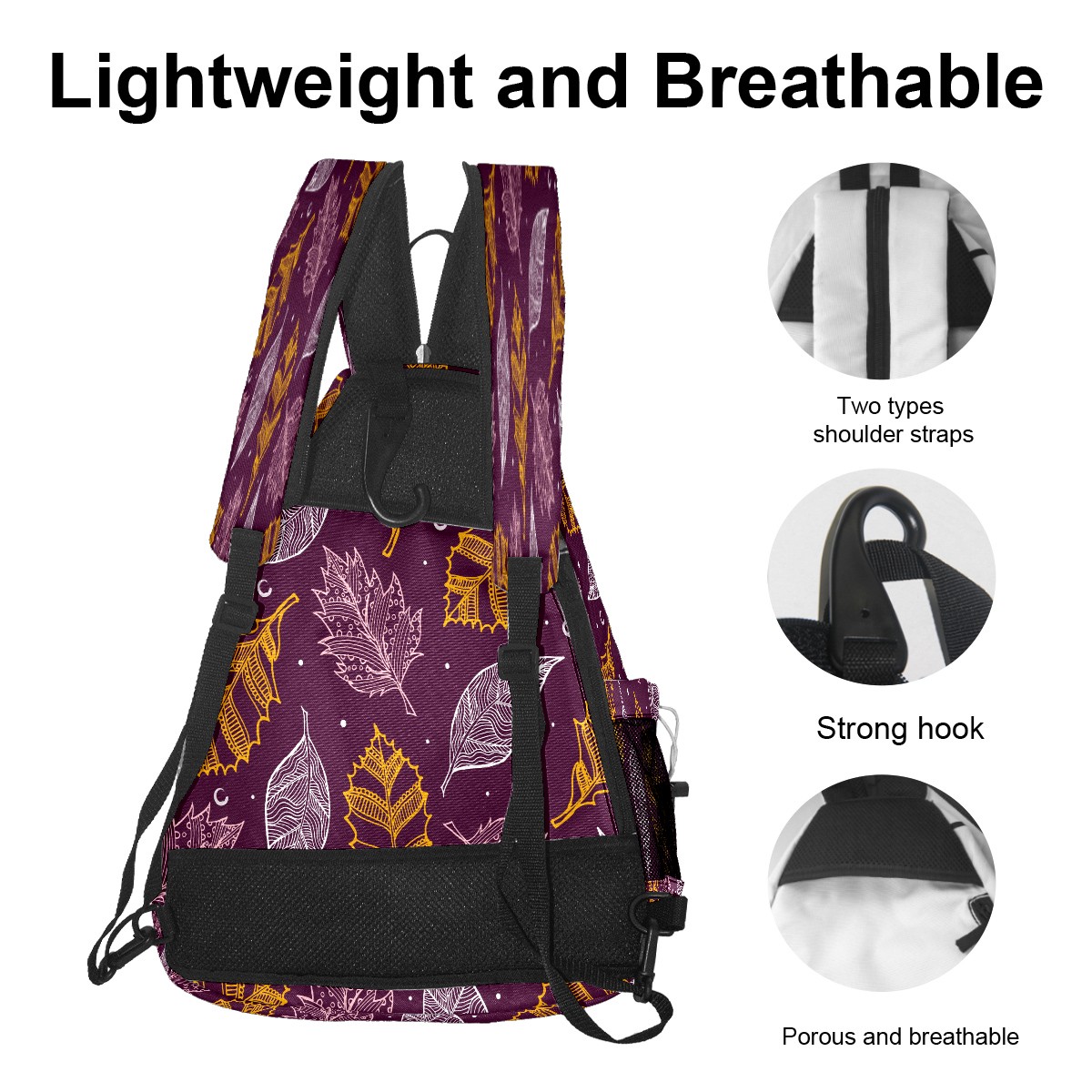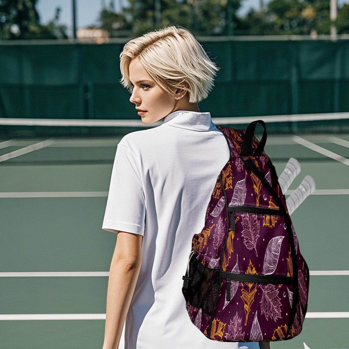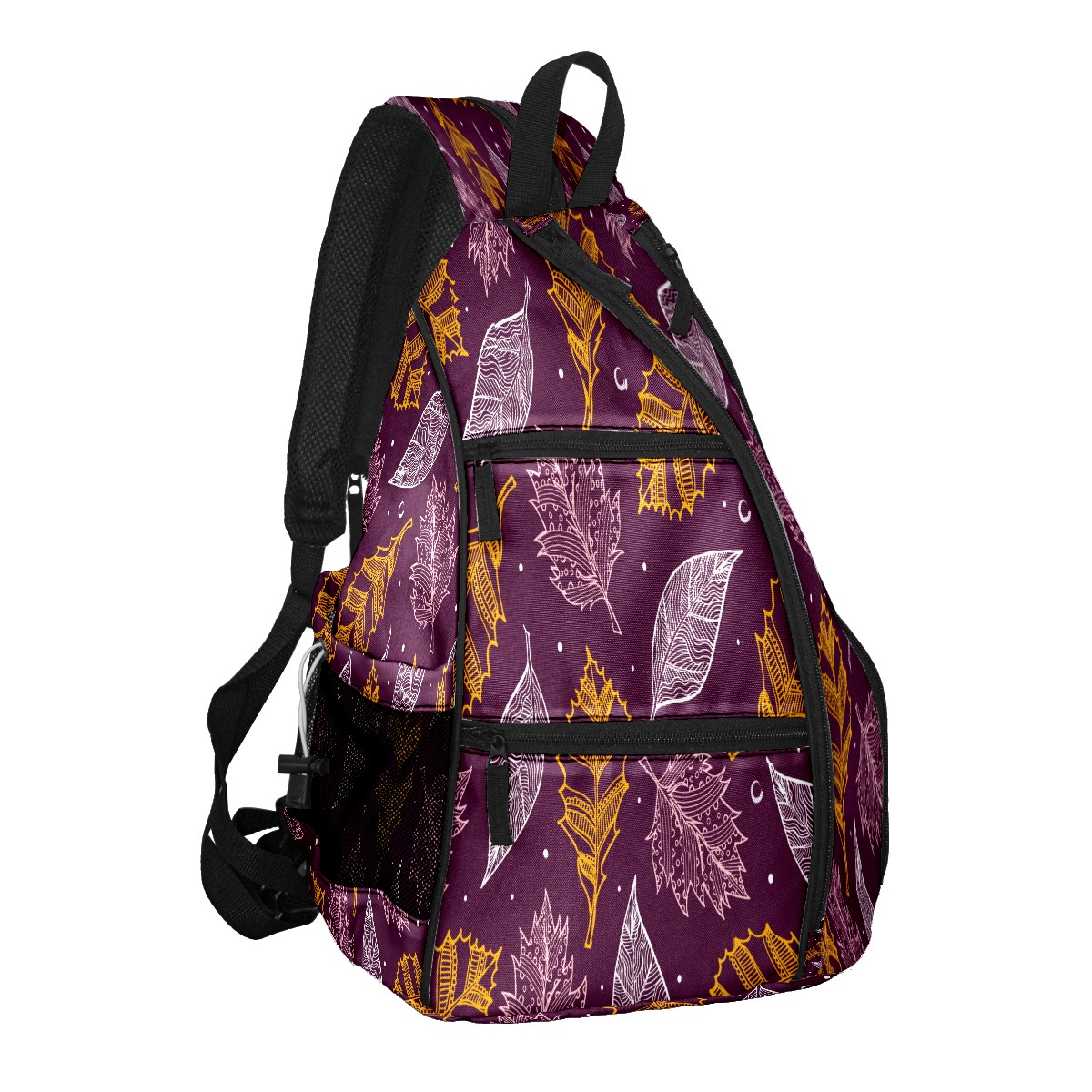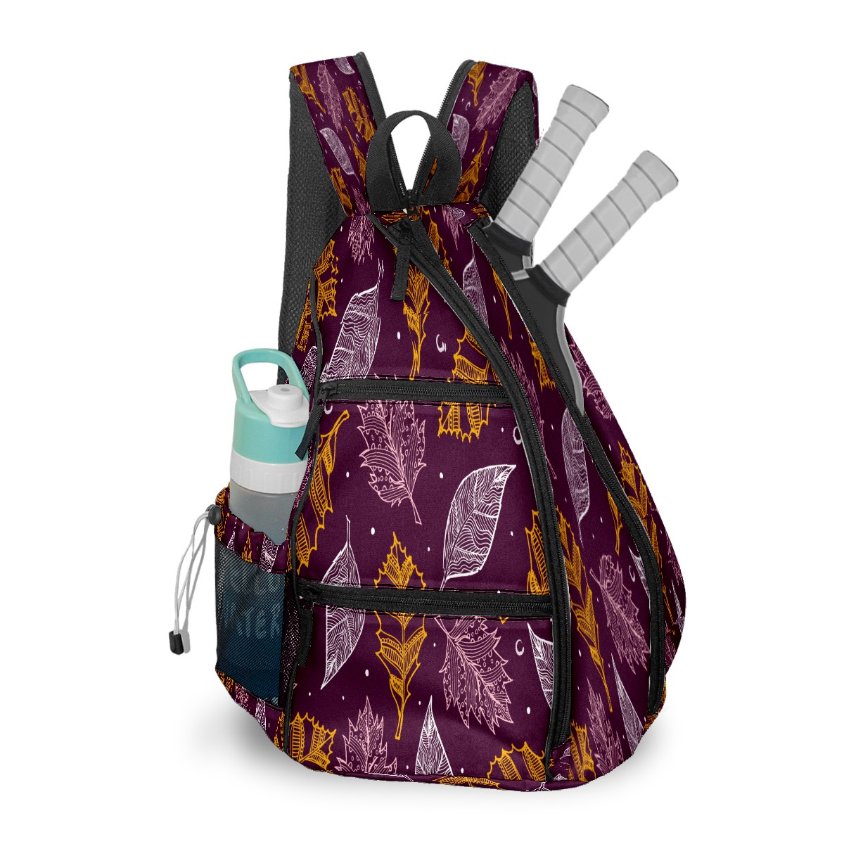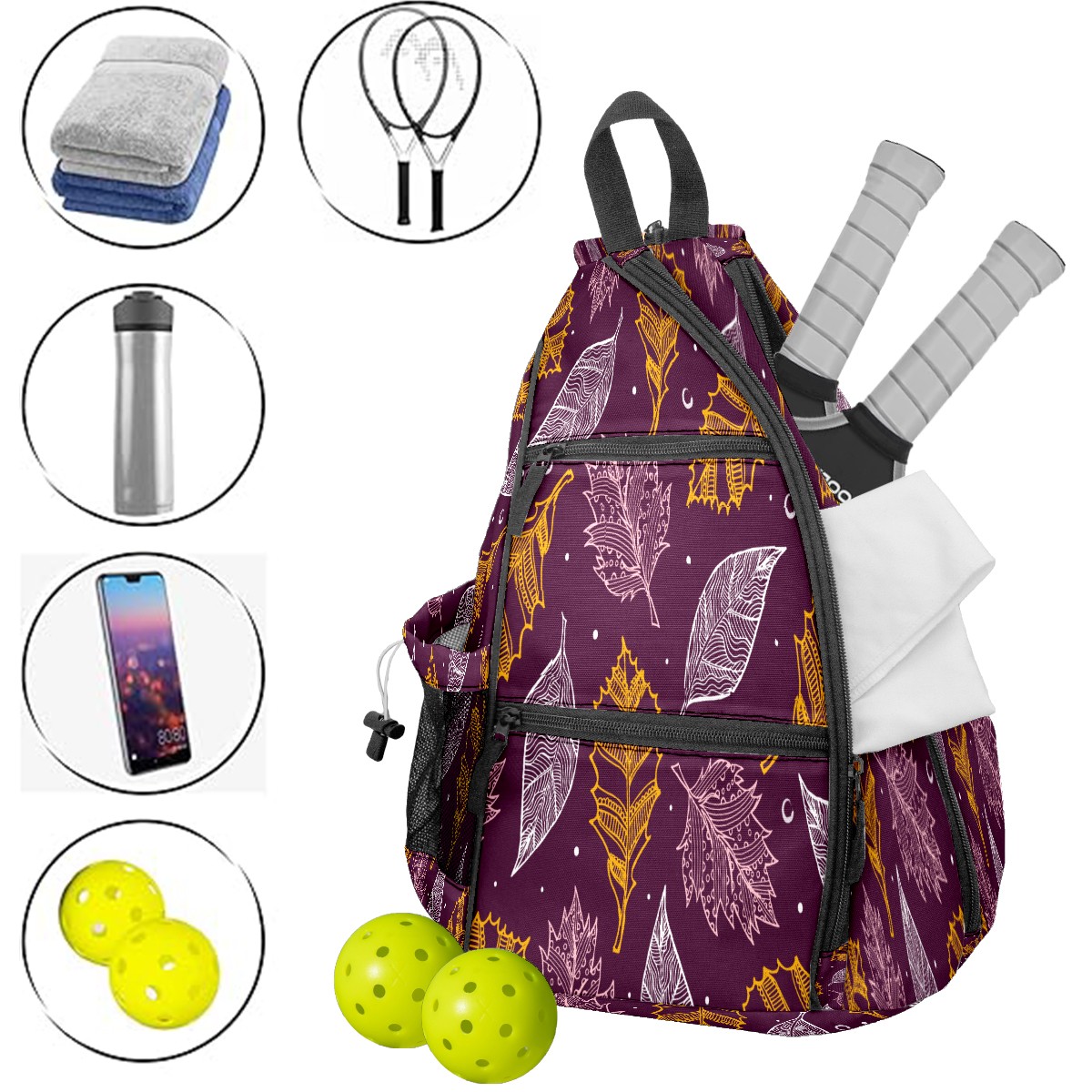 Multifunctional Pickleball Bag,Large Capacity Sports Pickleball Racket Bag, Water Bottle Holder and Fence Hook,Suitable for Both Men Women -White Yellow Leaves On Purple Background