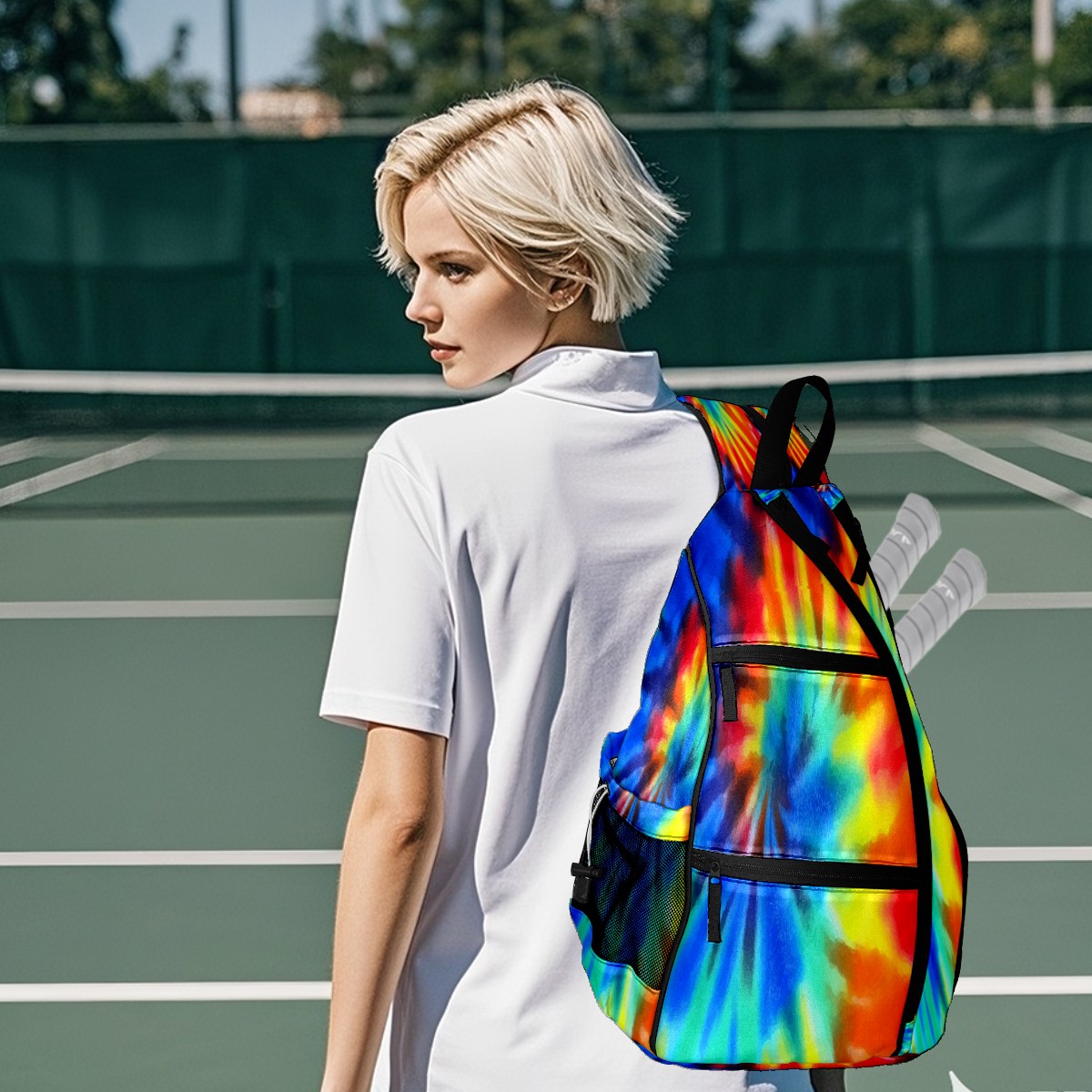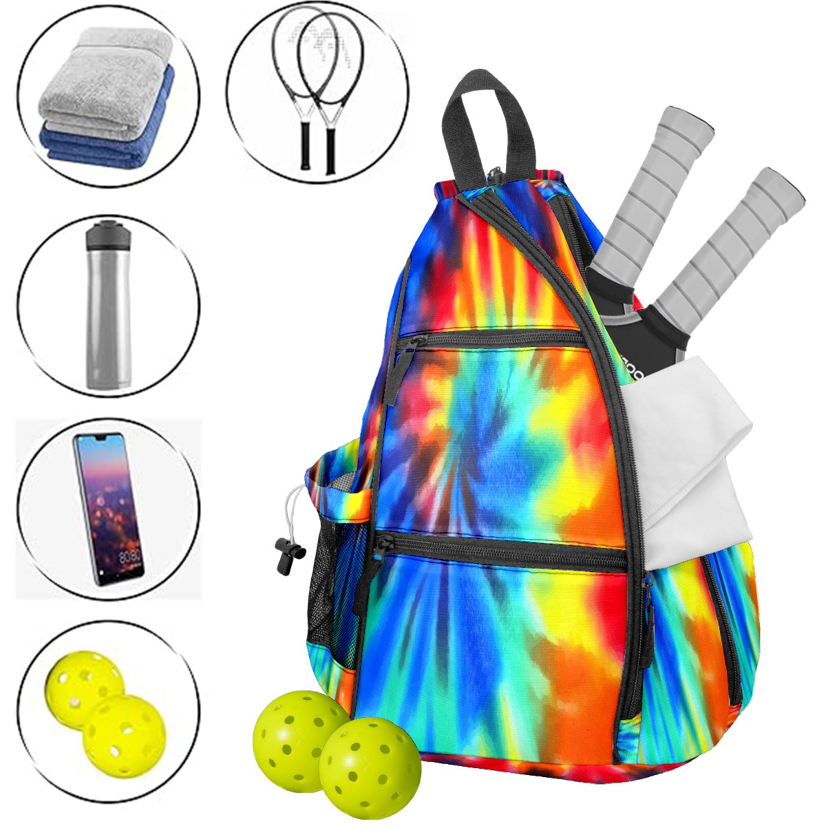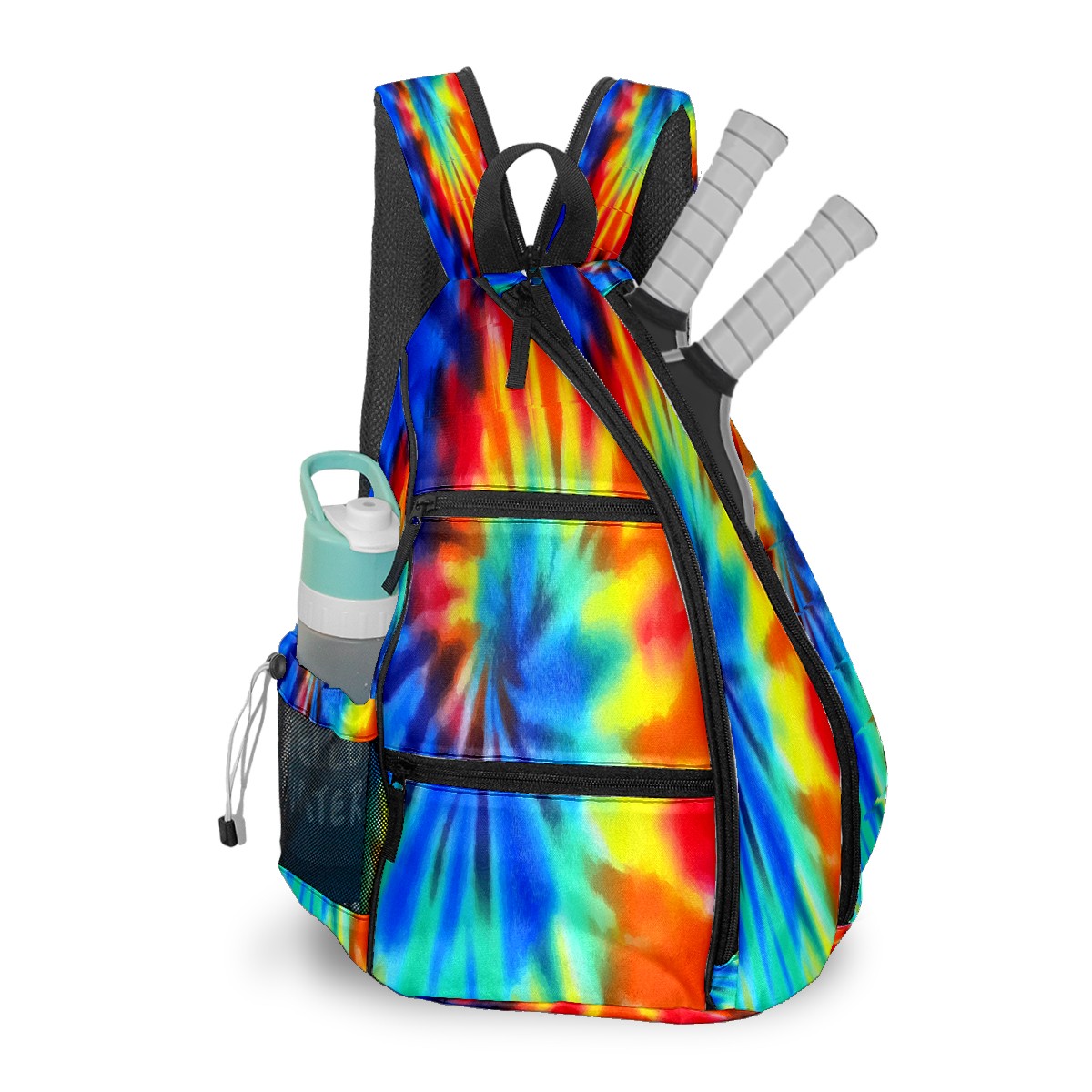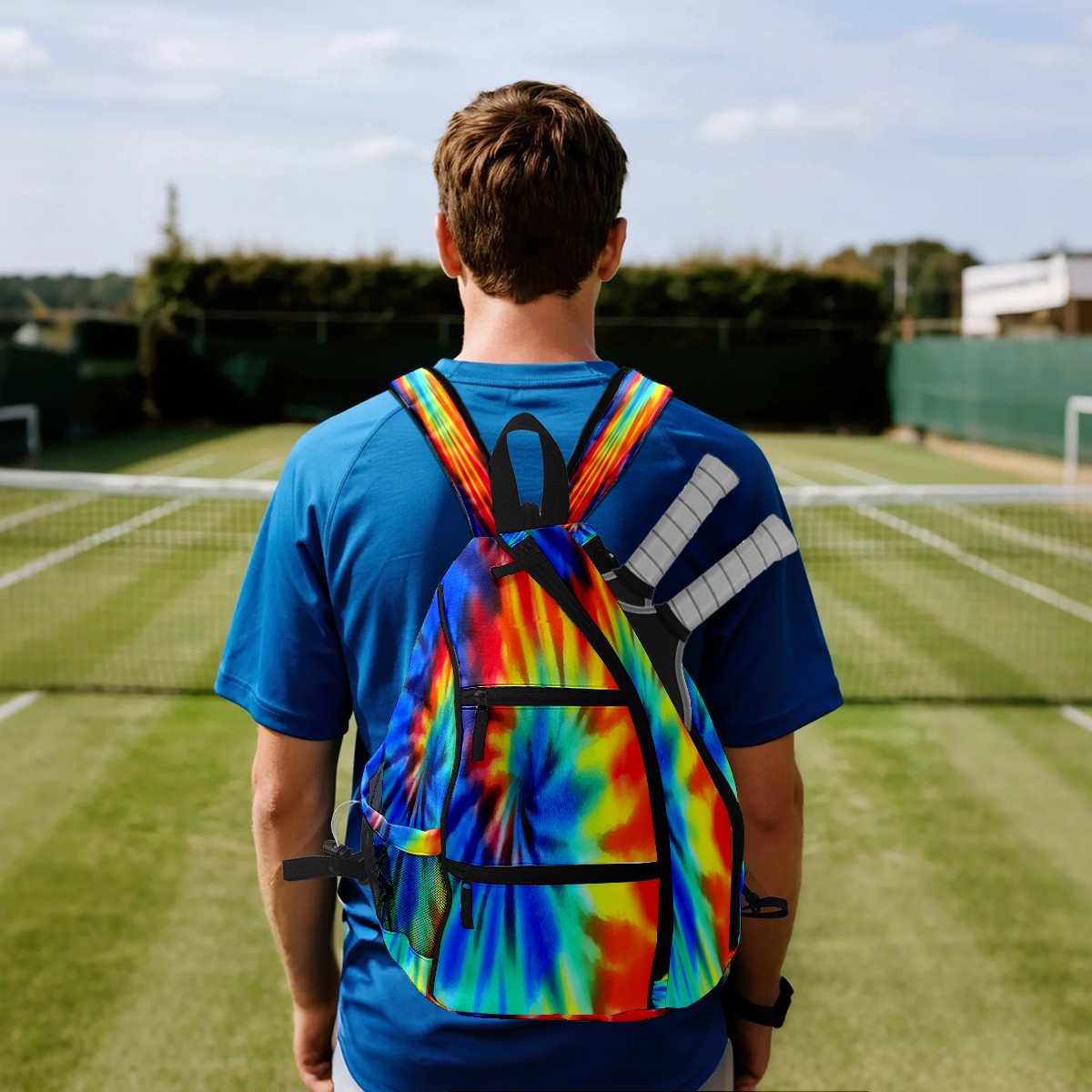 Multifunctional Pickleball Bag,Large Capacity Sports Pickleball Racket Bag, Water Bottle Holder and Fence Hook,Suitable for Both Men Women -Tie Dye Spiral
