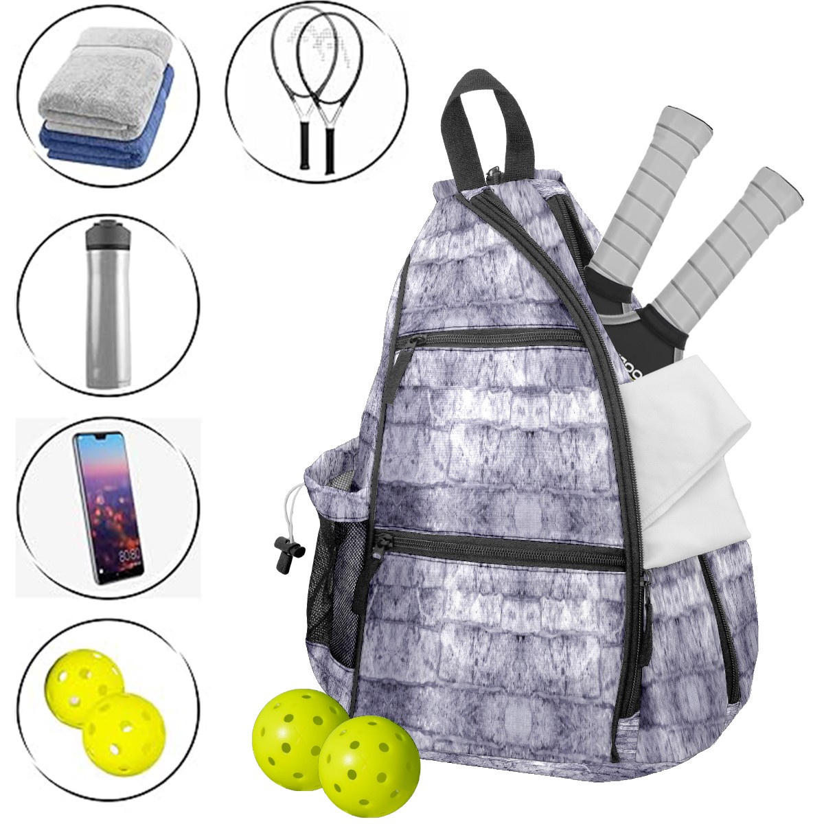 Multifunctional Pickleball Bag,Large Capacity Sports Pickleball Racket Bag, Water Bottle Holder and Fence Hook,Suitable for Both Men Women -Stone Wall Texture