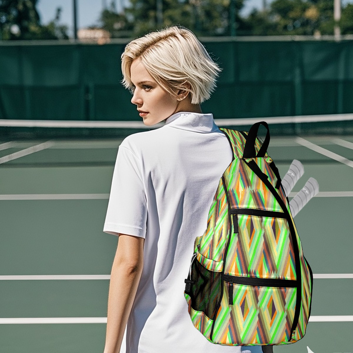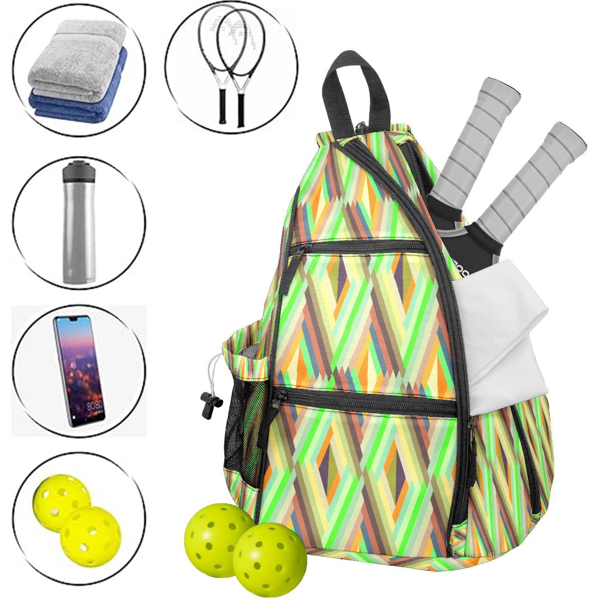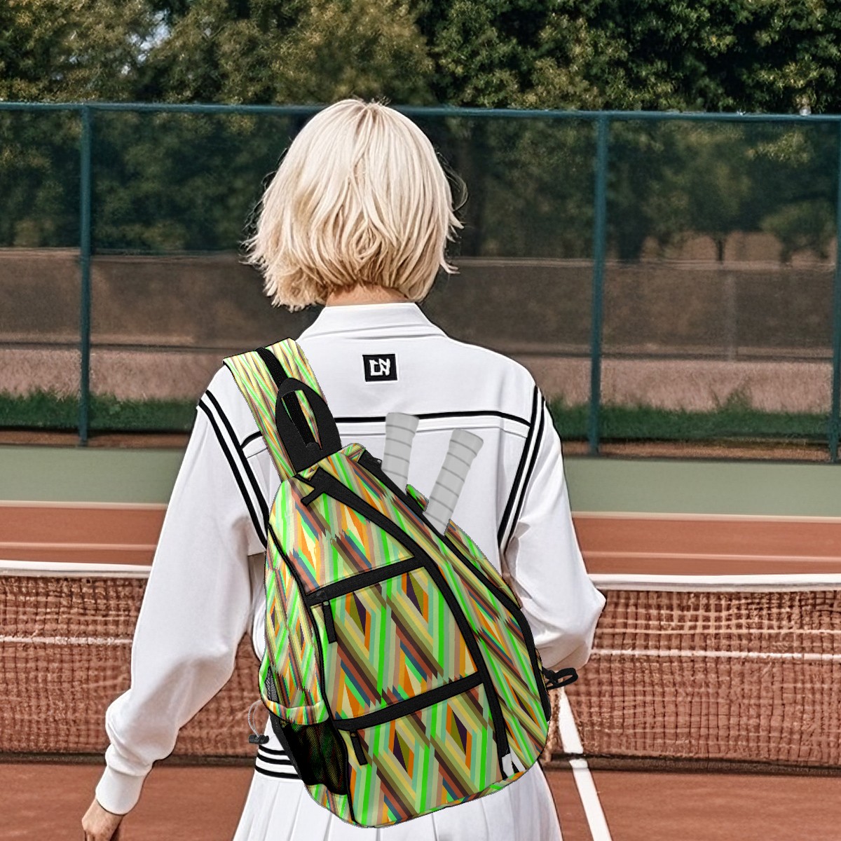 Multifunctional Pickleball Bag,Large Capacity Sports Pickleball Racket Bag, Water Bottle Holder and Fence Hook,Suitable for Both Men Women -Retro Geometric Pattern