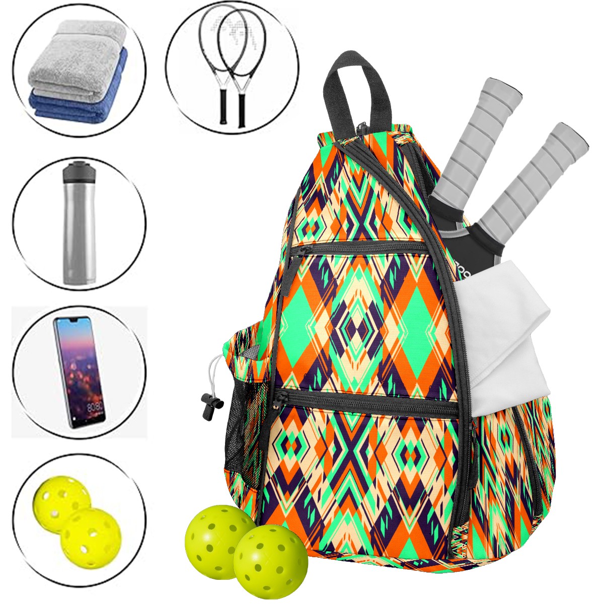 Multifunctional Pickleball Bag,Large Capacity Sports Pickleball Racket Bag, Water Bottle Holder and Fence Hook,Suitable for Both Men Women -Kaleidoscope Pattern