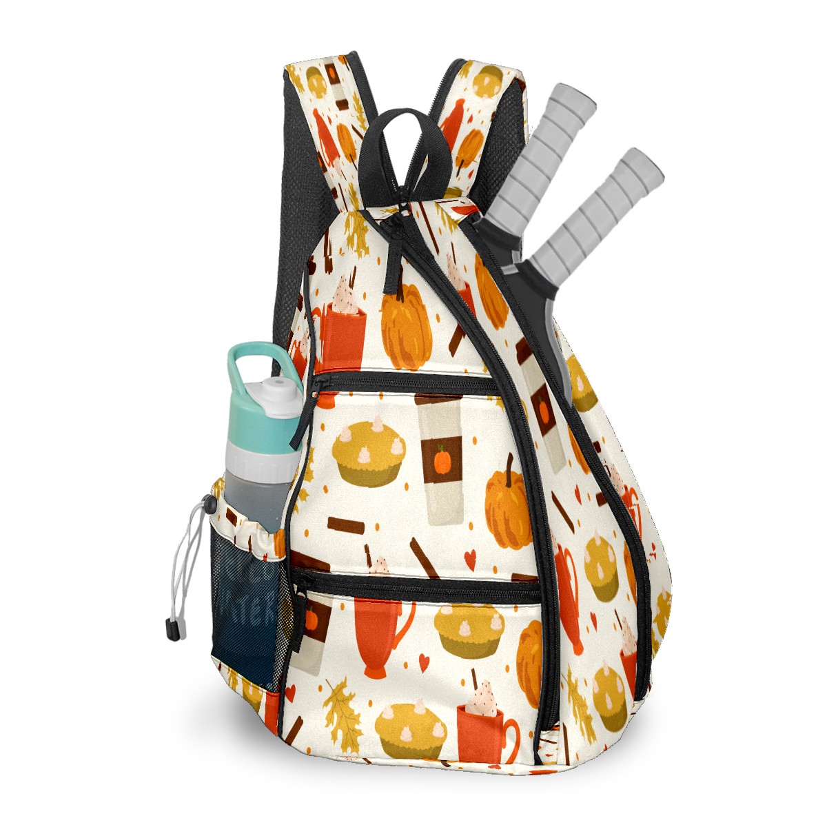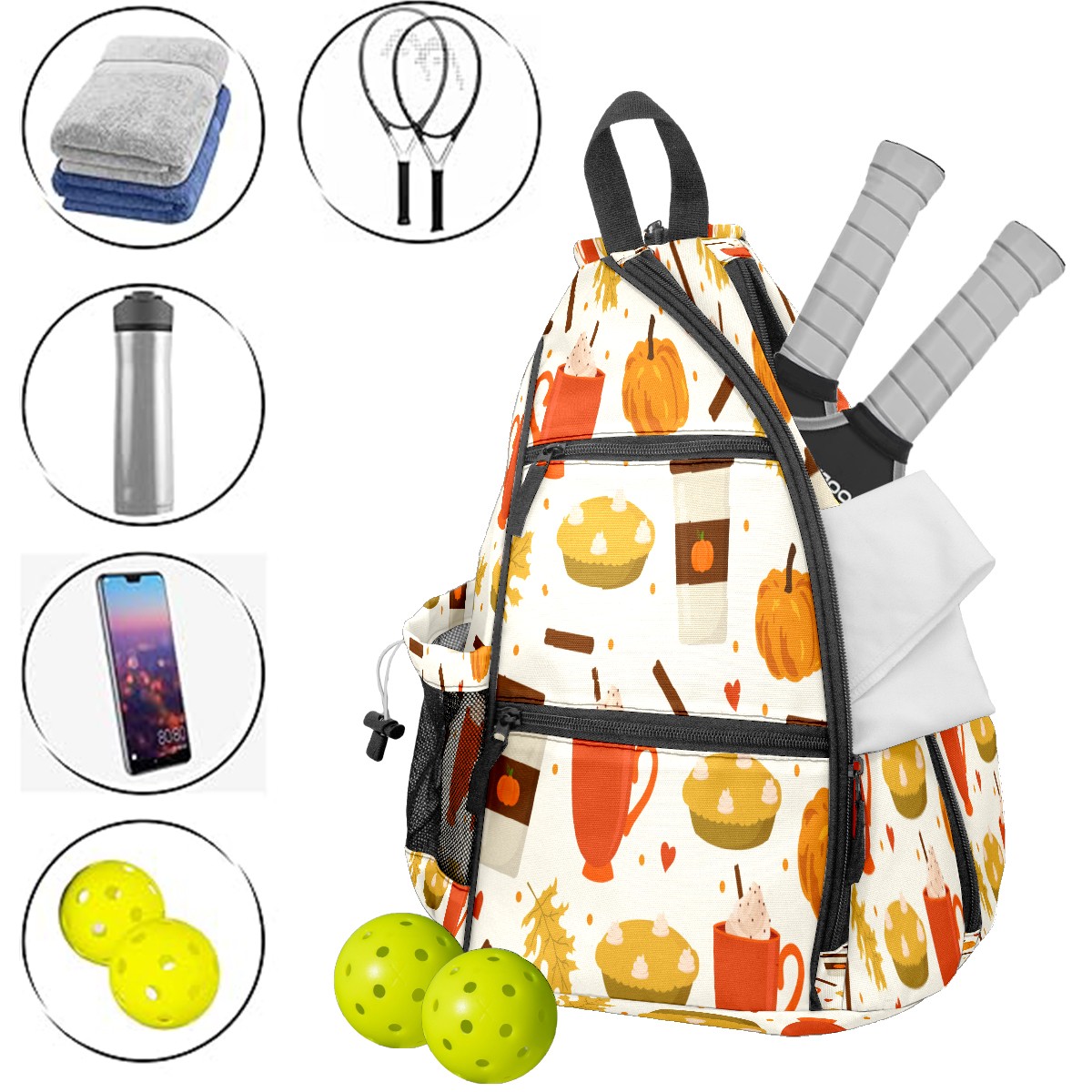 Multifunctional Pickleball Bag,Large Capacity Sports Pickleball Racket Bag, Water Bottle Holder and Fence Hook,Suitable for Both Men Women -Pumpkin Spice