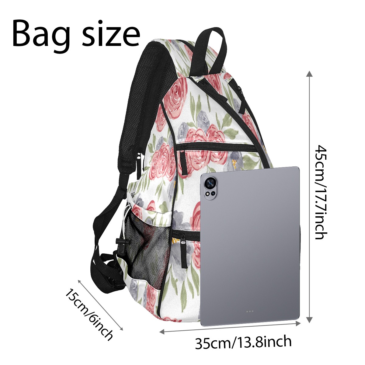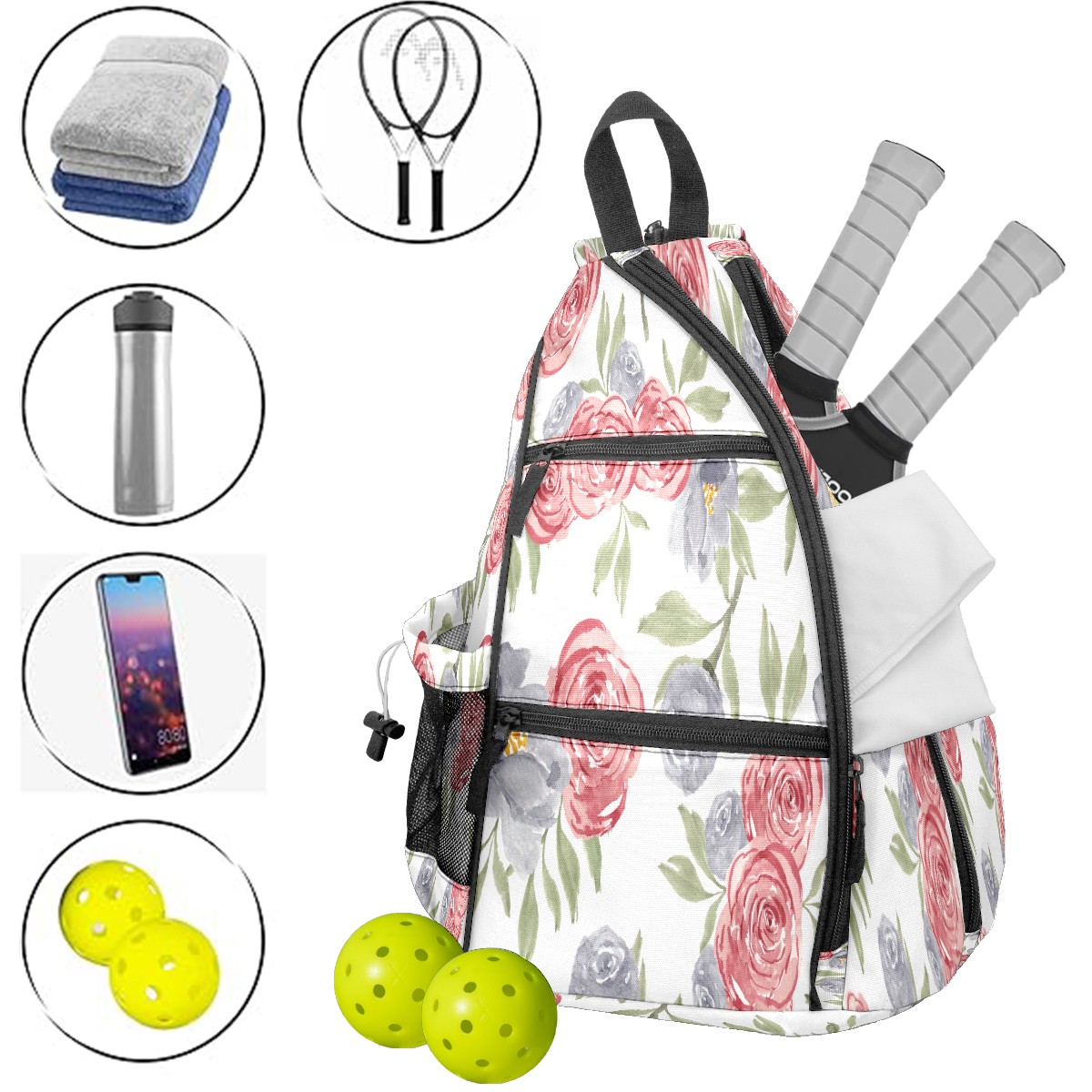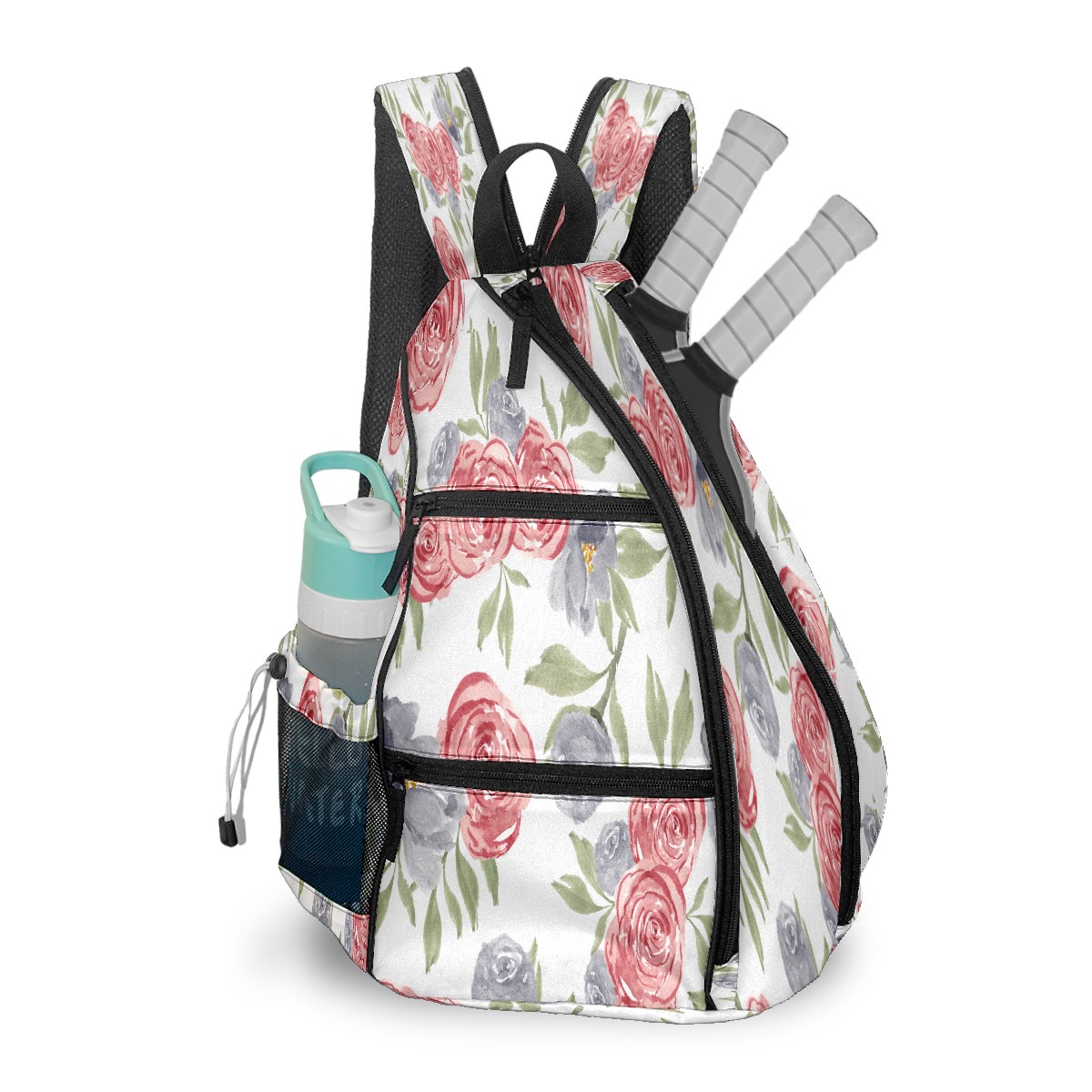 Multifunctional Pickleball Bag,Large Capacity Sports Pickleball Racket Bag, Water Bottle Holder and Fence Hook,Suitable for Both Men Women -Watercolor Rose Peony Flower