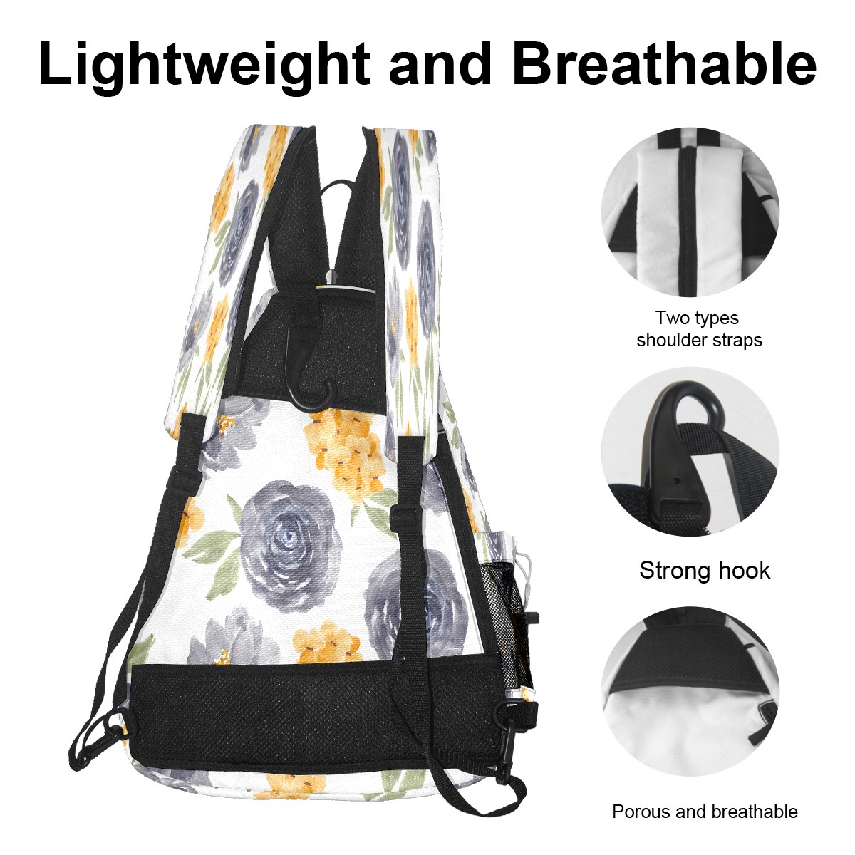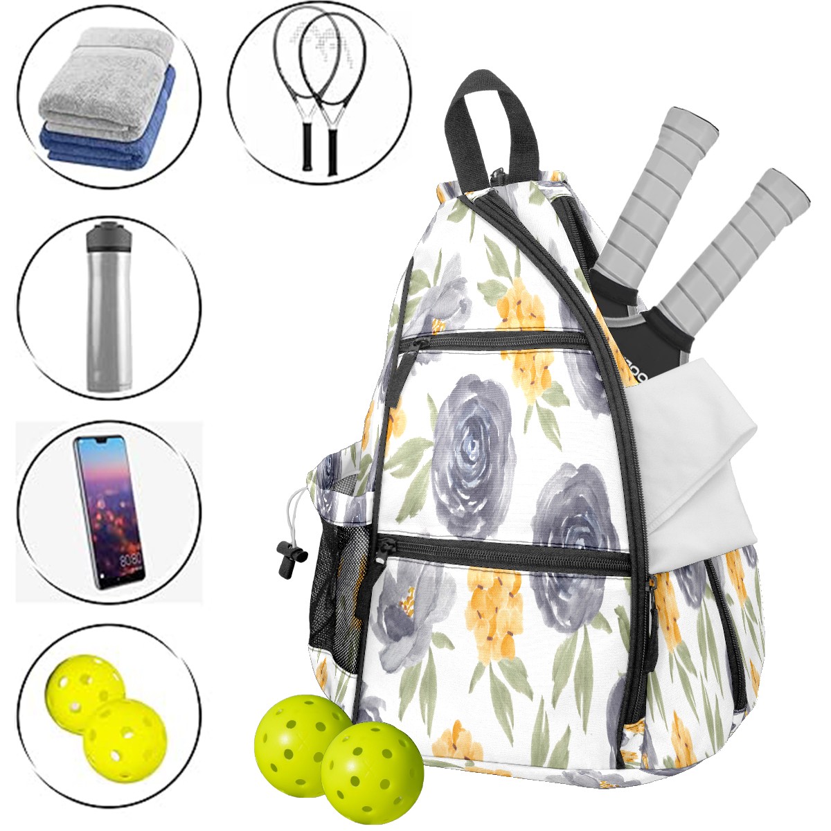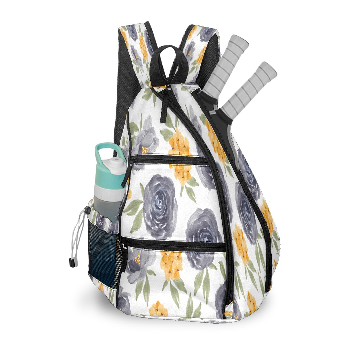 Multifunctional Pickleball Bag,Large Capacity Sports Pickleball Racket Bag, Water Bottle Holder and Fence Hook,Suitable for Both Men Women -Watercolor Purple Rose Floral