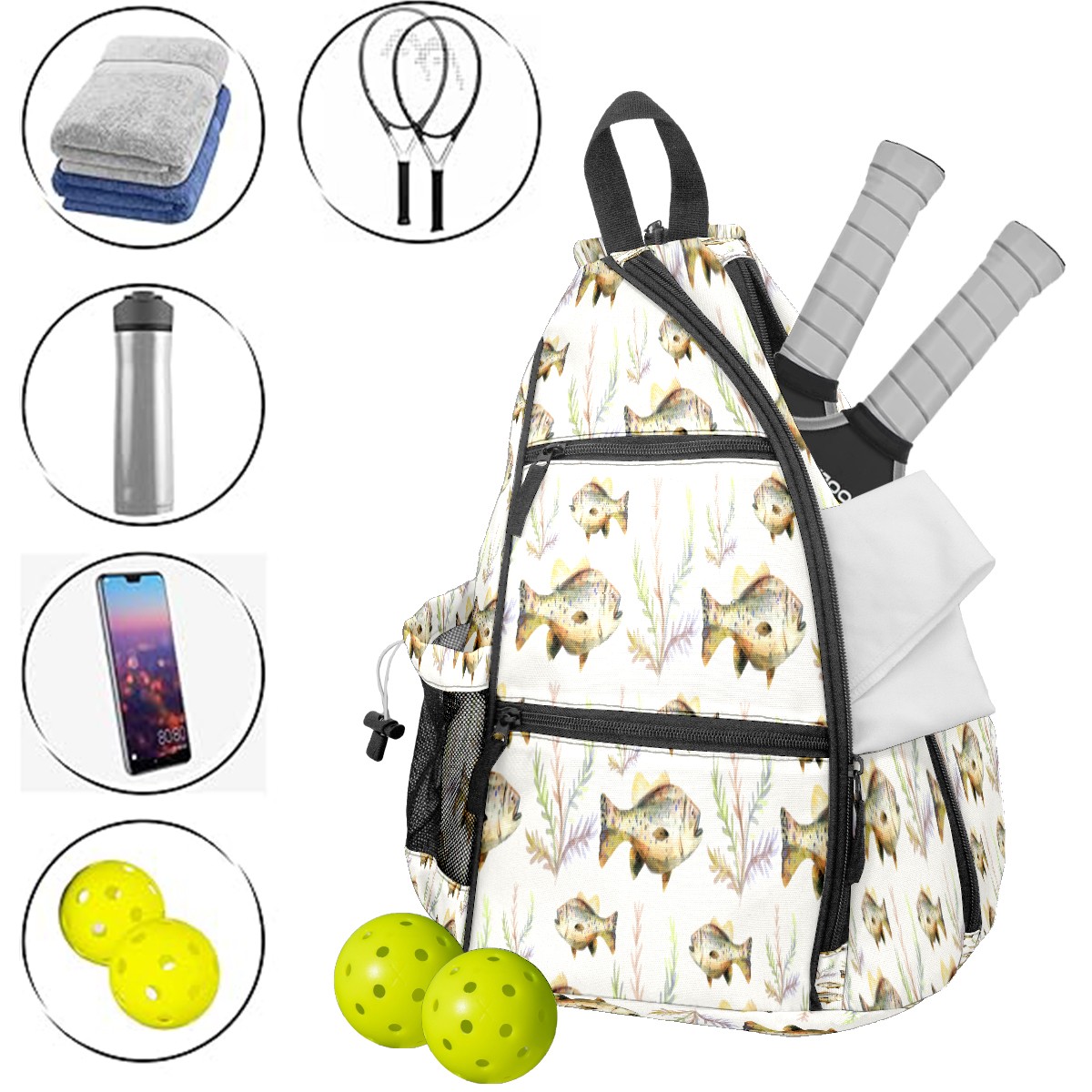 Multifunctional Pickleball Bag,Large Capacity Sports Pickleball Racket Bag, Water Bottle Holder and Fence Hook,Suitable for Both Men Women -School Of Fish And Coral
