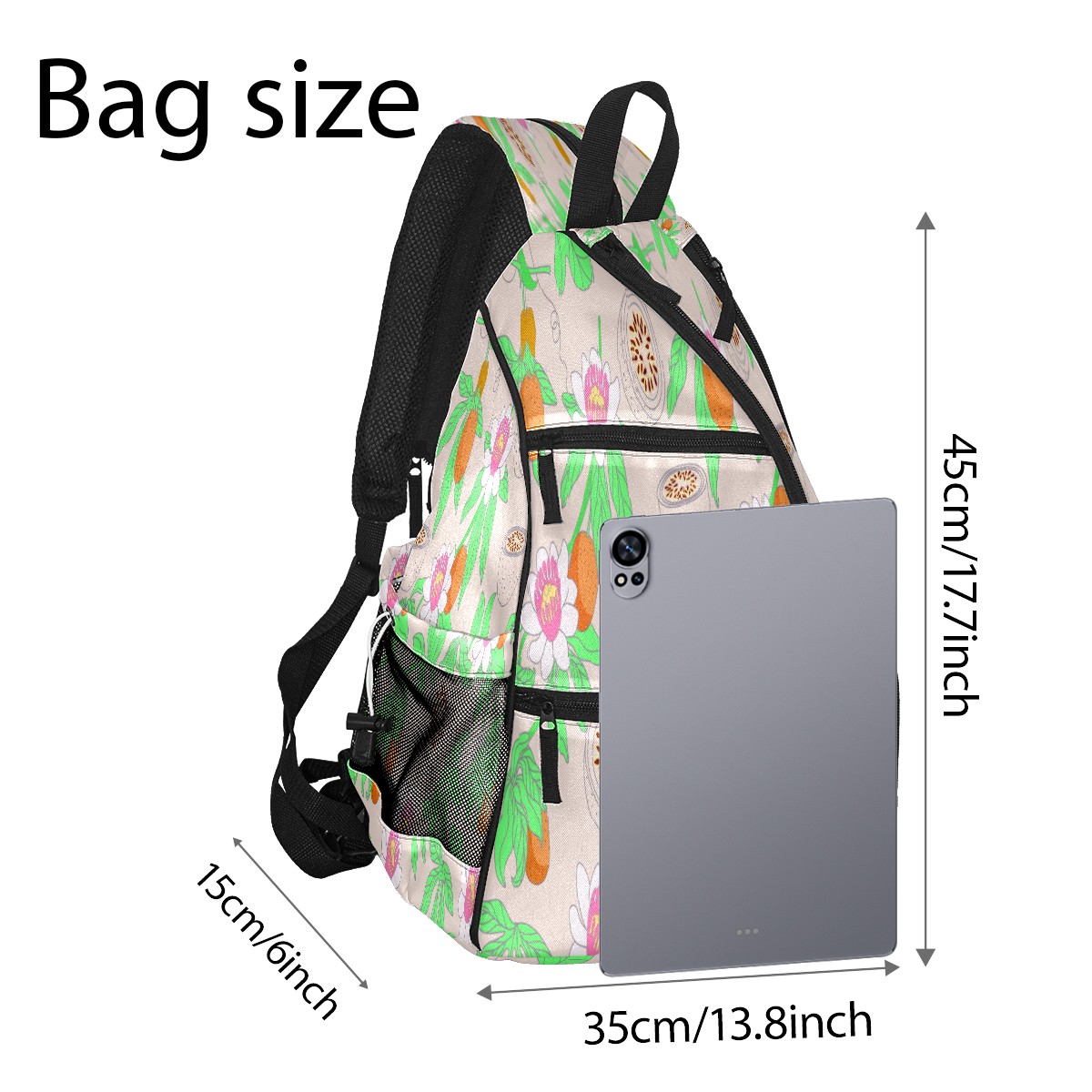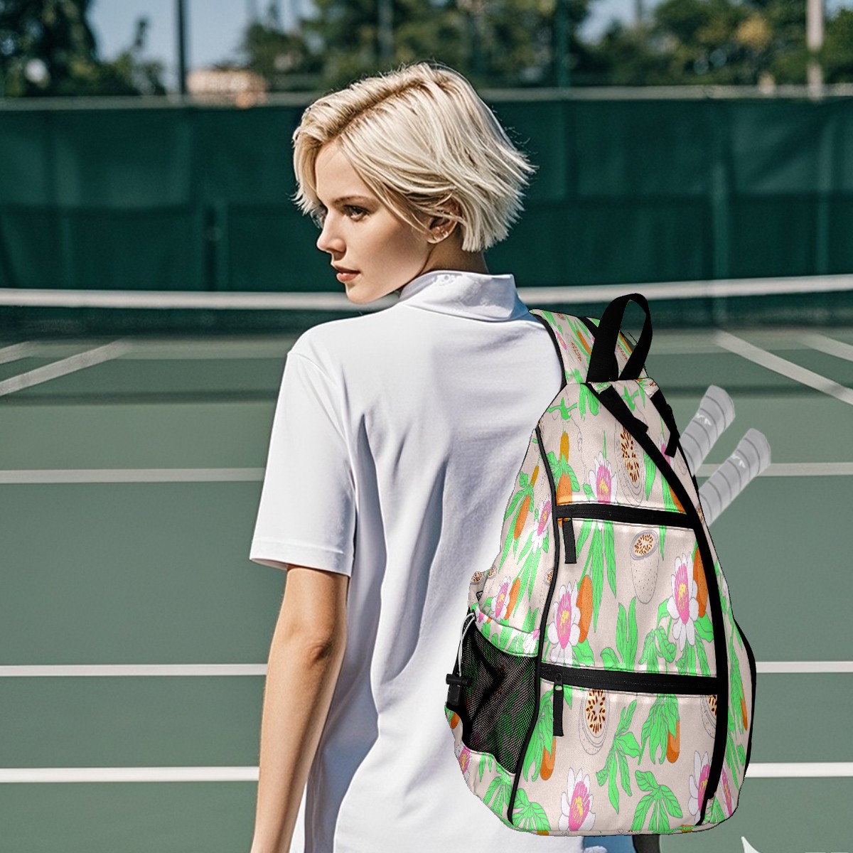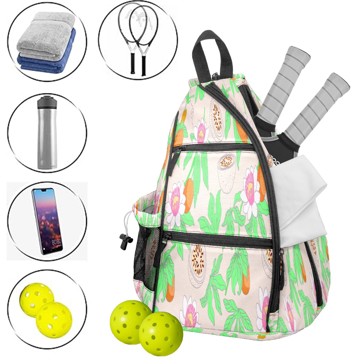 Multifunctional Pickleball Bag,Large Capacity Sports Pickleball Racket Bag, Water Bottle Holder and Fence Hook,Suitable for Both Men Women -Passion Fruit Pattern