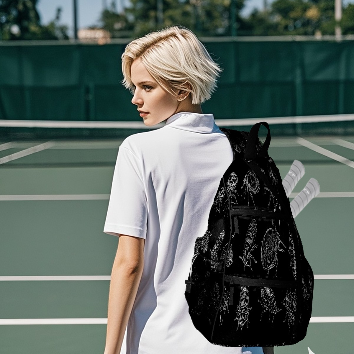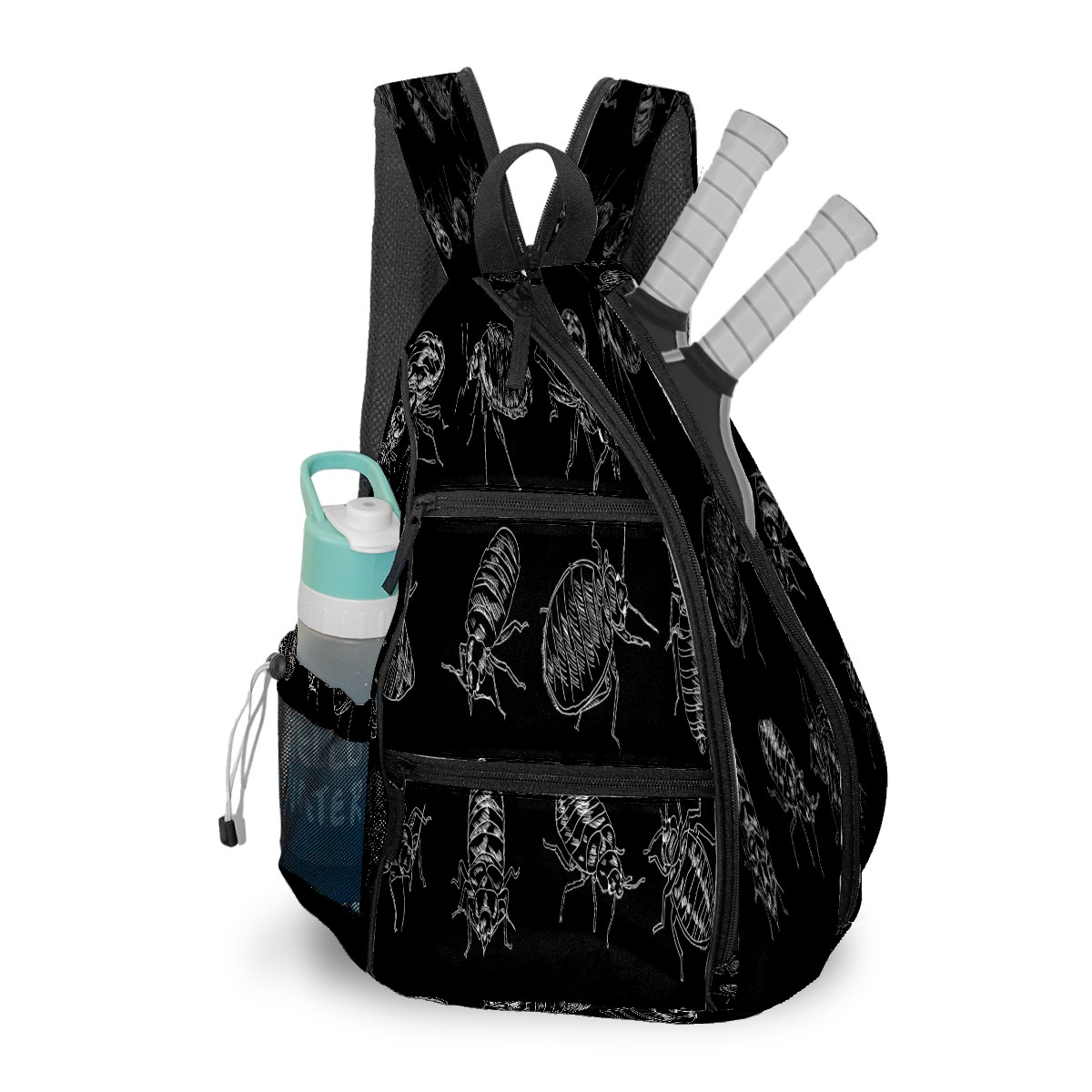 Multifunctional Pickleball Bag,Large Capacity Sports Pickleball Racket Bag, Water Bottle Holder and Fence Hook,Suitable for Both Men Women -Line Drawing Bed Bug