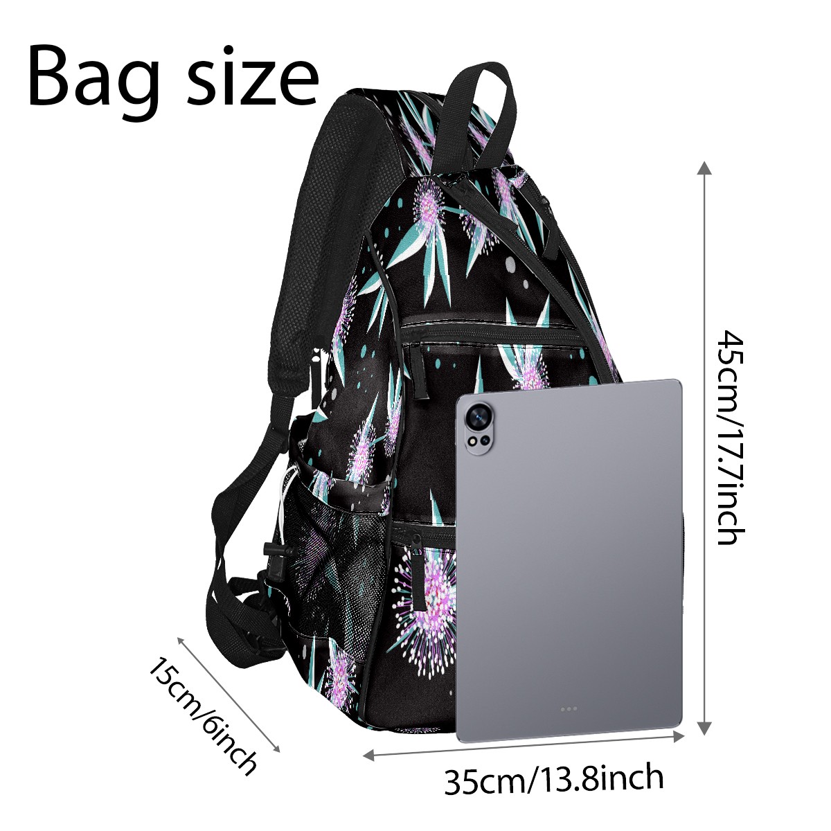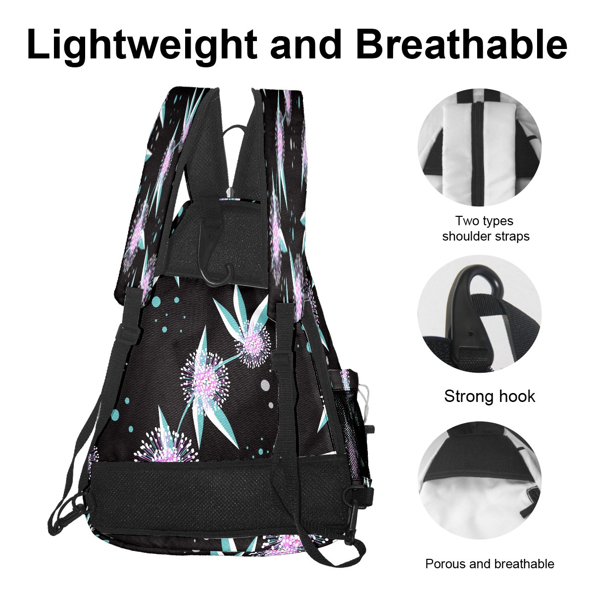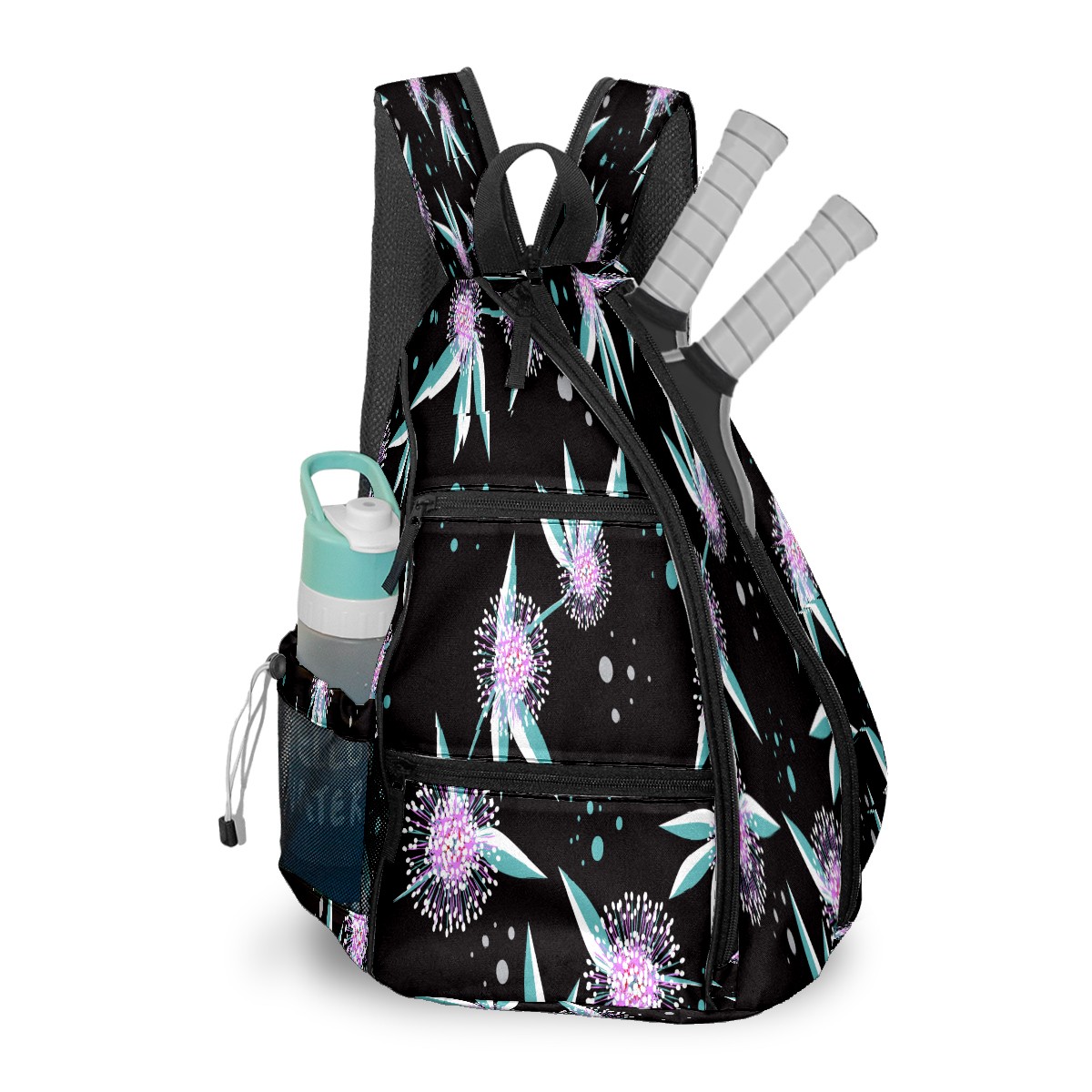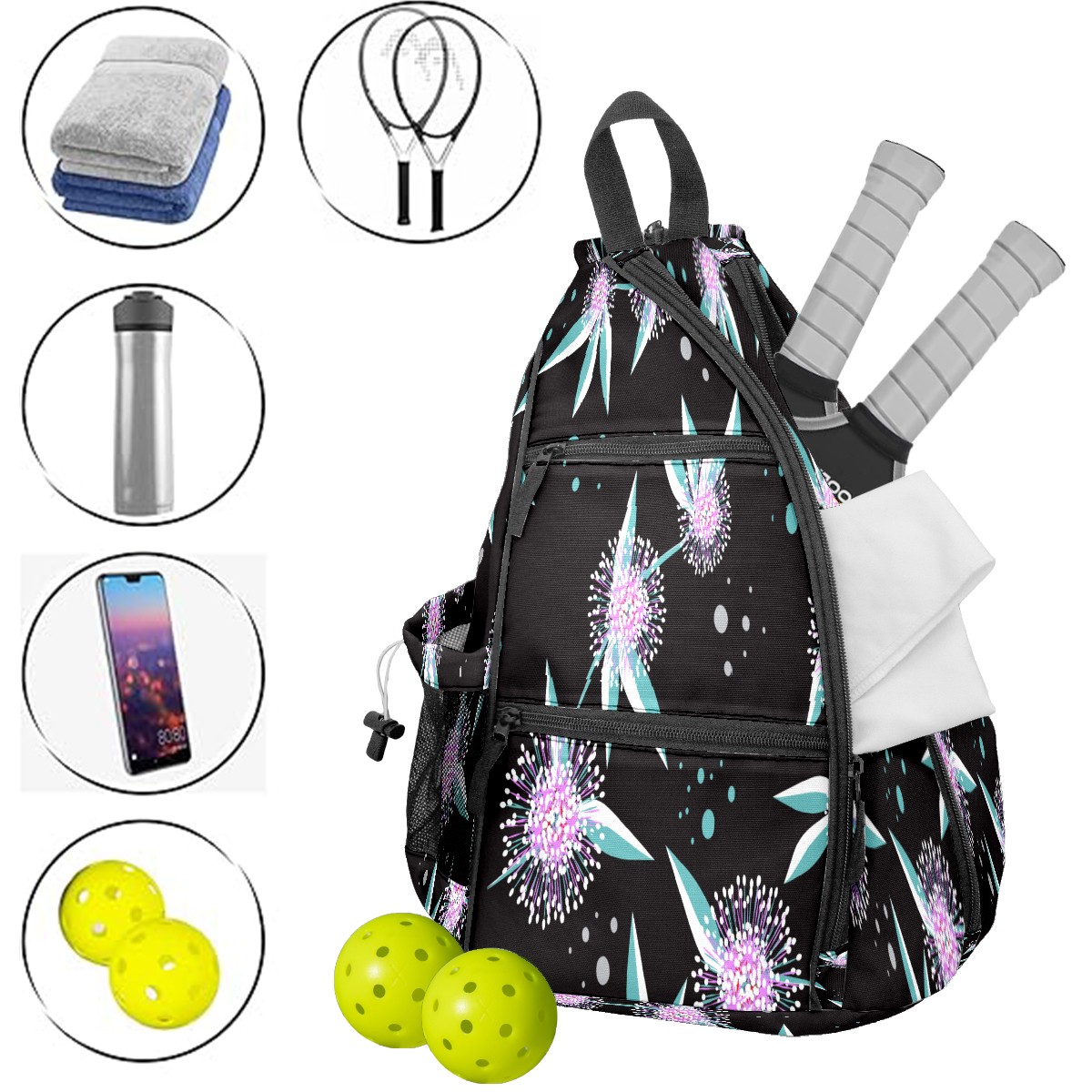 Multifunctional Pickleball Bag,Large Capacity Sports Pickleball Racket Bag, Water Bottle Holder and Fence Hook,Suitable for Both Men Women -Fresh Pink Floral Pattern