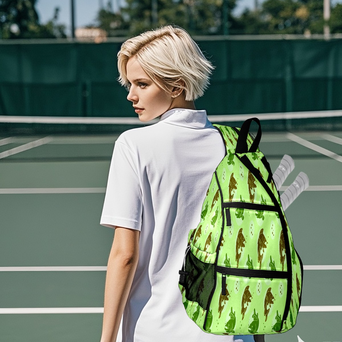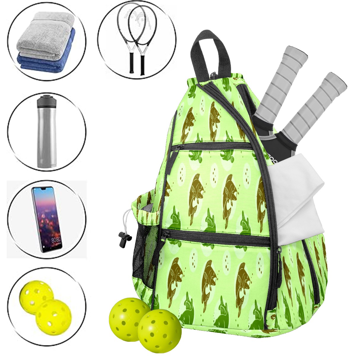 Multifunctional Pickleball Bag,Large Capacity Sports Pickleball Racket Bag, Water Bottle Holder and Fence Hook,Suitable for Both Men Women -Churning Fish