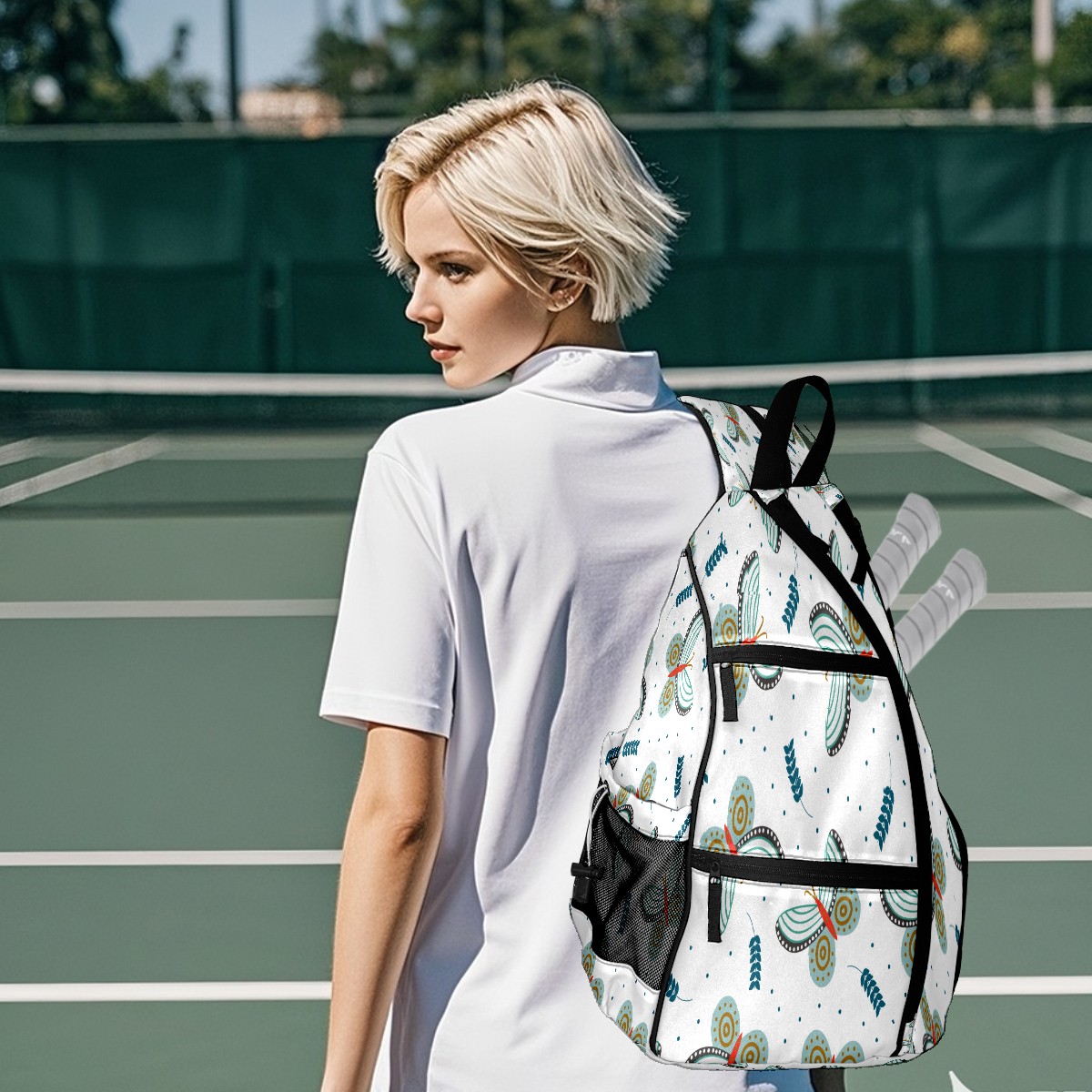Multifunctional Pickleball Bag,Large Capacity Sports Pickleball Racket Bag, Water Bottle Holder and Fence Hook,Suitable for Both Men Women -Butterflies And Leaves