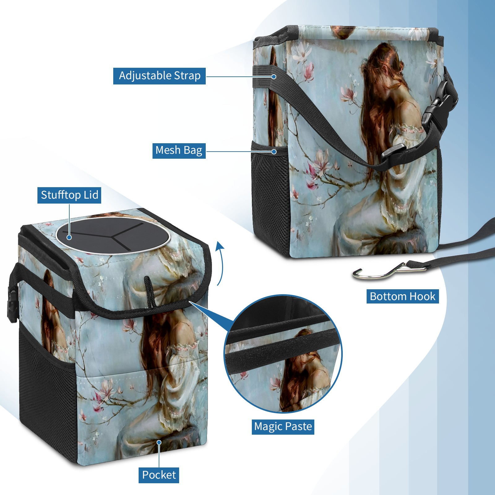 Car Garbage Can — Multi-functional, Lightweight Portable, Reusable Vehicle Trash Can, Waterproof with Sufficient Storage Capacity Retro Pinup Girls Pattern