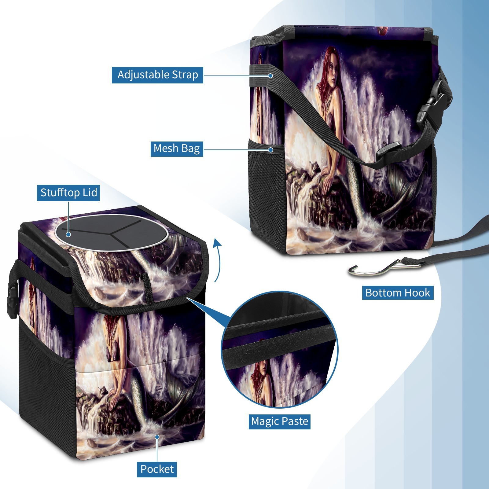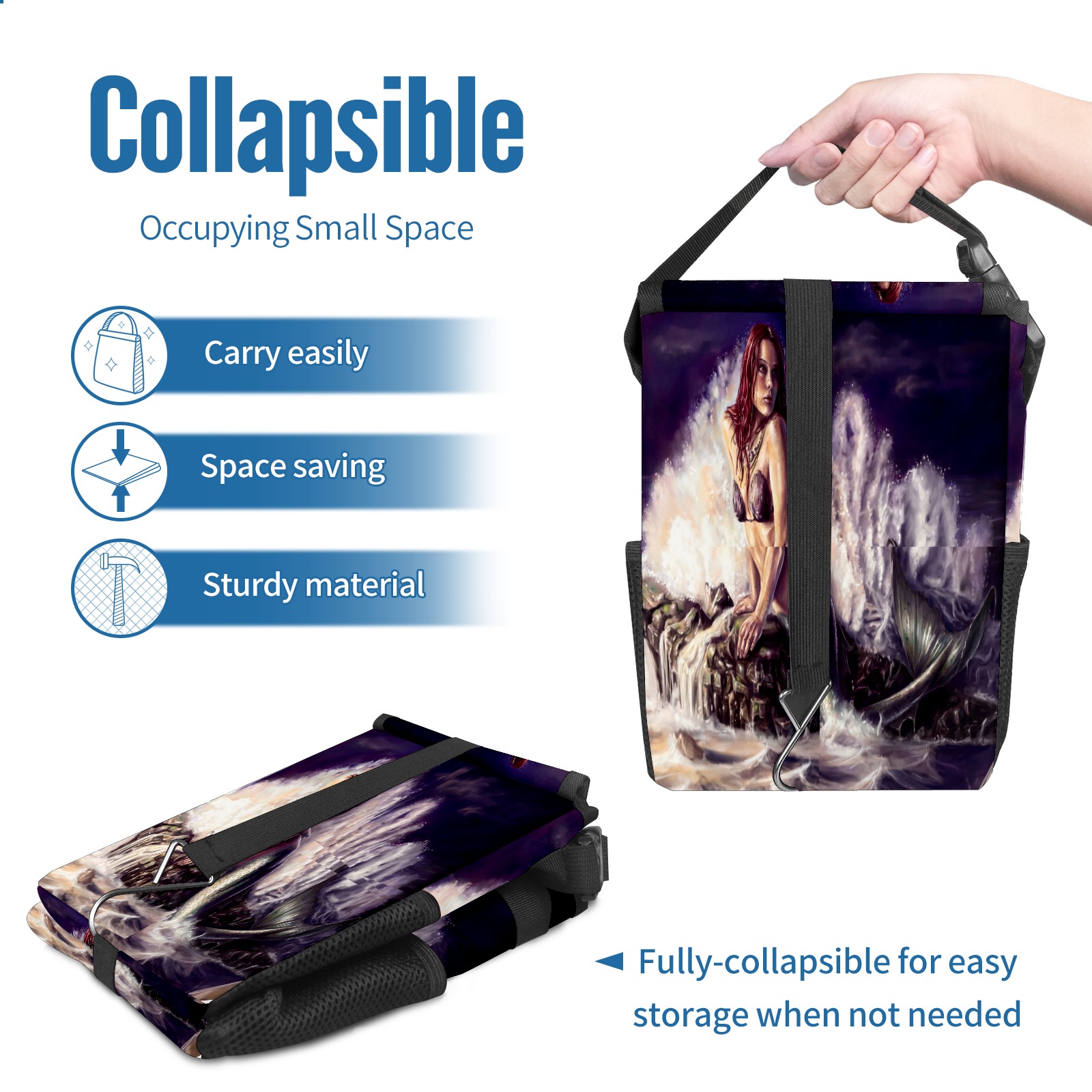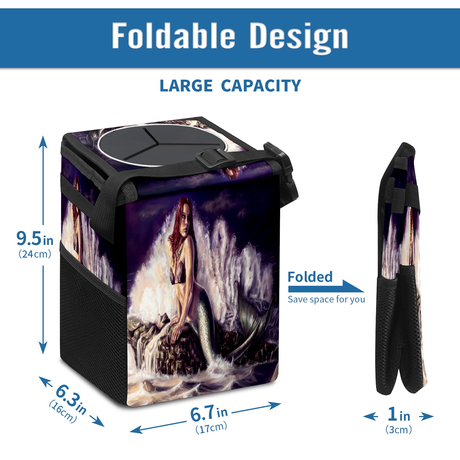 Car Garbage Can — Multi-functional, Lightweight Portable, Reusable Vehicle Trash Can, Waterproof with Sufficient Storage Capacity Mermaid Pattern