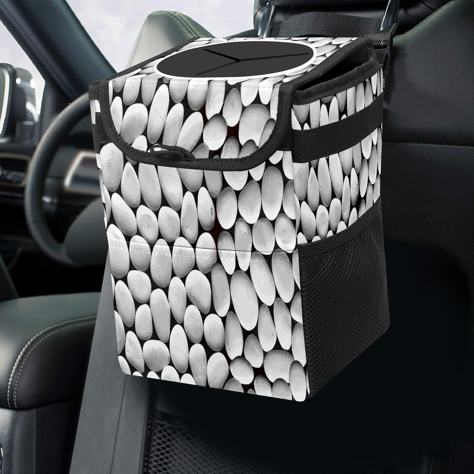 Car Garbage Can — Multi-functional, Lightweight Portable, Reusable Vehicle Trash Can, Waterproof with Sufficient Storage Capacity White Stones