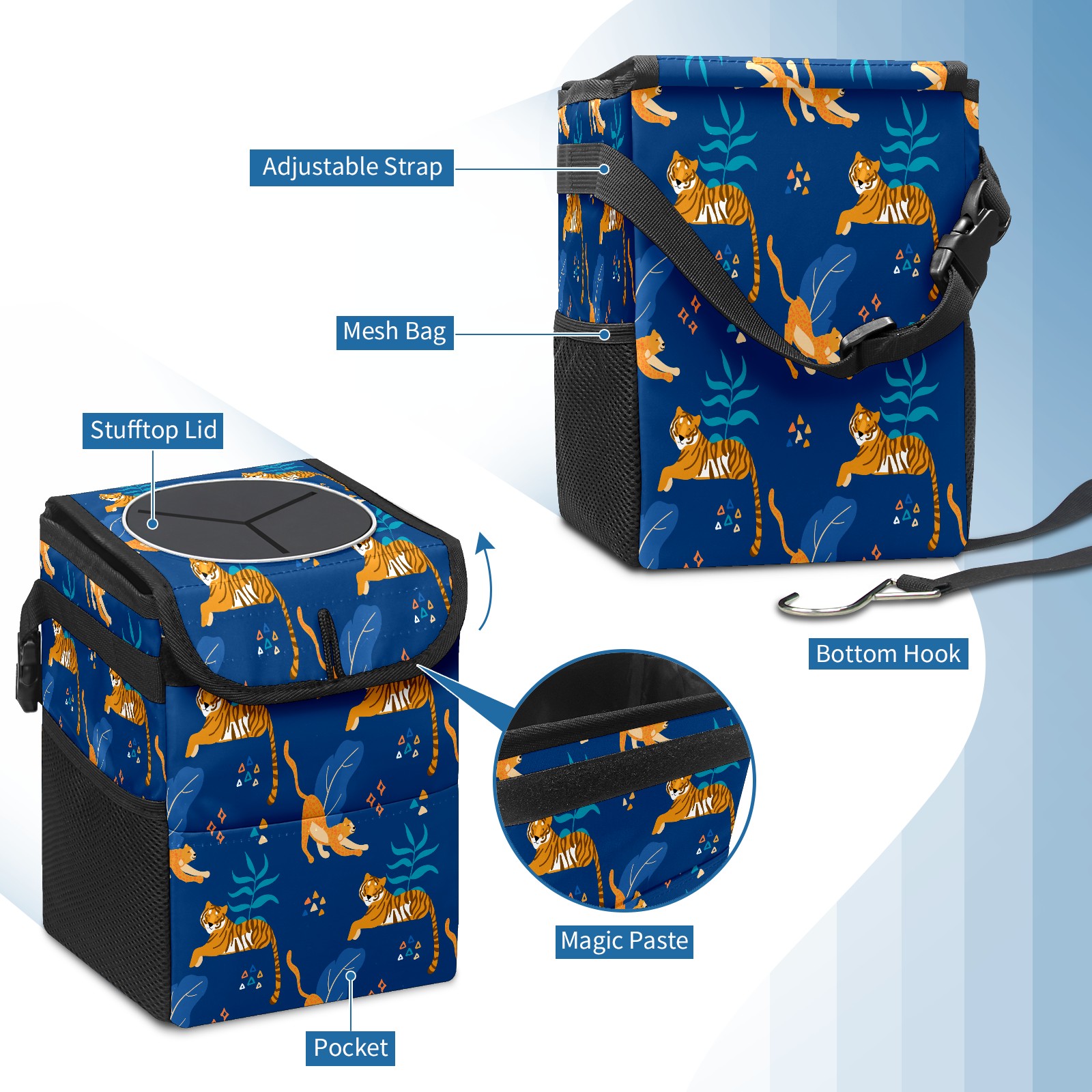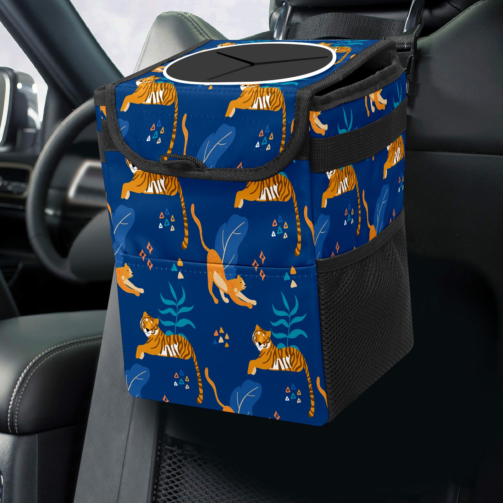Car Garbage Can — Multi-functional, Lightweight Portable, Reusable Vehicle Trash Can, Waterproof with Sufficient Storage Capacity Tigers And Cheetahs Wild Cats