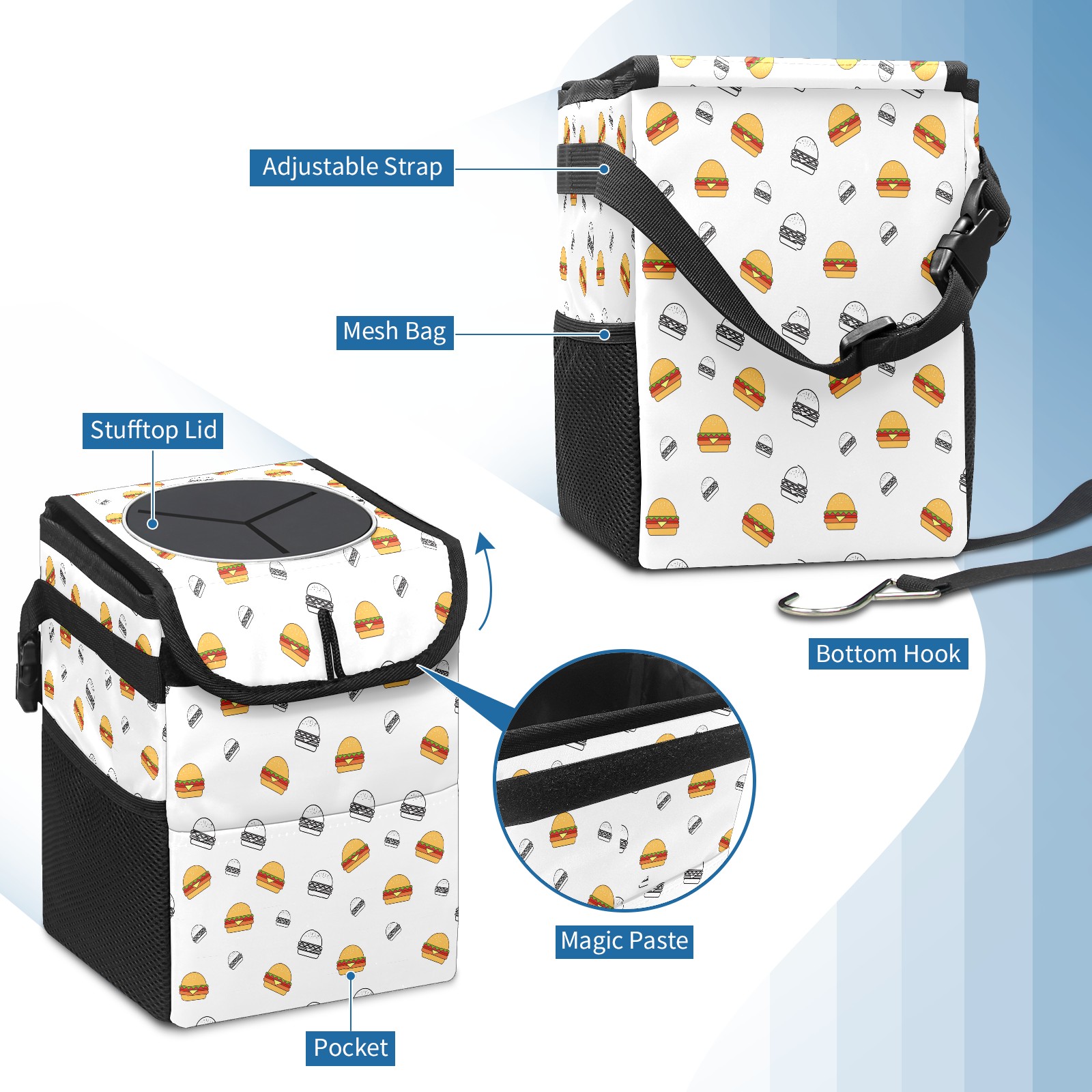 Car Garbage Can — Multi-functional, Lightweight Portable, Reusable Vehicle Trash Can, Waterproof with Sufficient Storage Capacity Tasty Cheeseburger