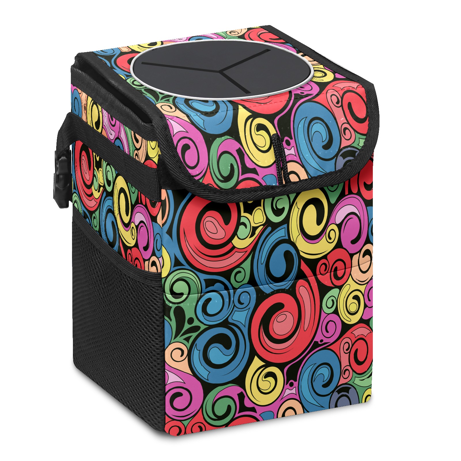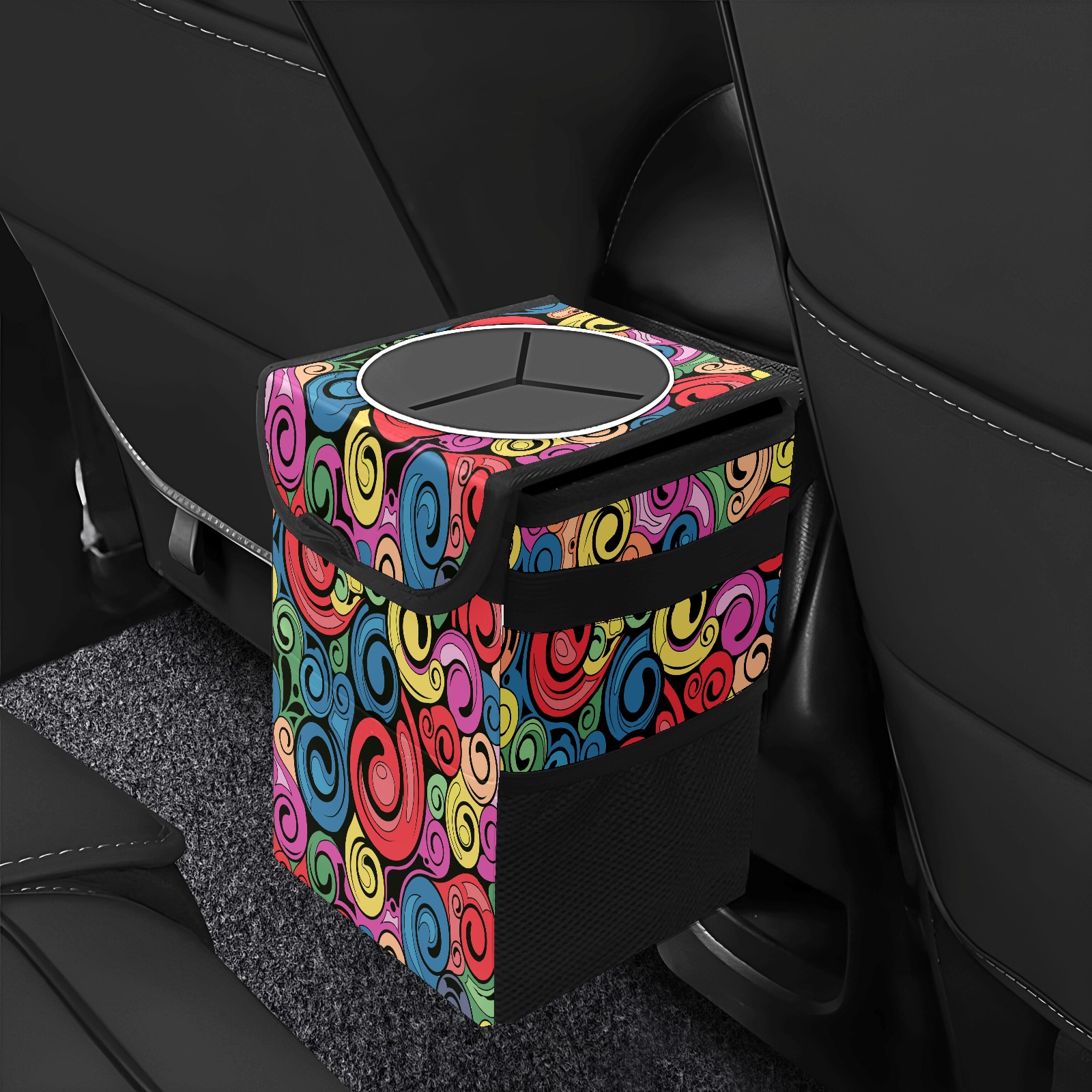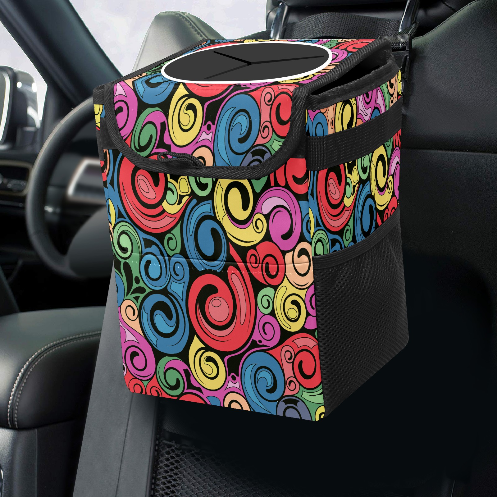 Car Garbage Can — Multi-functional, Lightweight Portable, Reusable Vehicle Trash Can, Waterproof with Sufficient Storage Capacity Swirl Retro Art Pattern