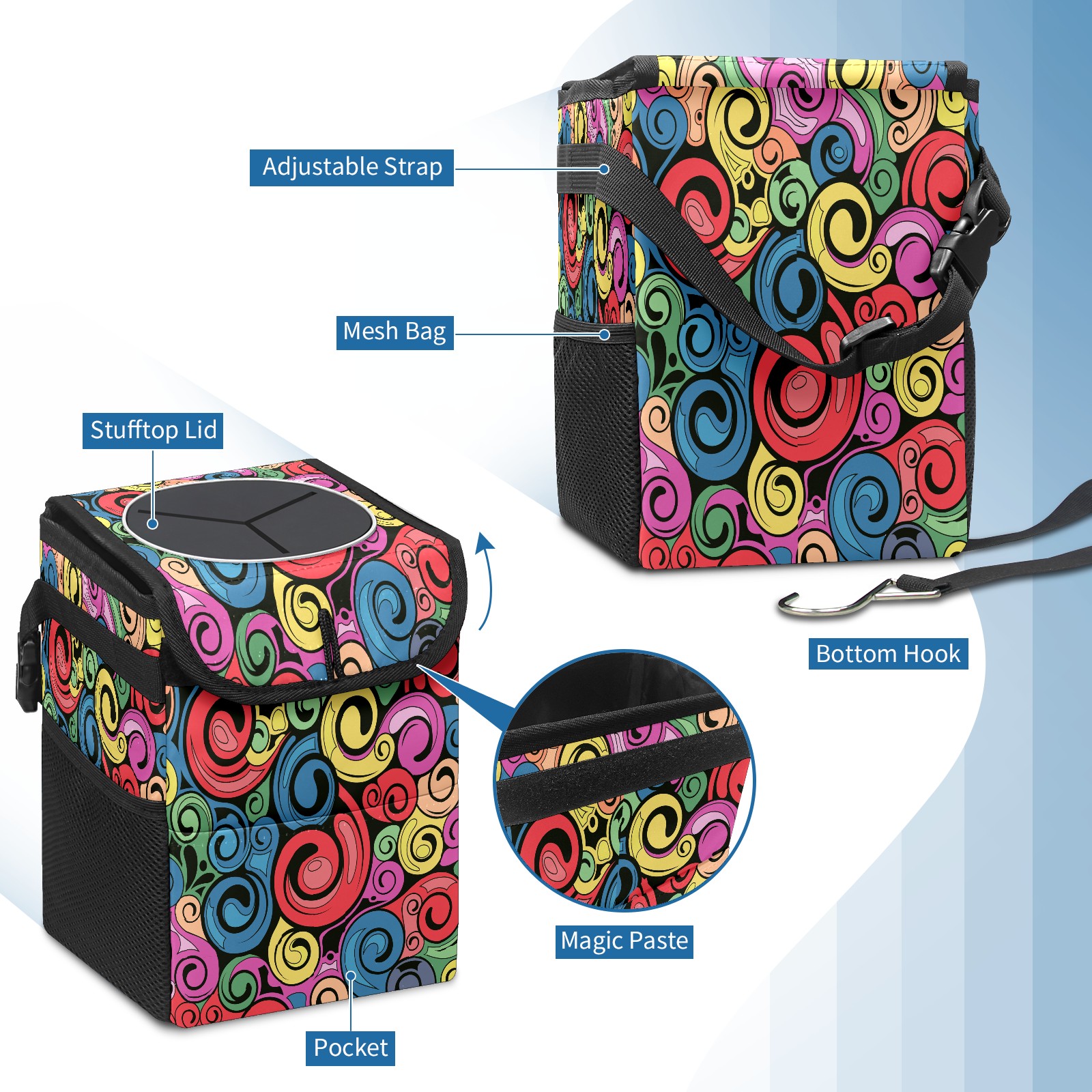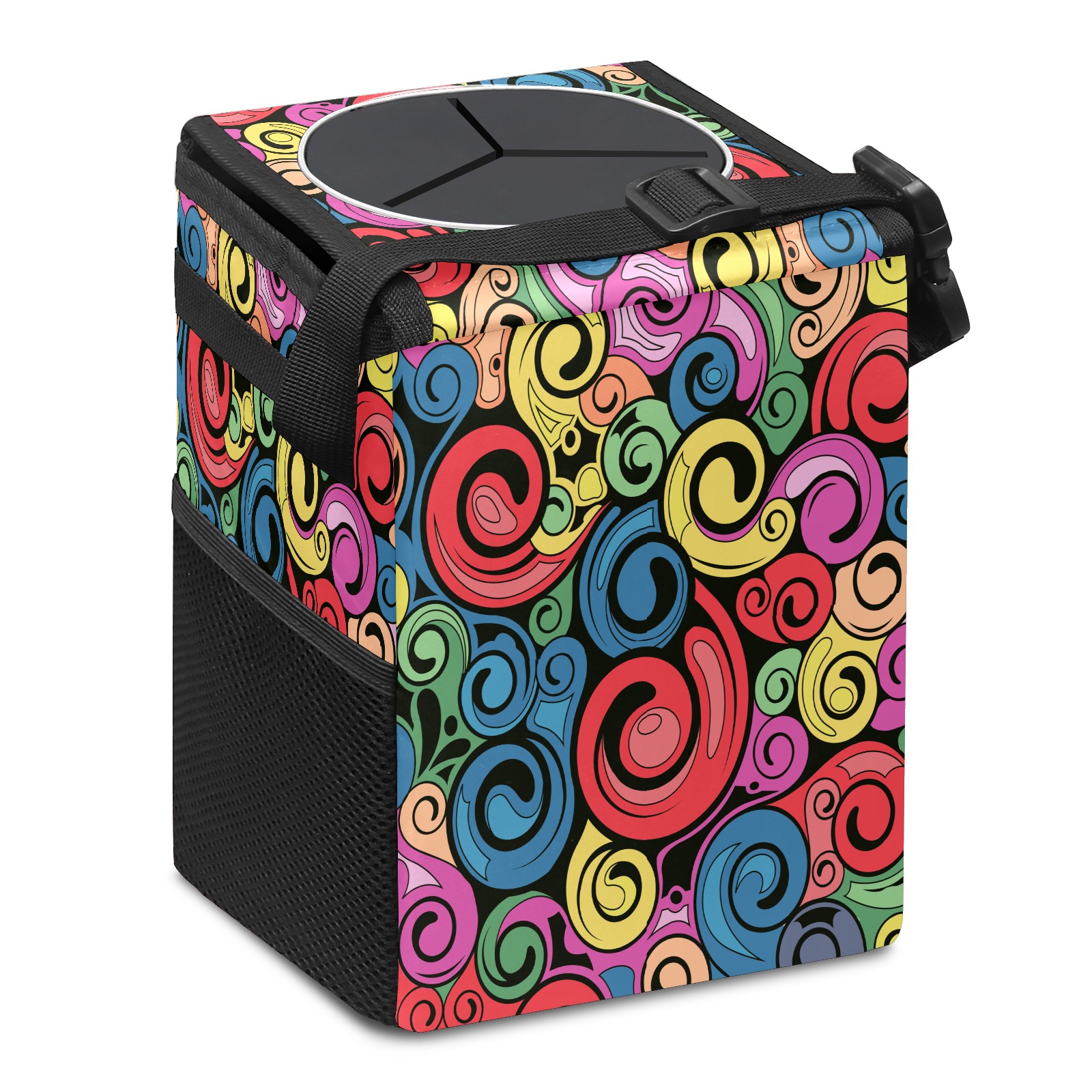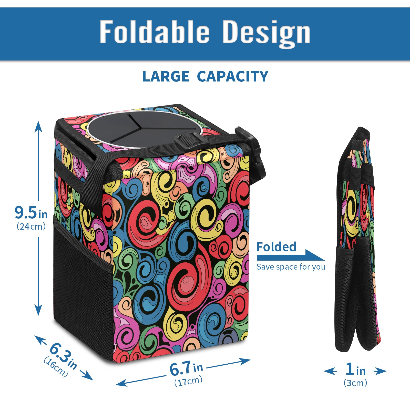 Car Garbage Can — Multi-functional, Lightweight Portable, Reusable Vehicle Trash Can, Waterproof with Sufficient Storage Capacity Swirl Retro Art Pattern