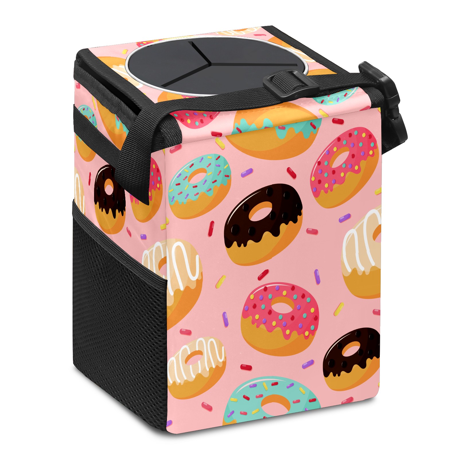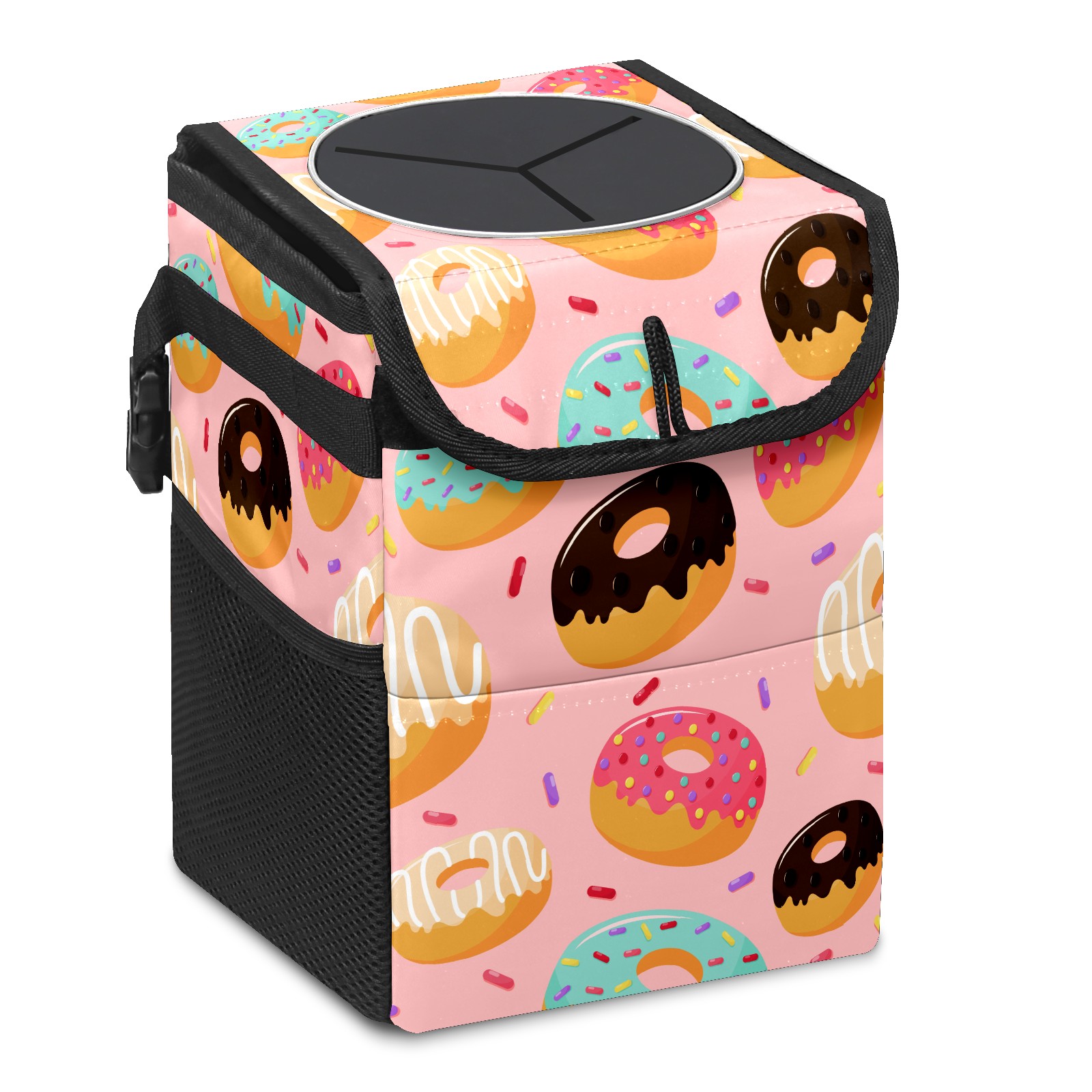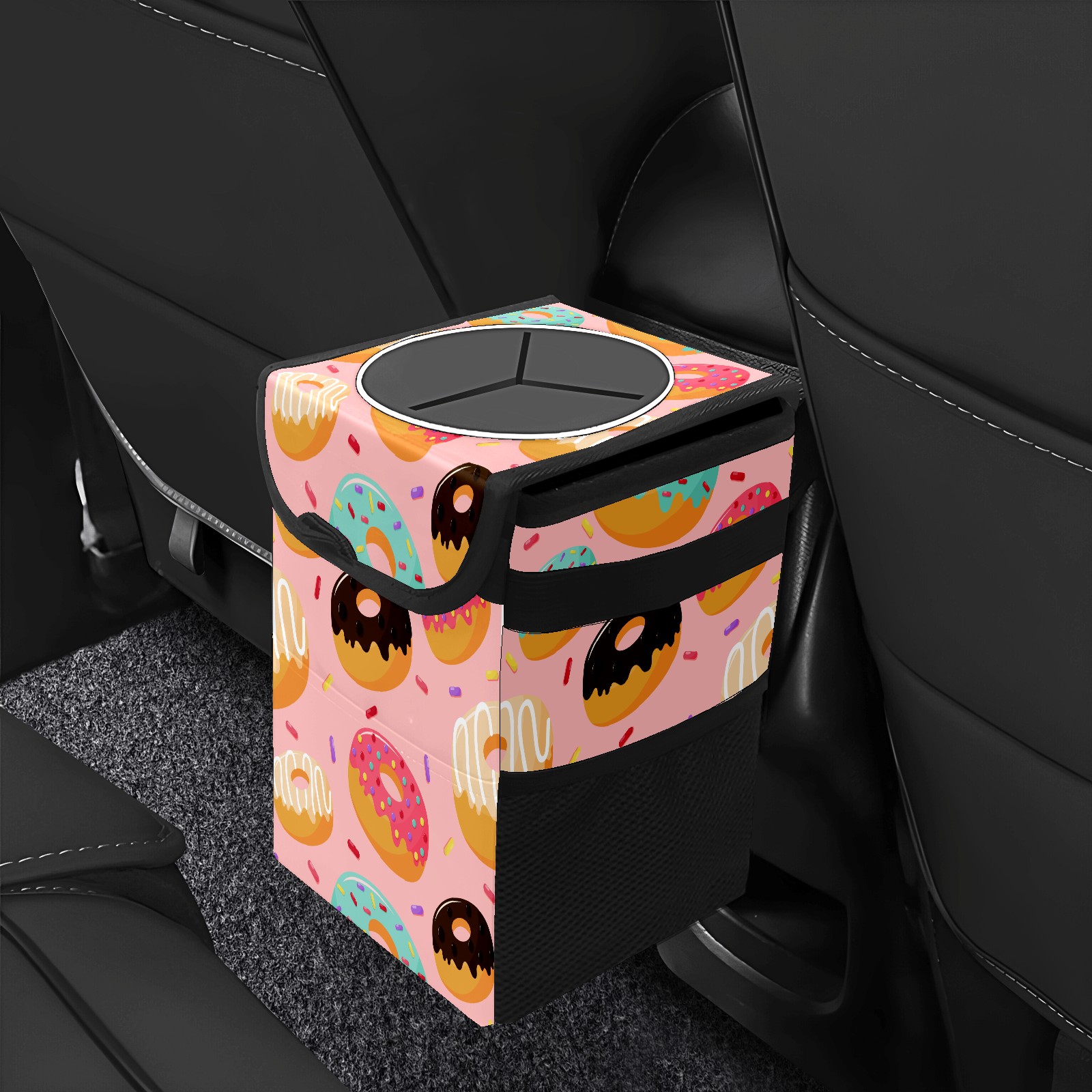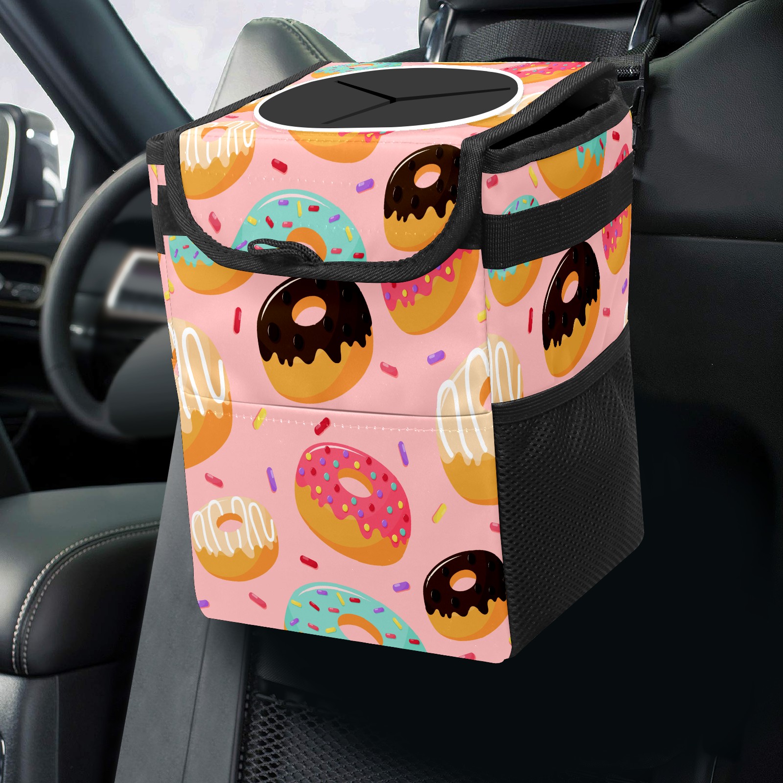 Car Garbage Can — Multi-functional, Lightweight Portable, Reusable Vehicle Trash Can, Waterproof with Sufficient Storage Capacity Sweet Donuts Pink Background