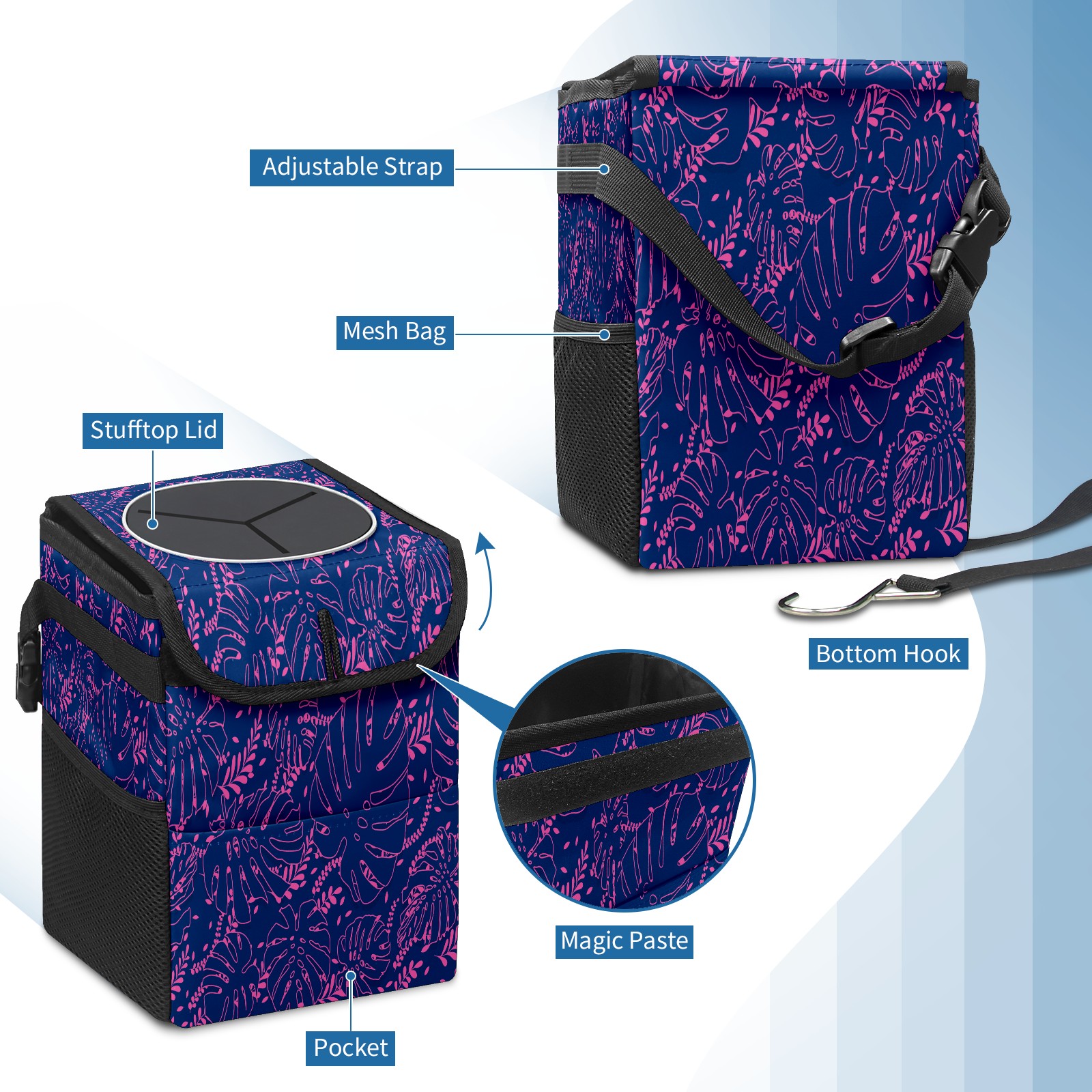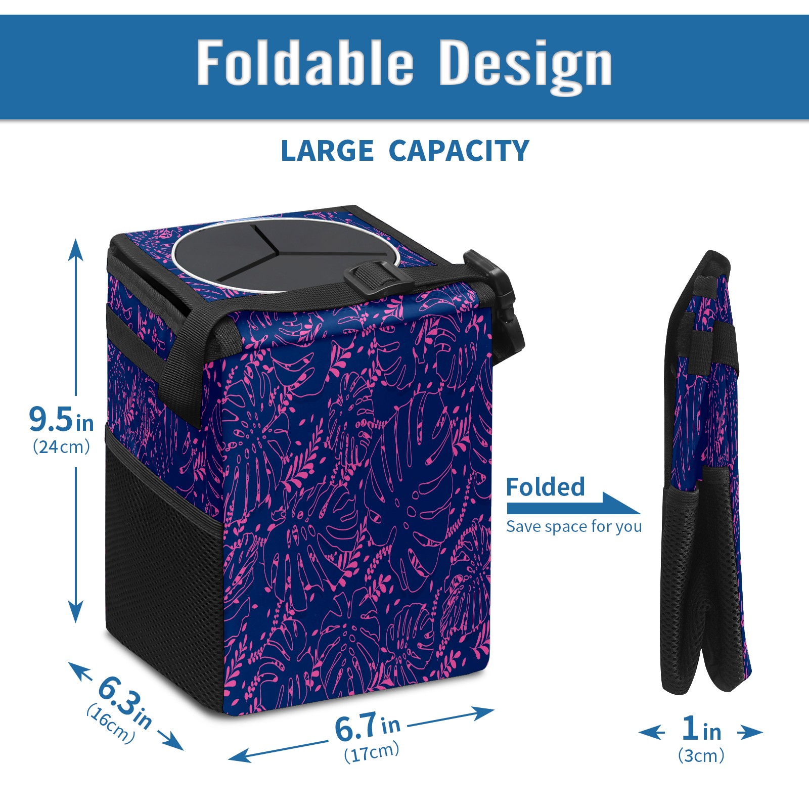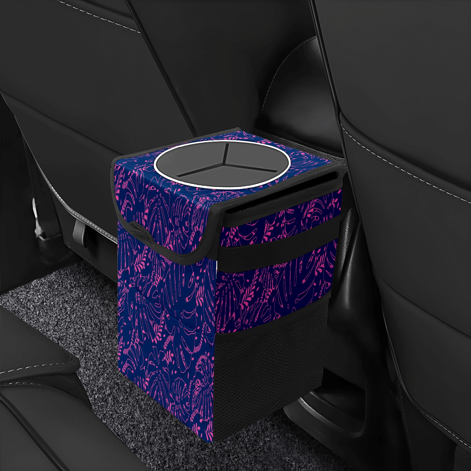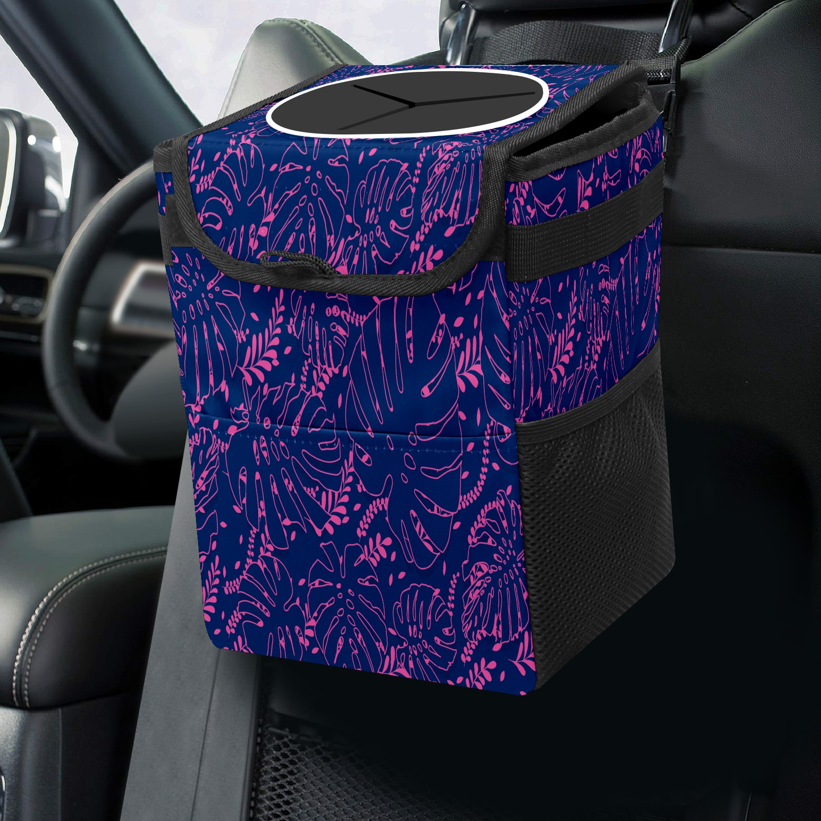 Car Garbage Can — Multi-functional, Lightweight Portable, Reusable Vehicle Trash Can, Waterproof with Sufficient Storage Capacity Pink Stroke Leaves