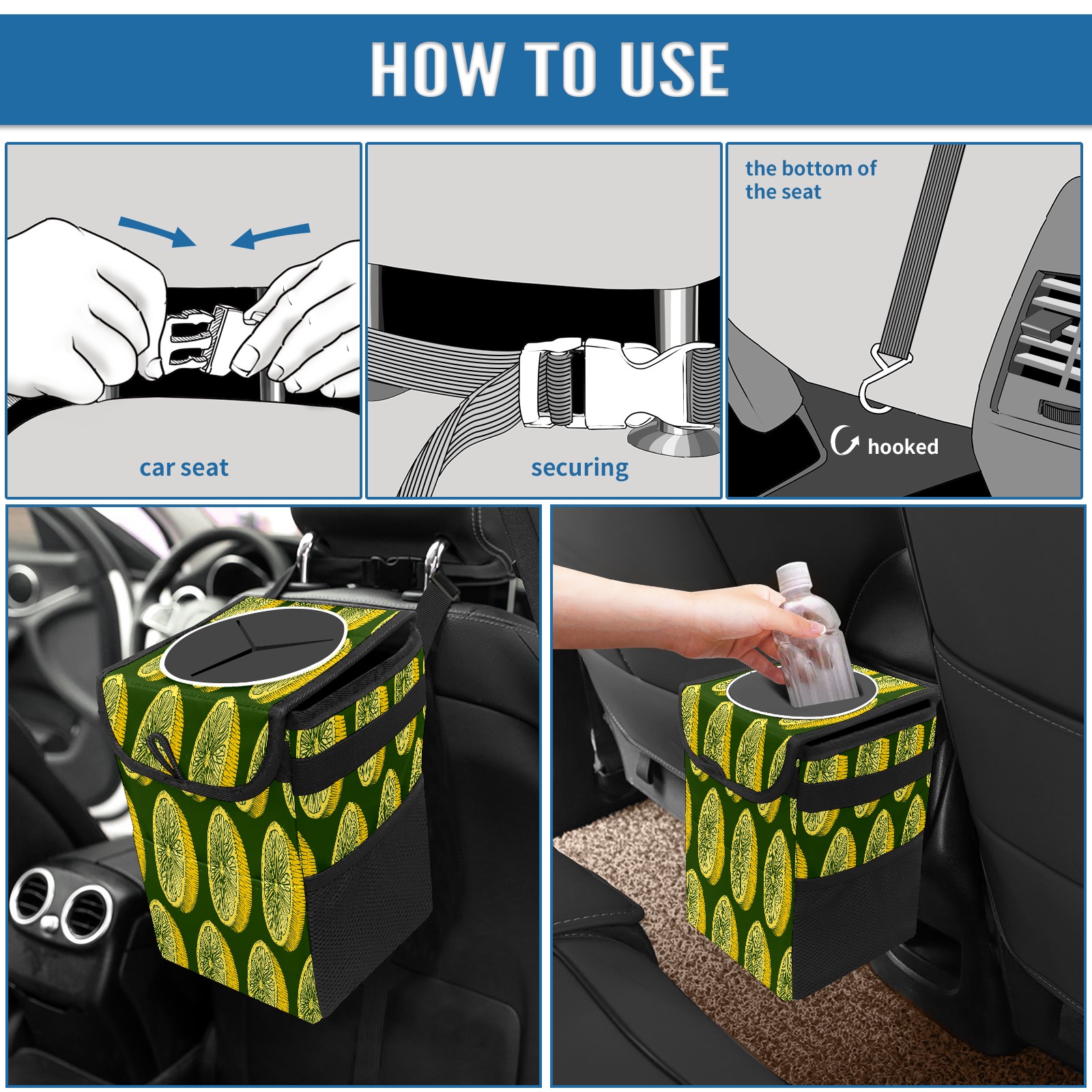 Car Garbage Can — Multi-functional, Lightweight Portable, Reusable Vehicle Trash Can, Waterproof with Sufficient Storage Capacity Retro Lemon