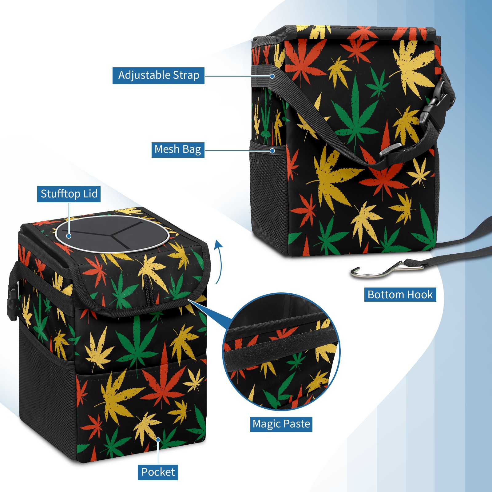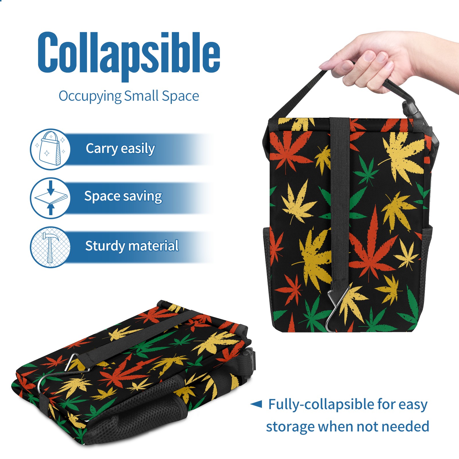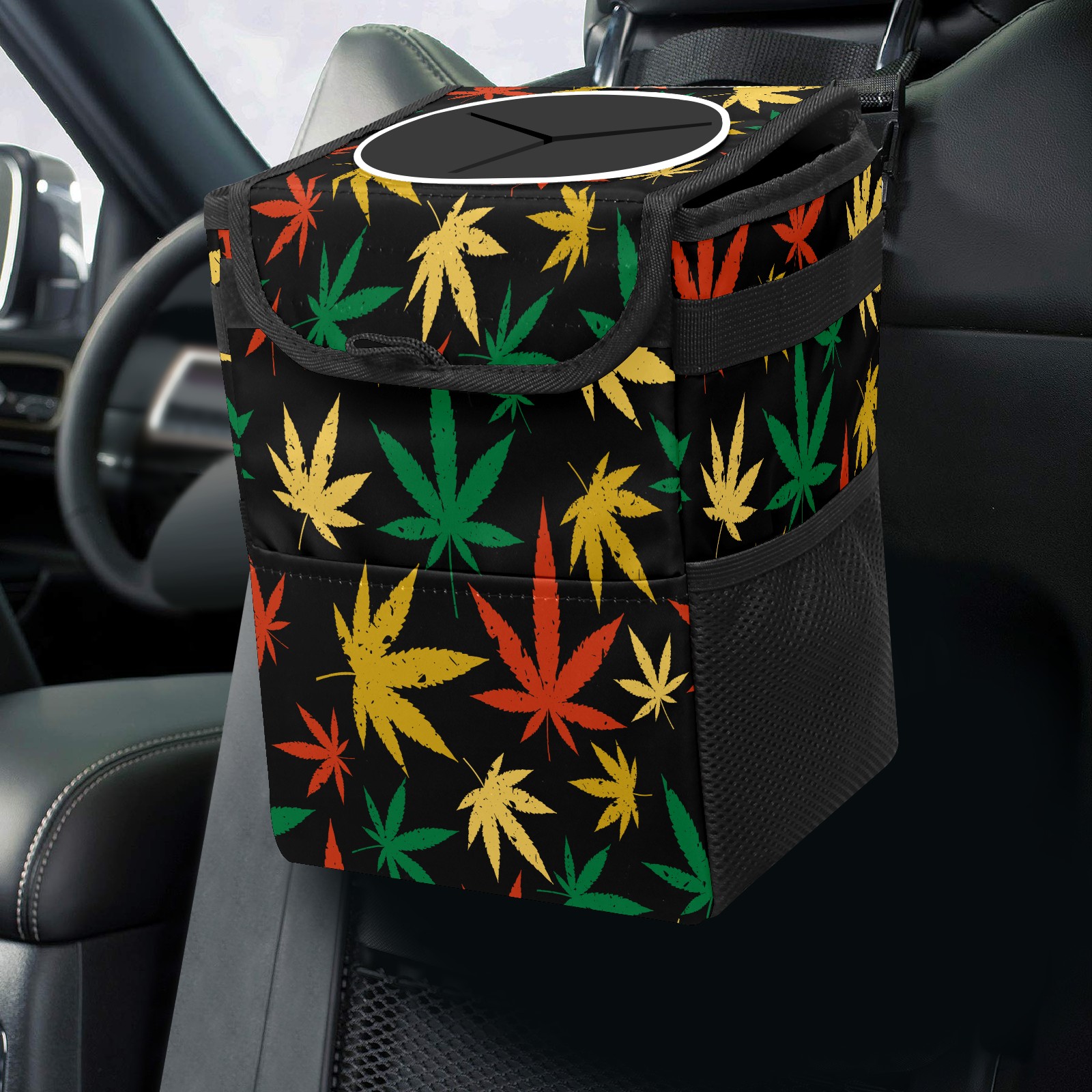 Car Garbage Can — Multi-functional, Lightweight Portable, Reusable Vehicle Trash Can, Waterproof with Sufficient Storage Capacity Red Green Yellow Maple Leaf