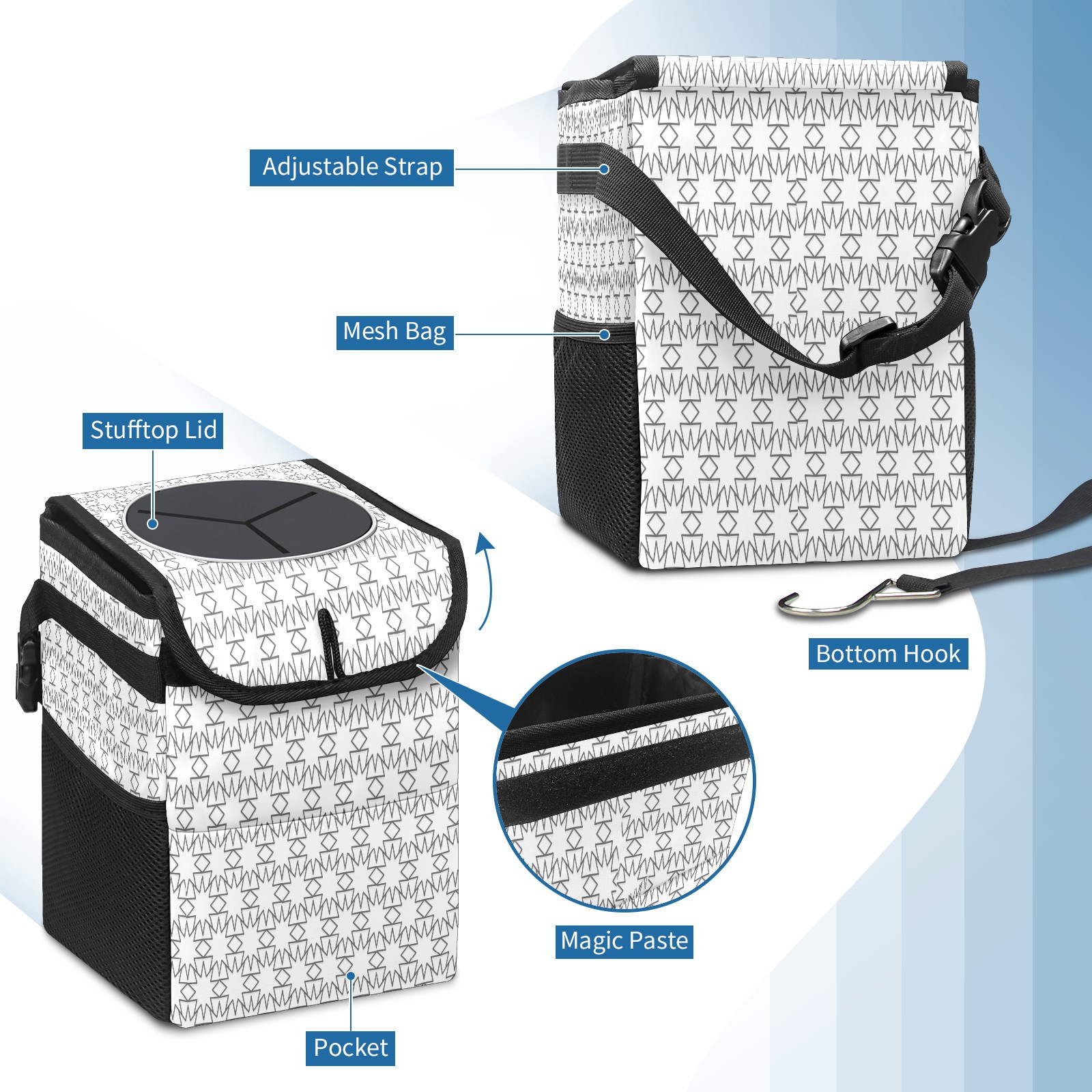 • <p>Keep your car neat with this practical car trash can—built for durability, versatility, and on-the-go convenience! Crafted from quality twill fabric with a waterproof lining, it prevents leaks, keeping seats/floors clean. Clean easily: empty directly or secure a disposable bag with side clips. Adjustable pull cord fits floor, seat, or headrest. 9.5x6.3x6.7 inches, ample space for daily trash, folds flat for storage. More than a trash can, it doubles as a storage bag for cups, toys, docs, and small gadgets—must-have car interior accessory. Installs in seconds on seats, console, or gear shift; adjustable straps keep it stable, no slipping on bumpy roads. Perfect gift for new car owners!</p>