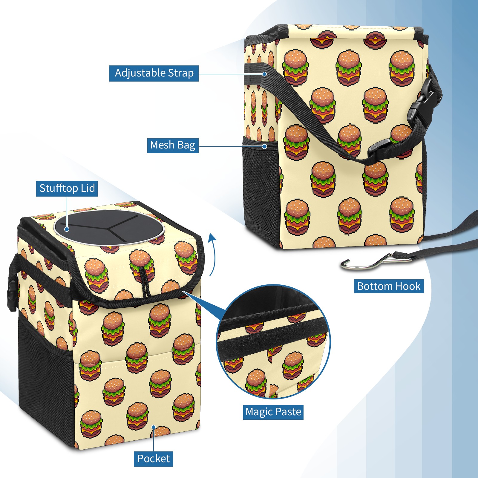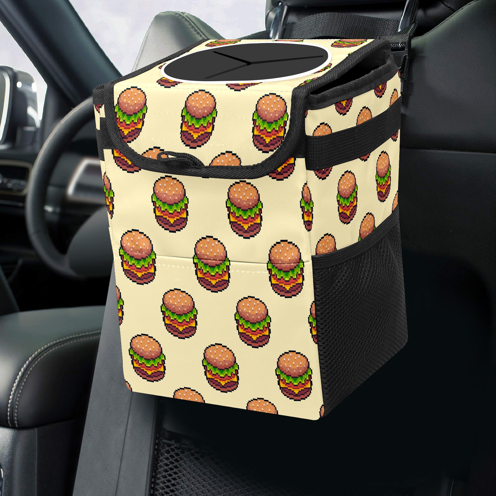 Car Garbage Can — Multi-functional, Lightweight Portable, Reusable Vehicle Trash Can, Waterproof with Sufficient Storage Capacity Painted Hamburger