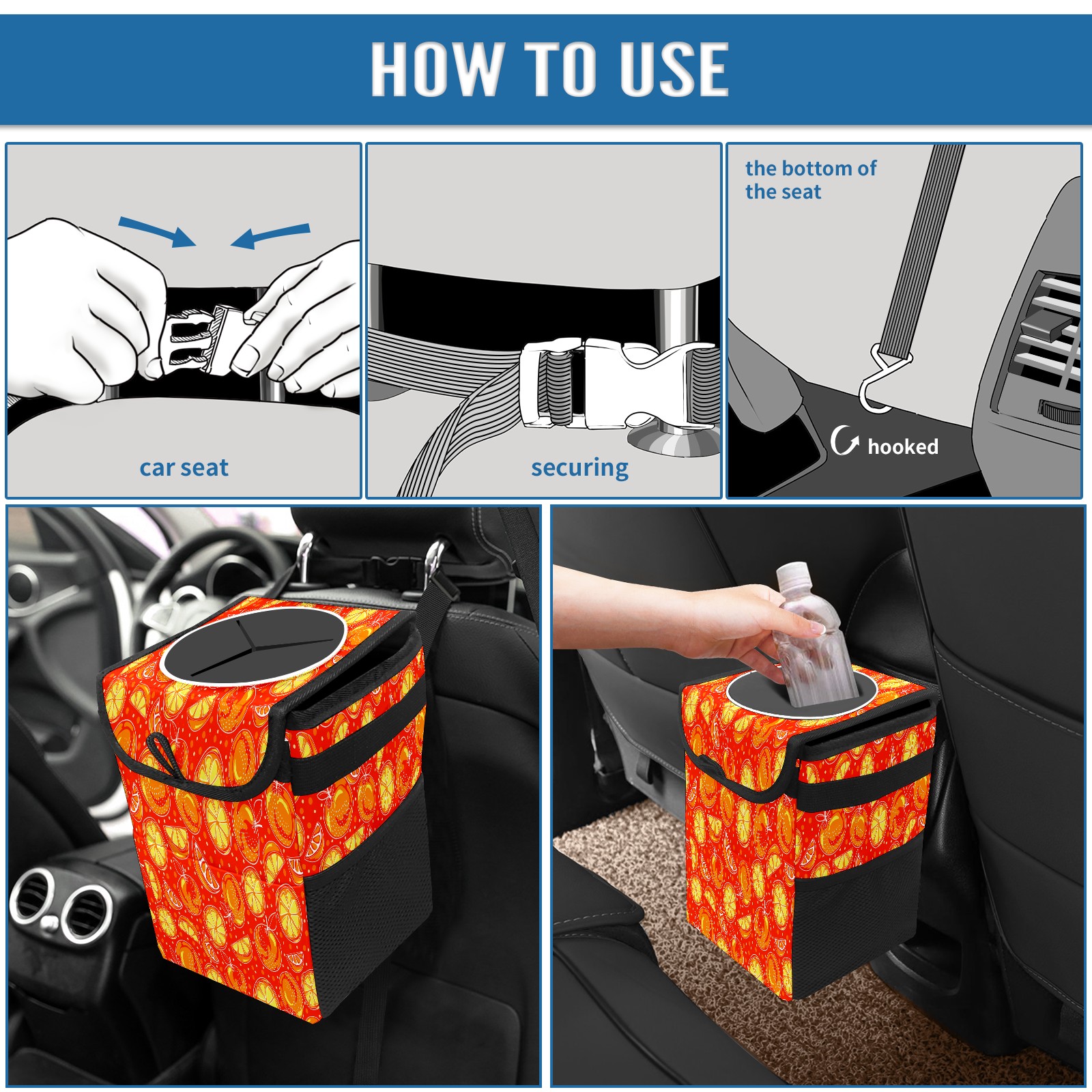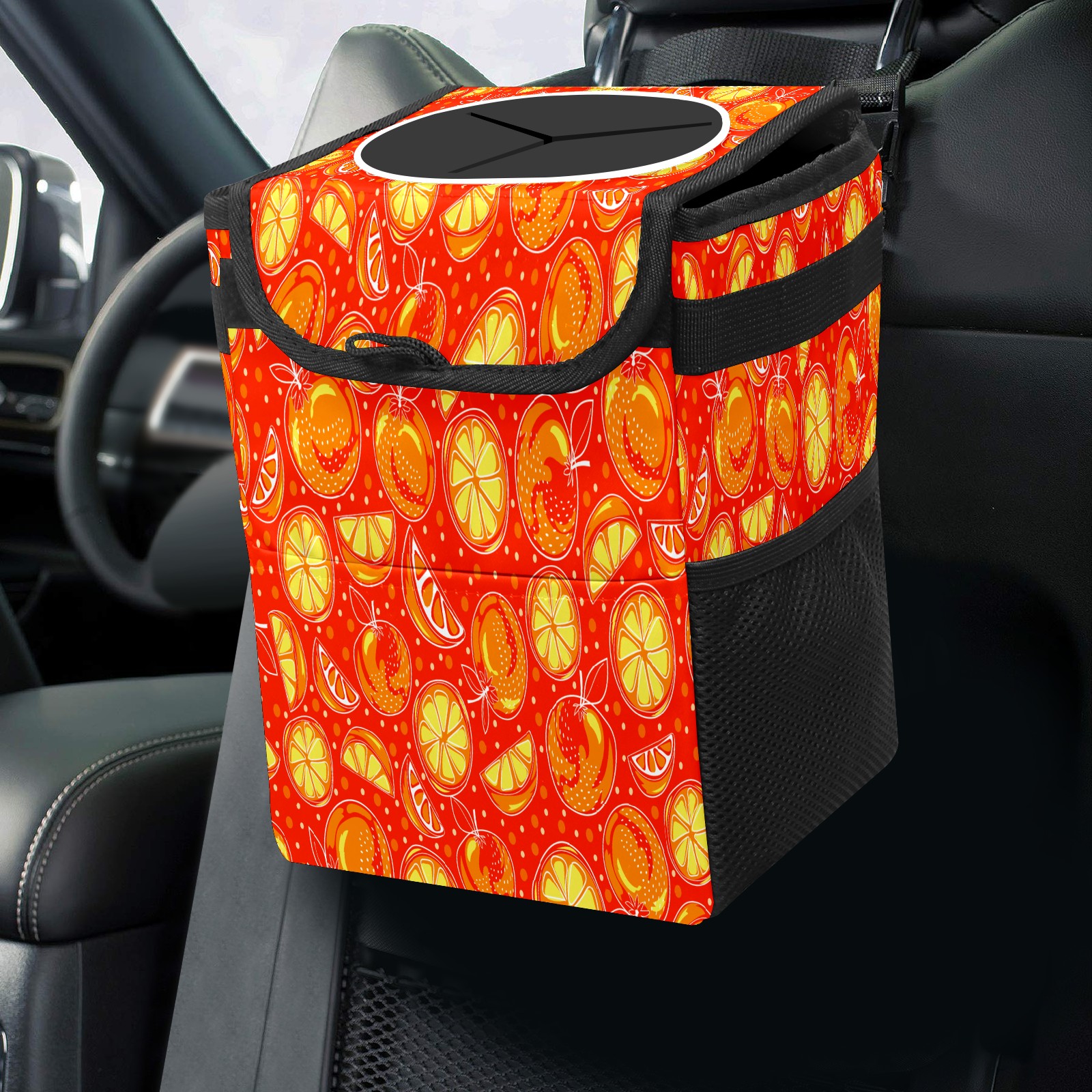 Car Garbage Can — Multi-functional, Lightweight Portable, Reusable Vehicle Trash Can, Waterproof with Sufficient Storage Capacity Hand Drawn Yellow Clementine